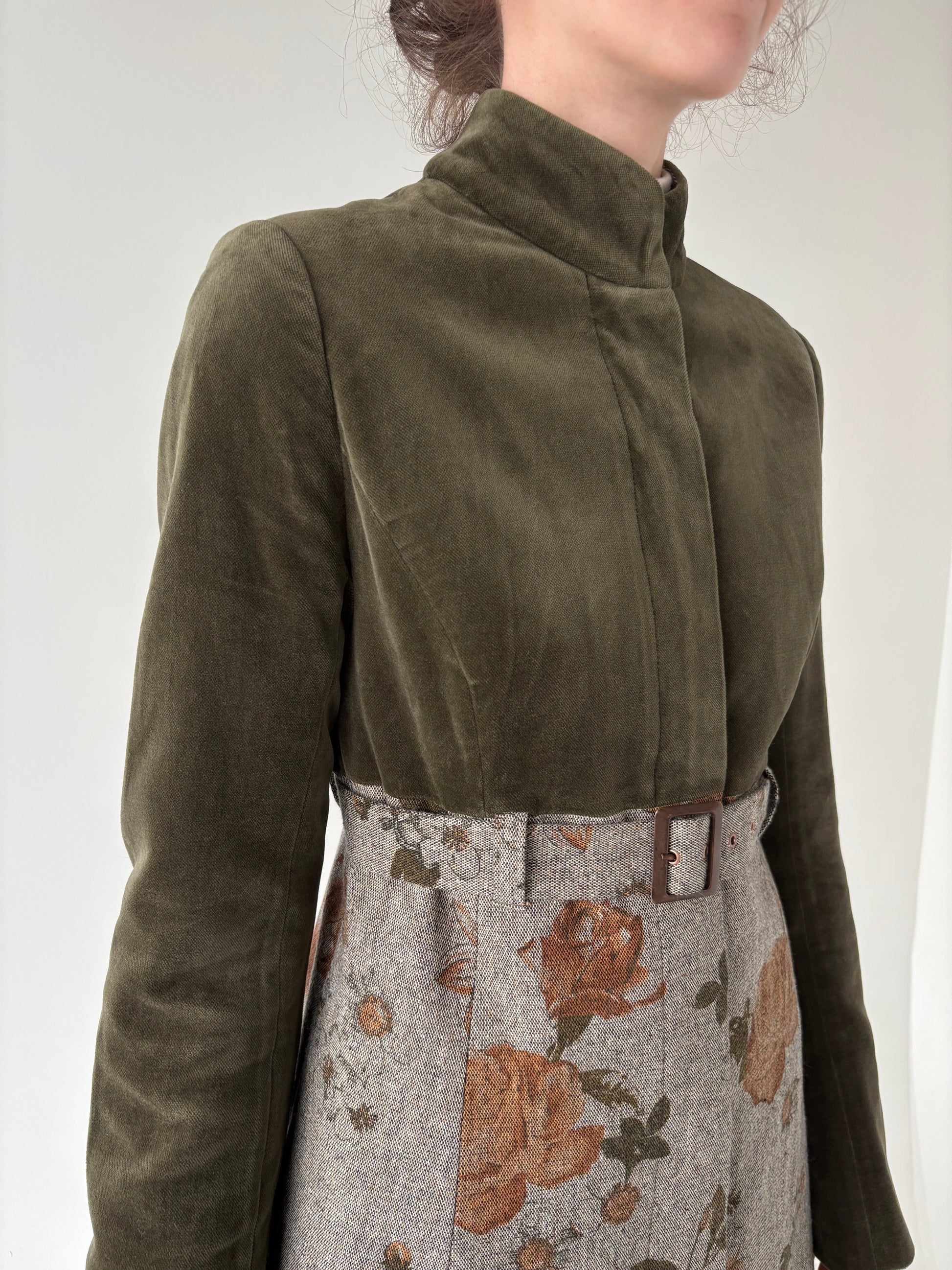 Palton în croi chic cu talie ultra înaltă marcată reglabilă din lana extrafina