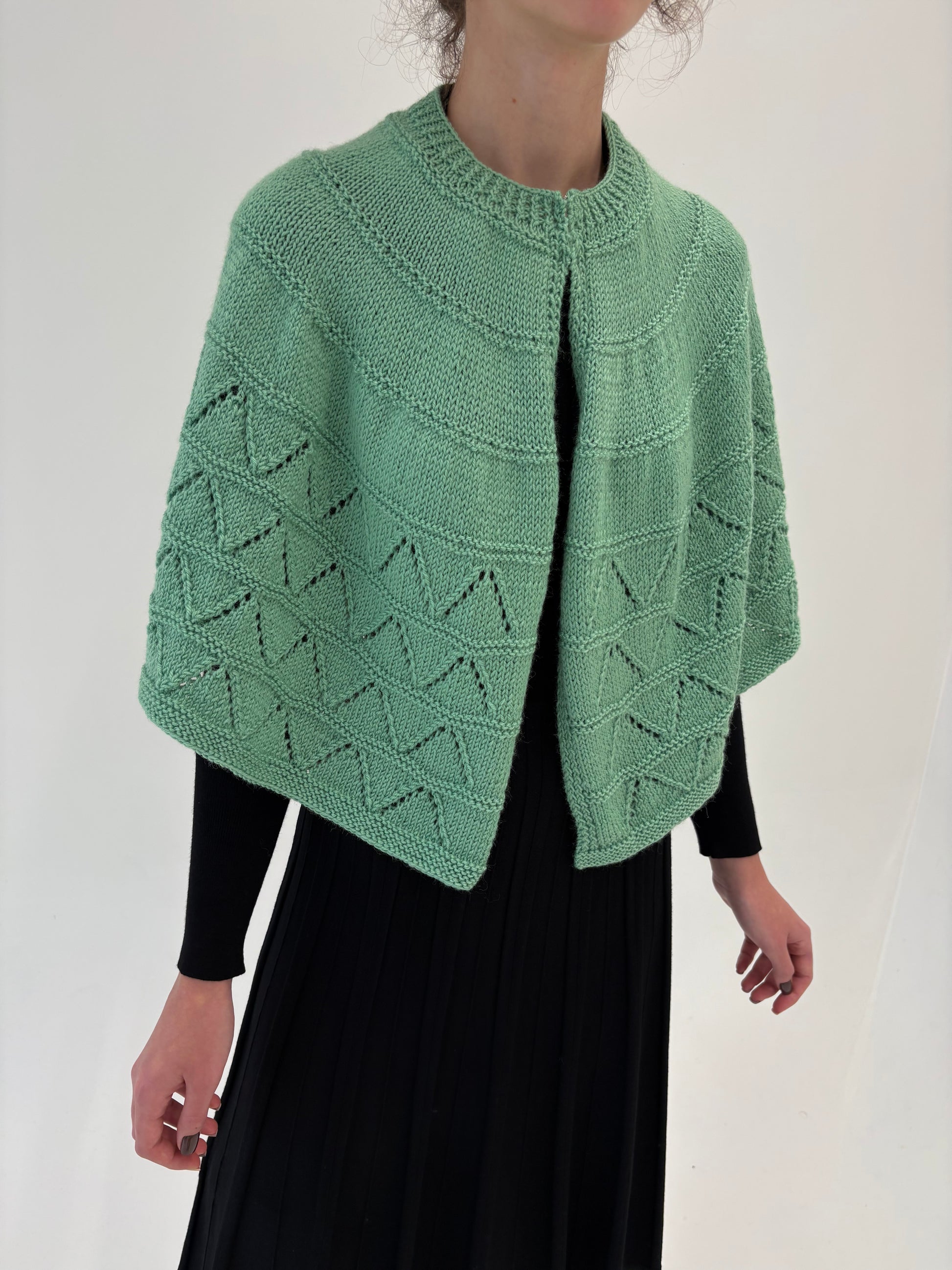 Capa vintage verde mentă lucrată manual din lana plină extrafina