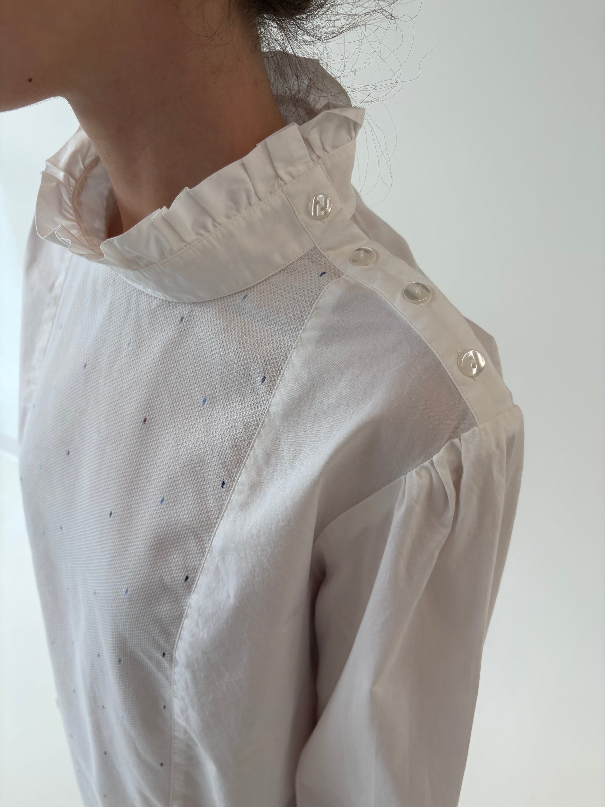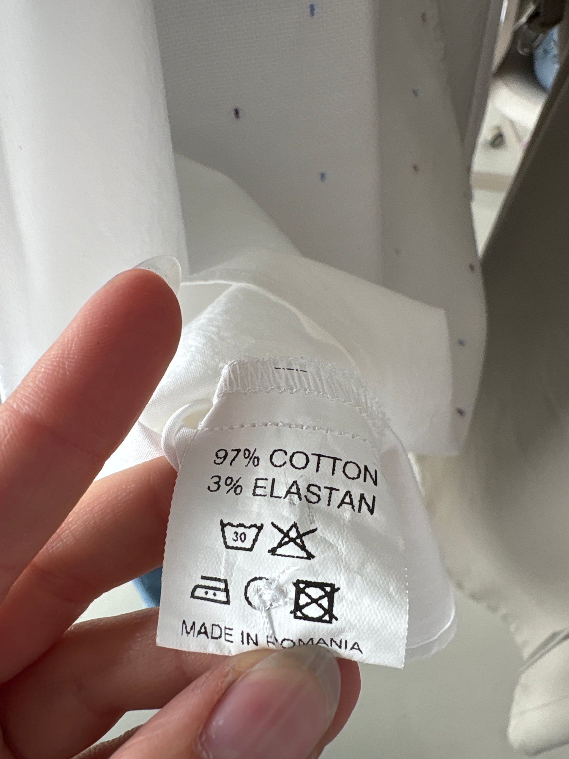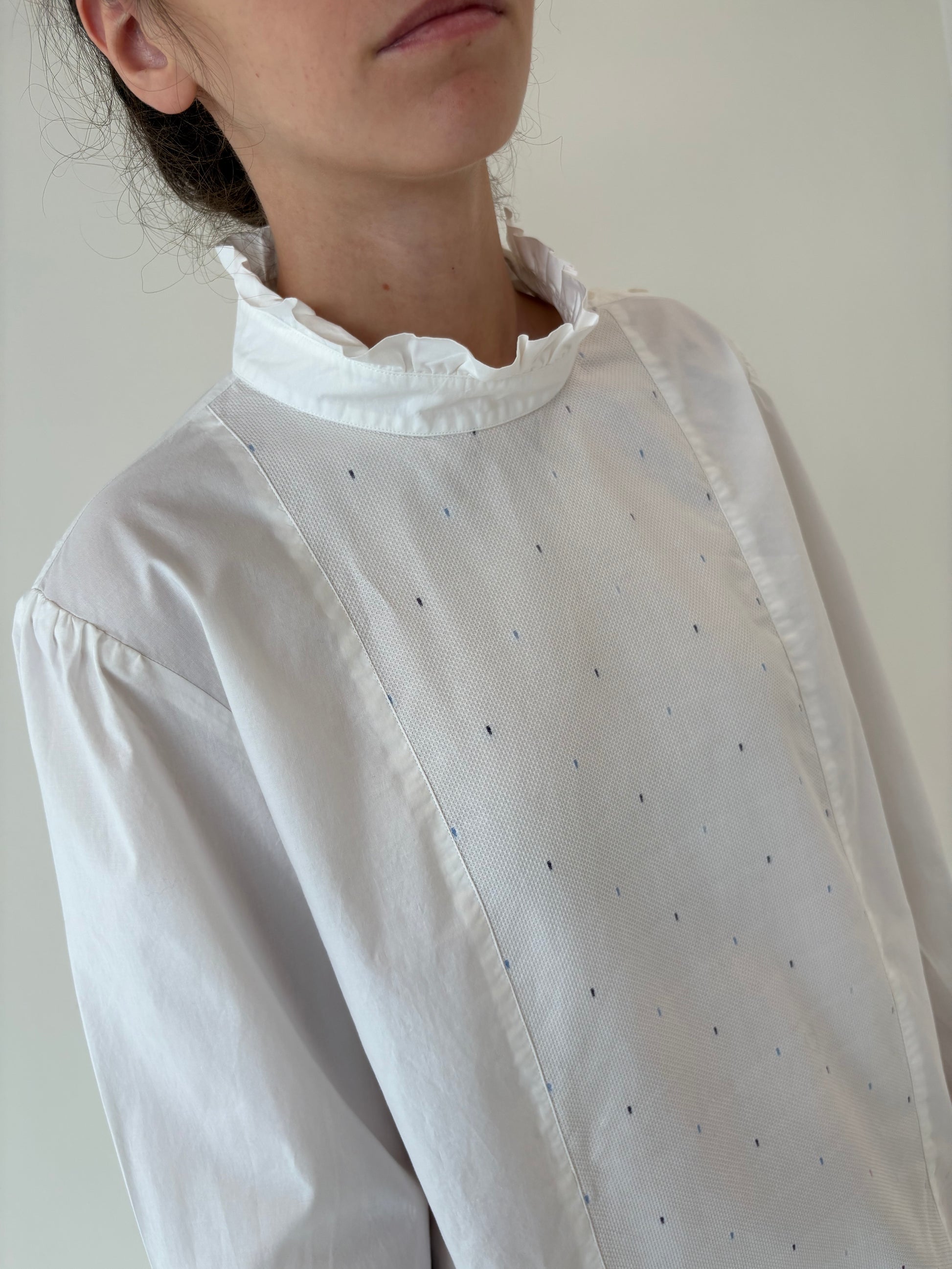 2 tipuri de poplin, unul ușor elastic pt confort și celălalt texturat, cu broderie cu buline