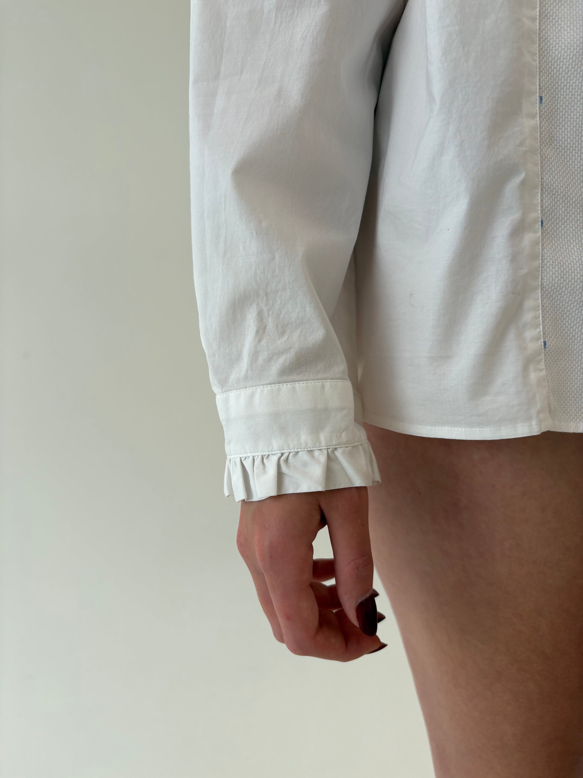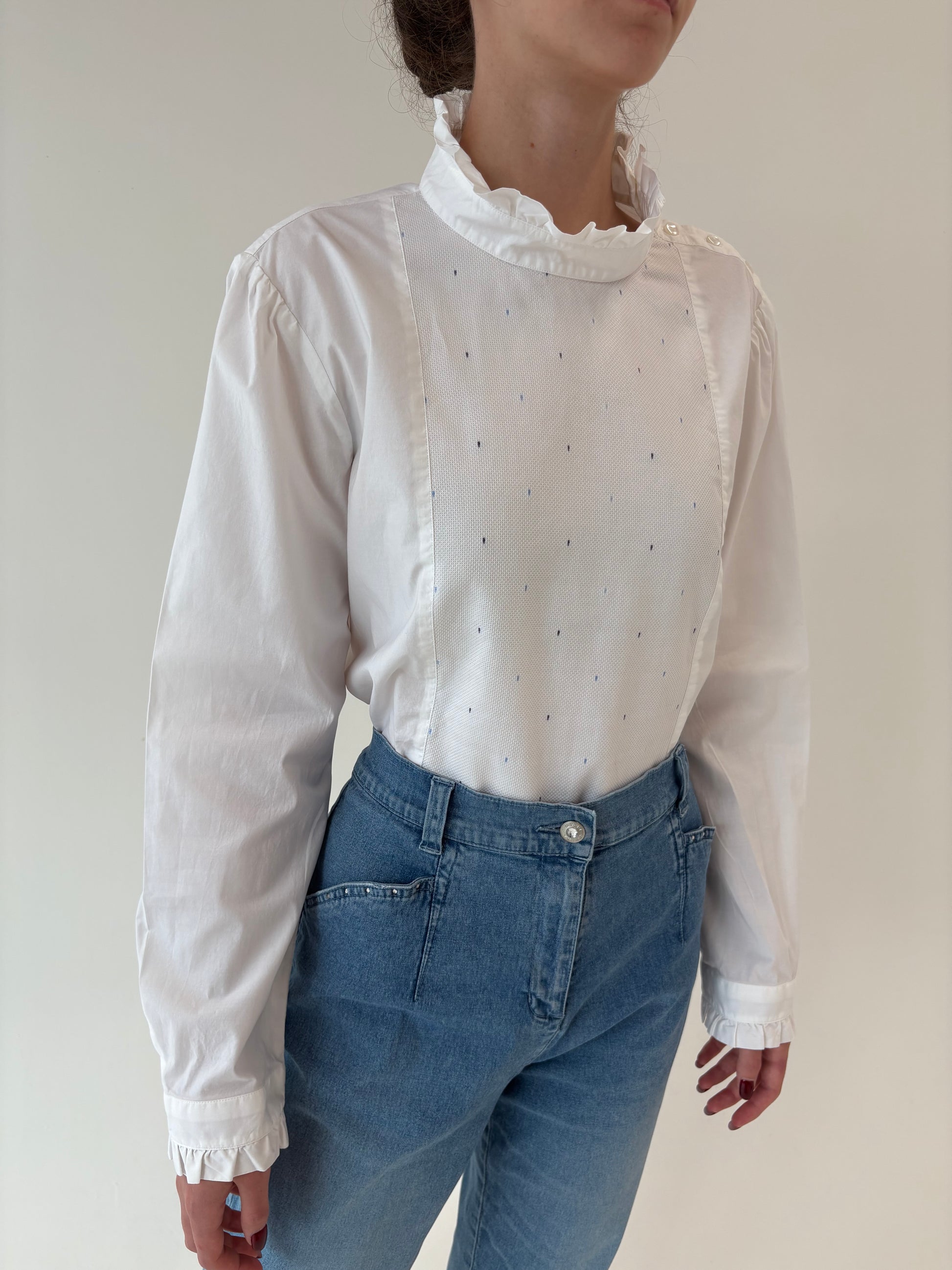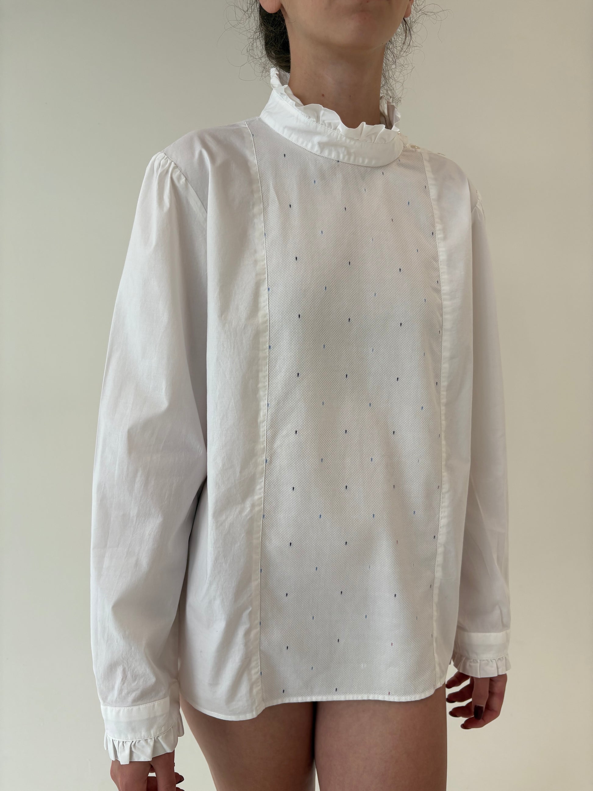 2 tipuri de poplin, unul ușor elastic pt confort și celălalt texturat, cu broderie cu buline