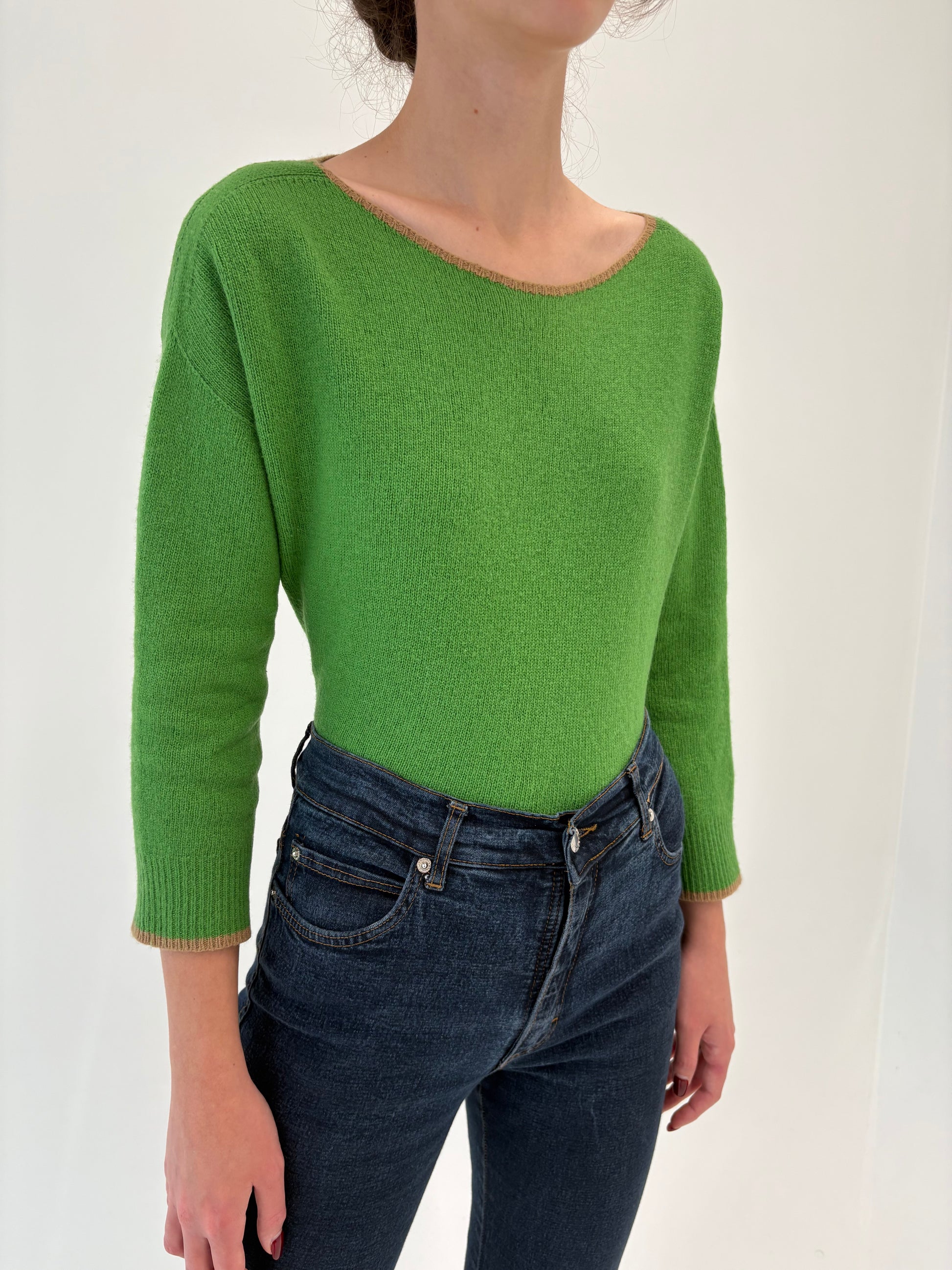 Pulover italian verde tare petite din lana merino extrafina de gramaj mare