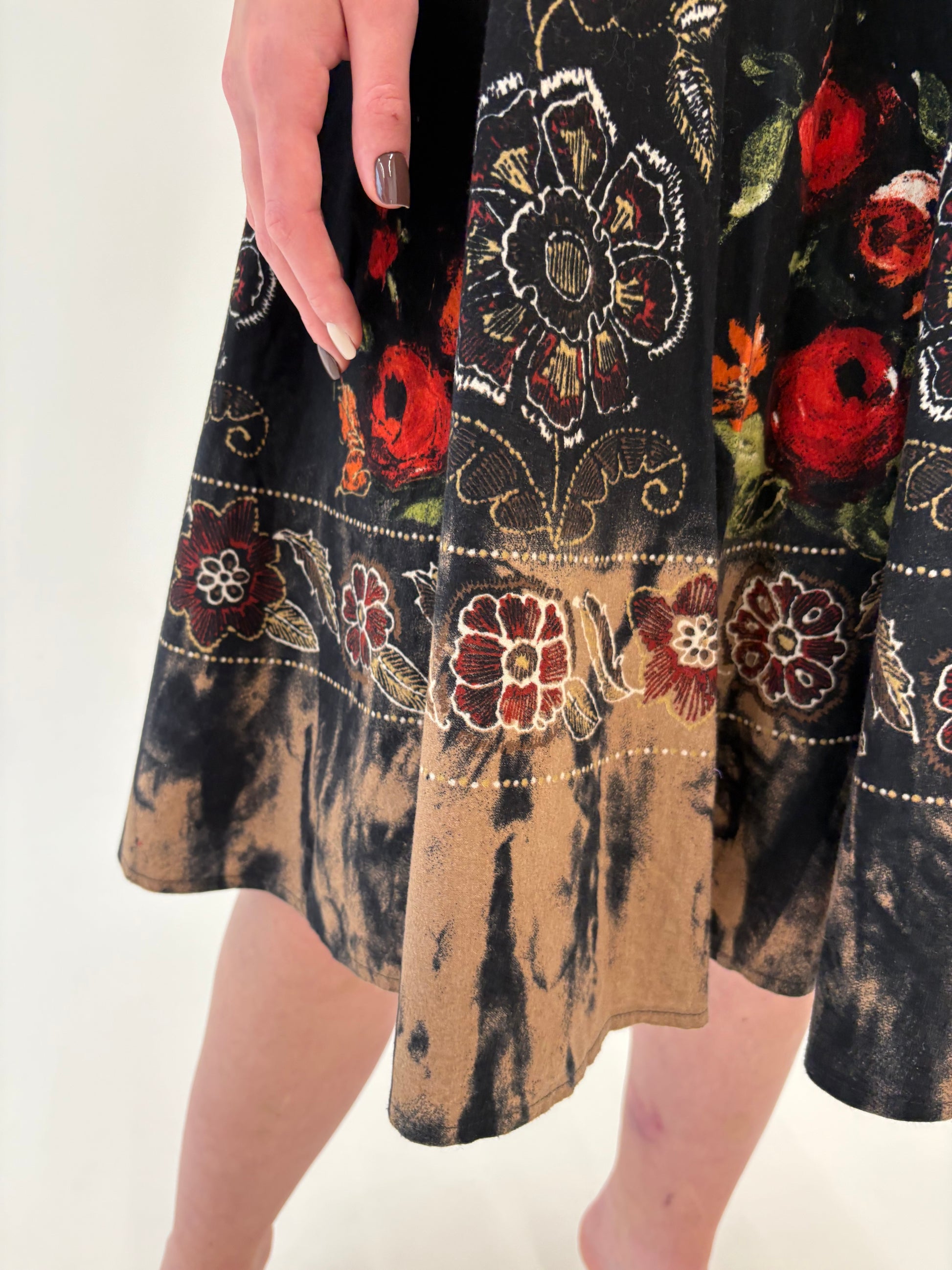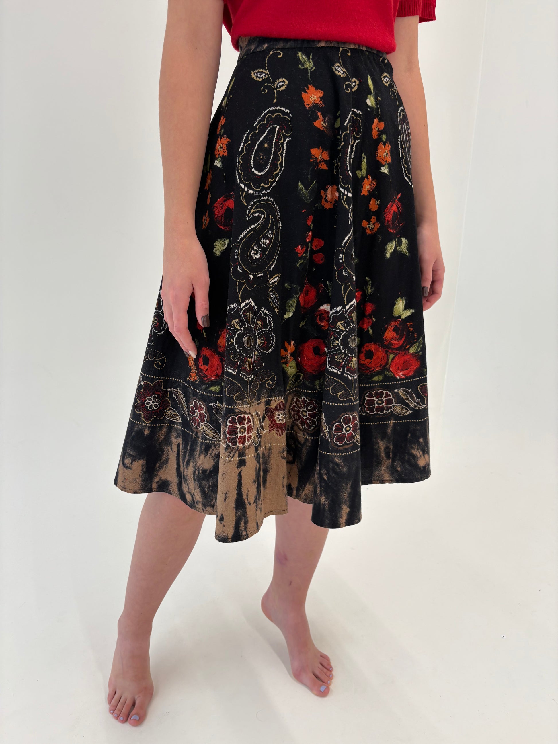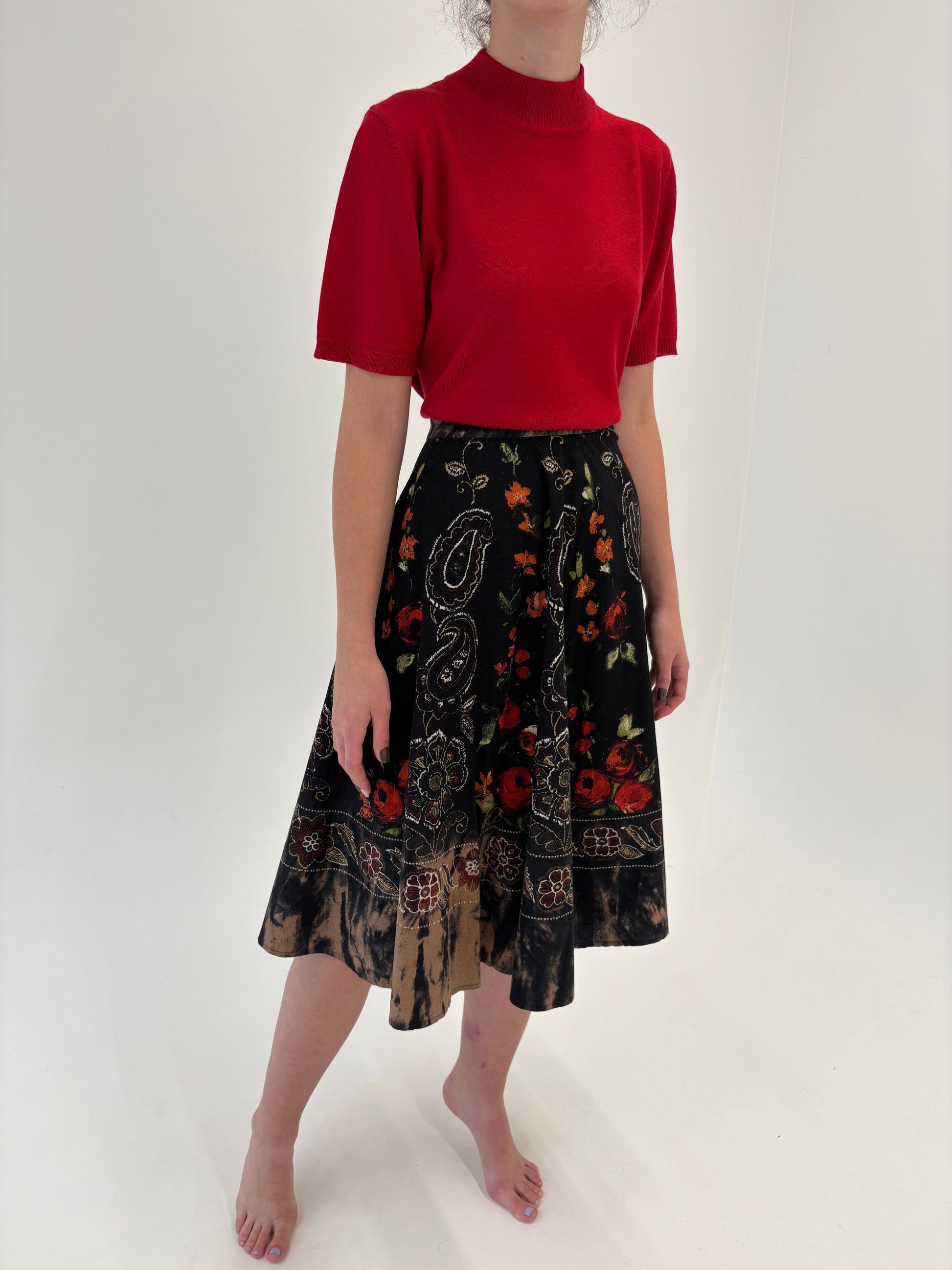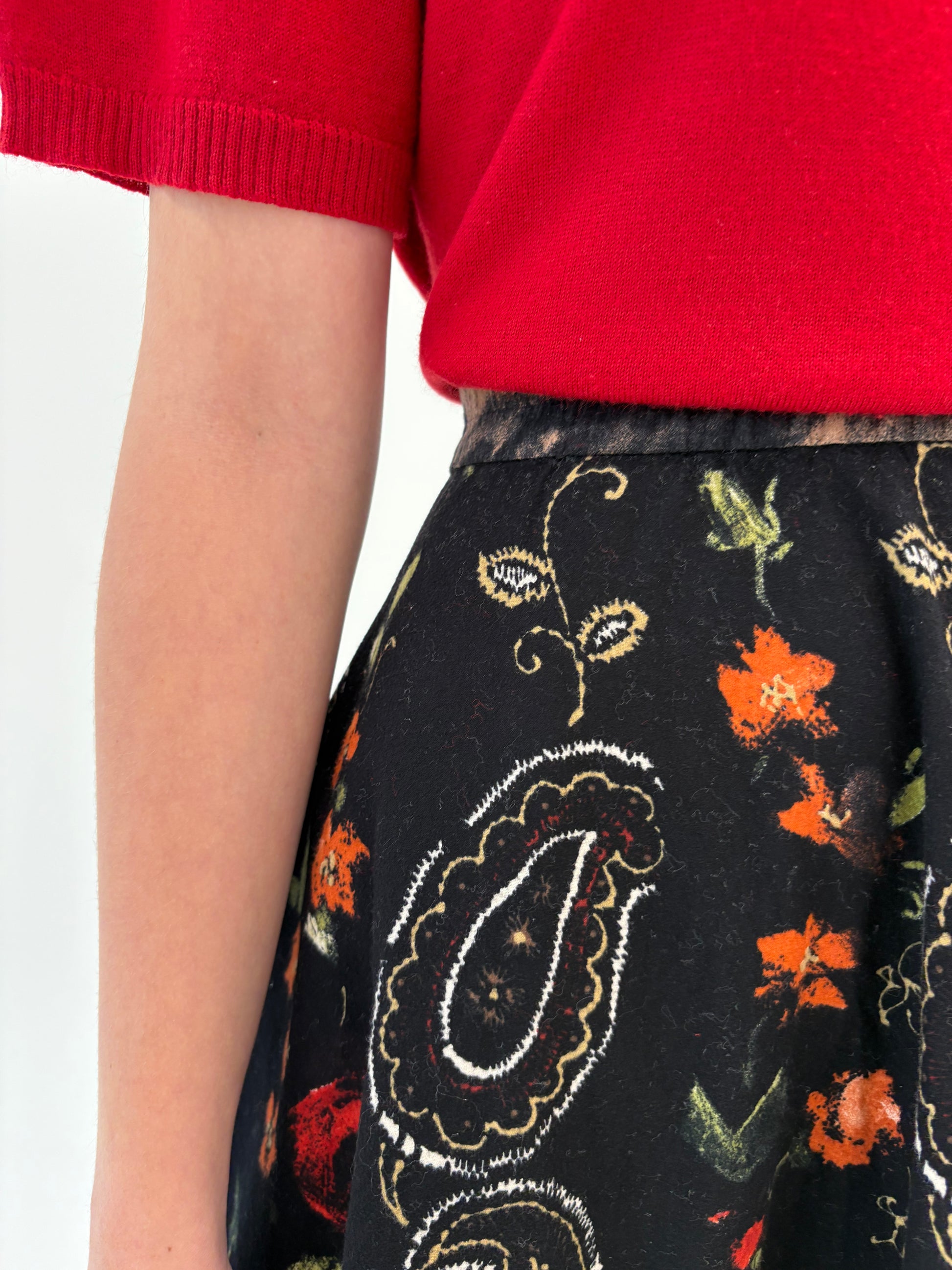 Fustă vintage cu print superb și talie ultra înaltă