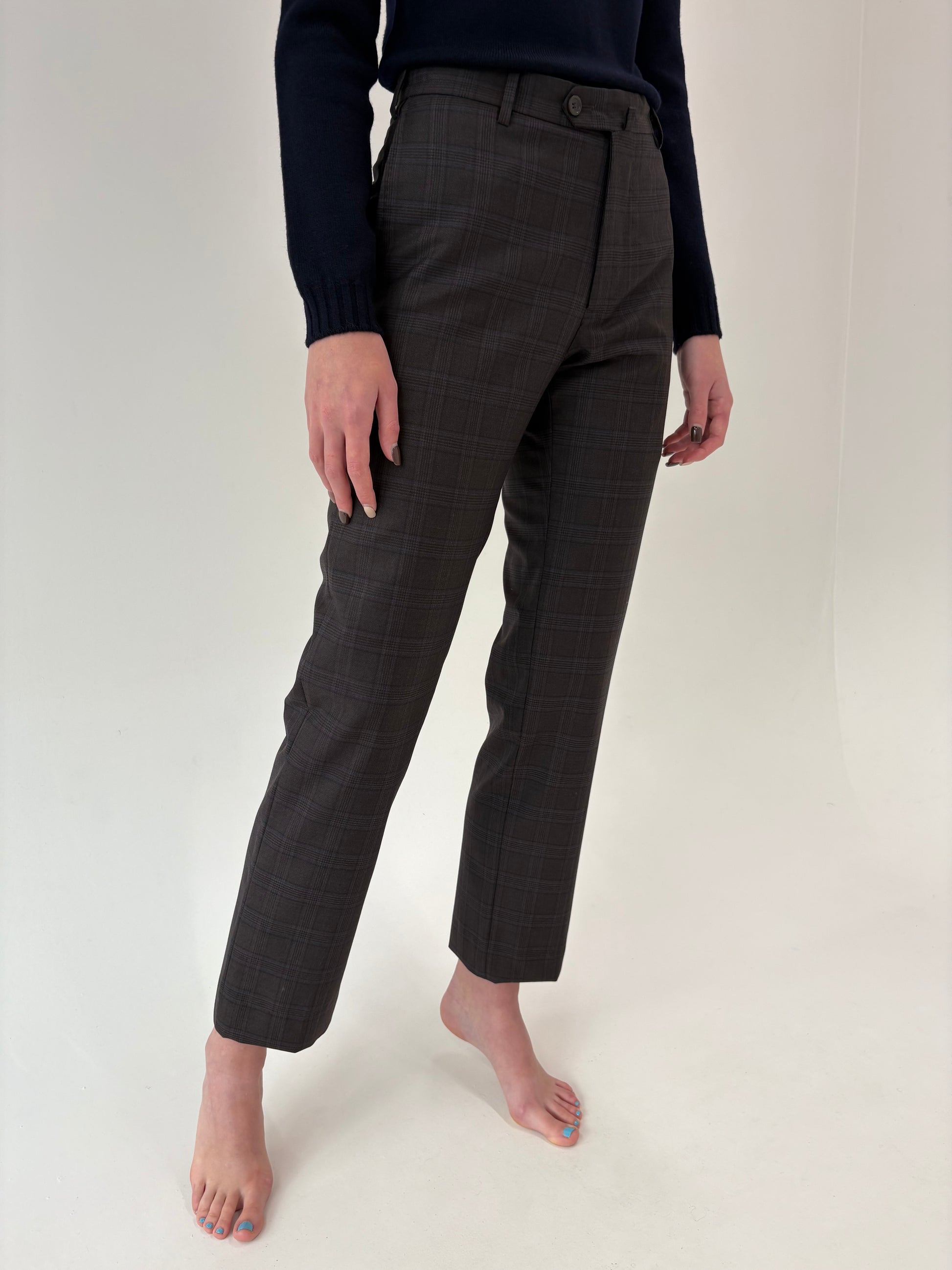 Pantaloni chocolate brown din lana extrafina în carouri