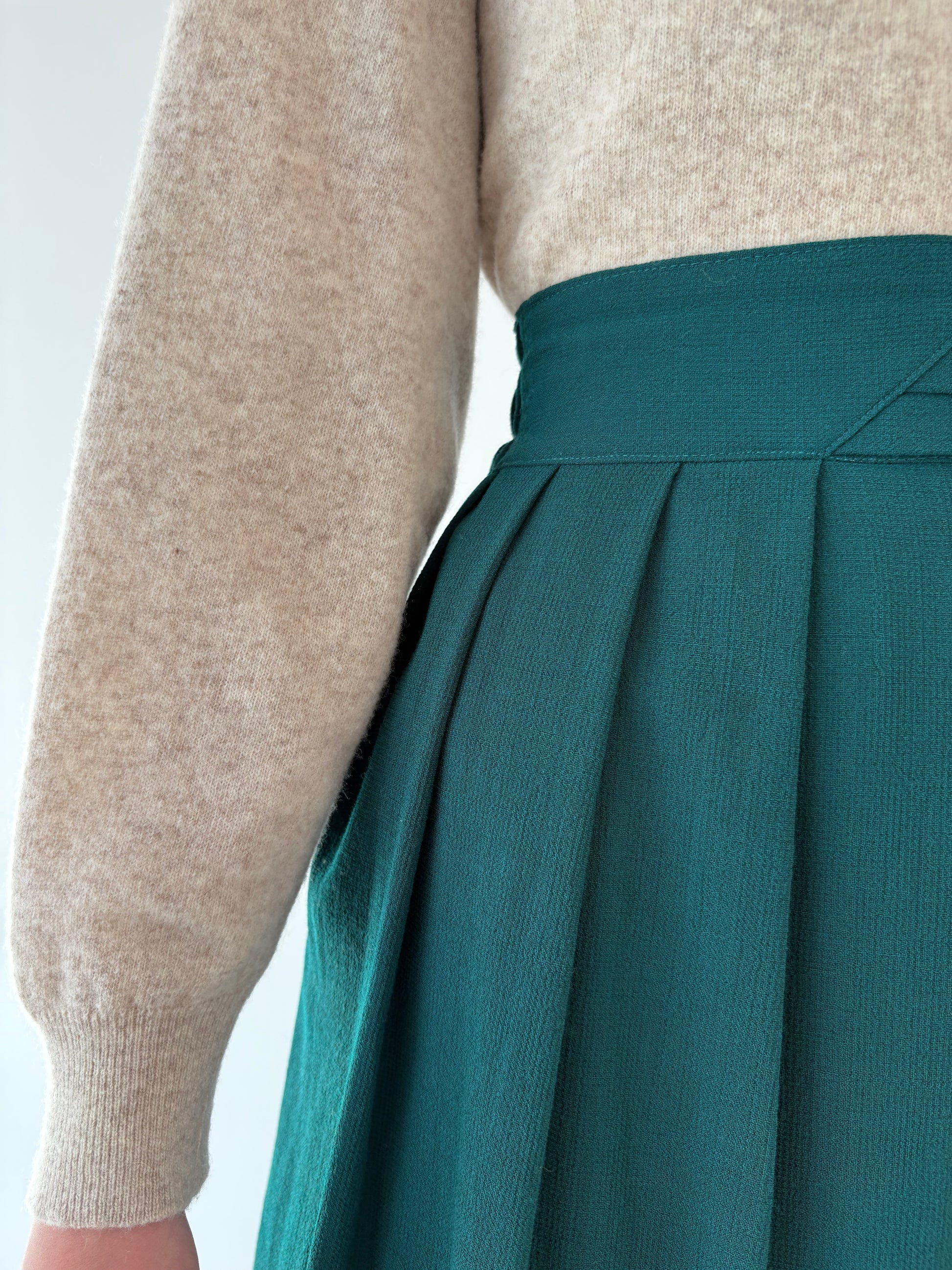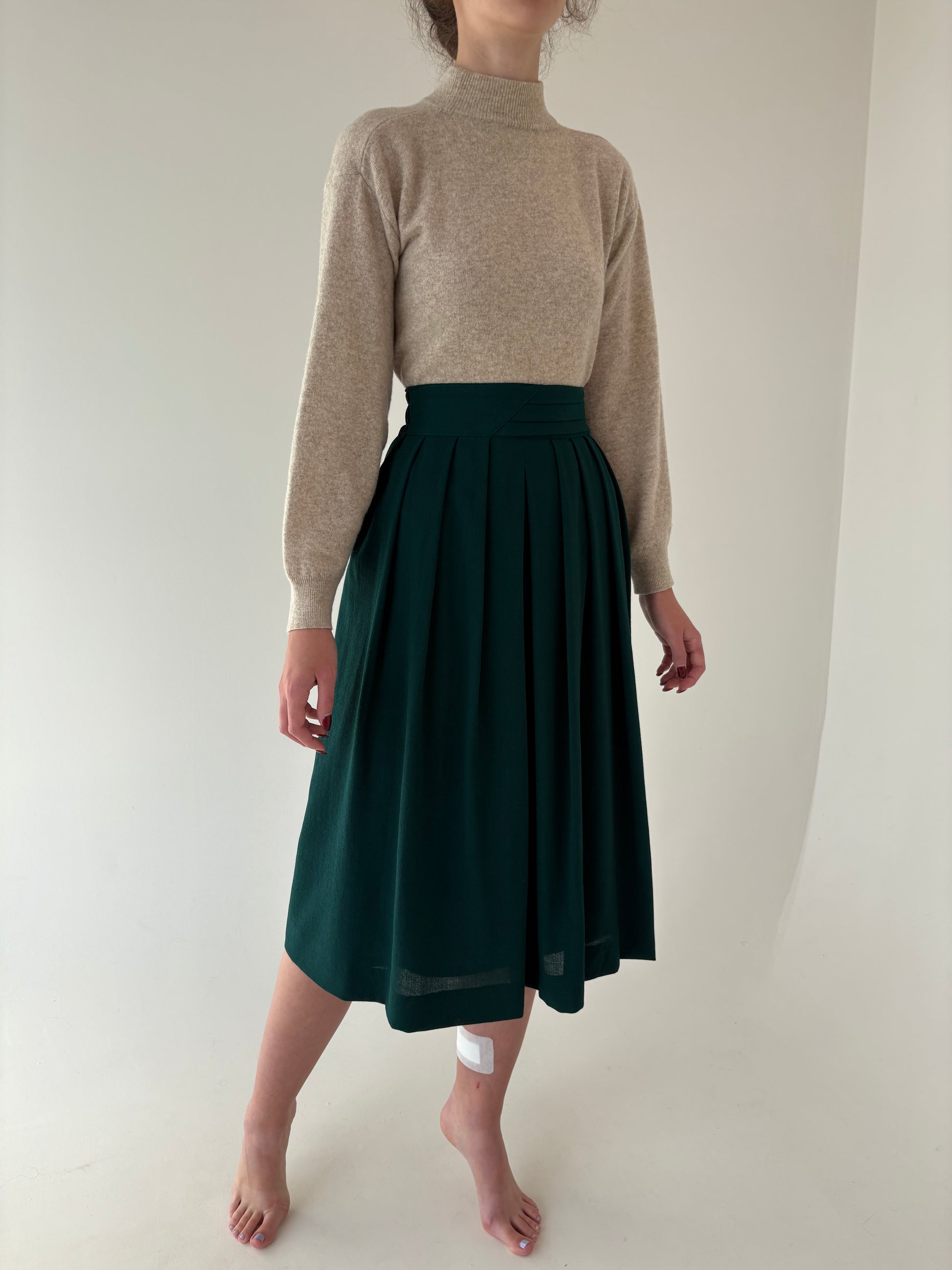 Fustă vintage verde superb din lana extrafina excepțională
