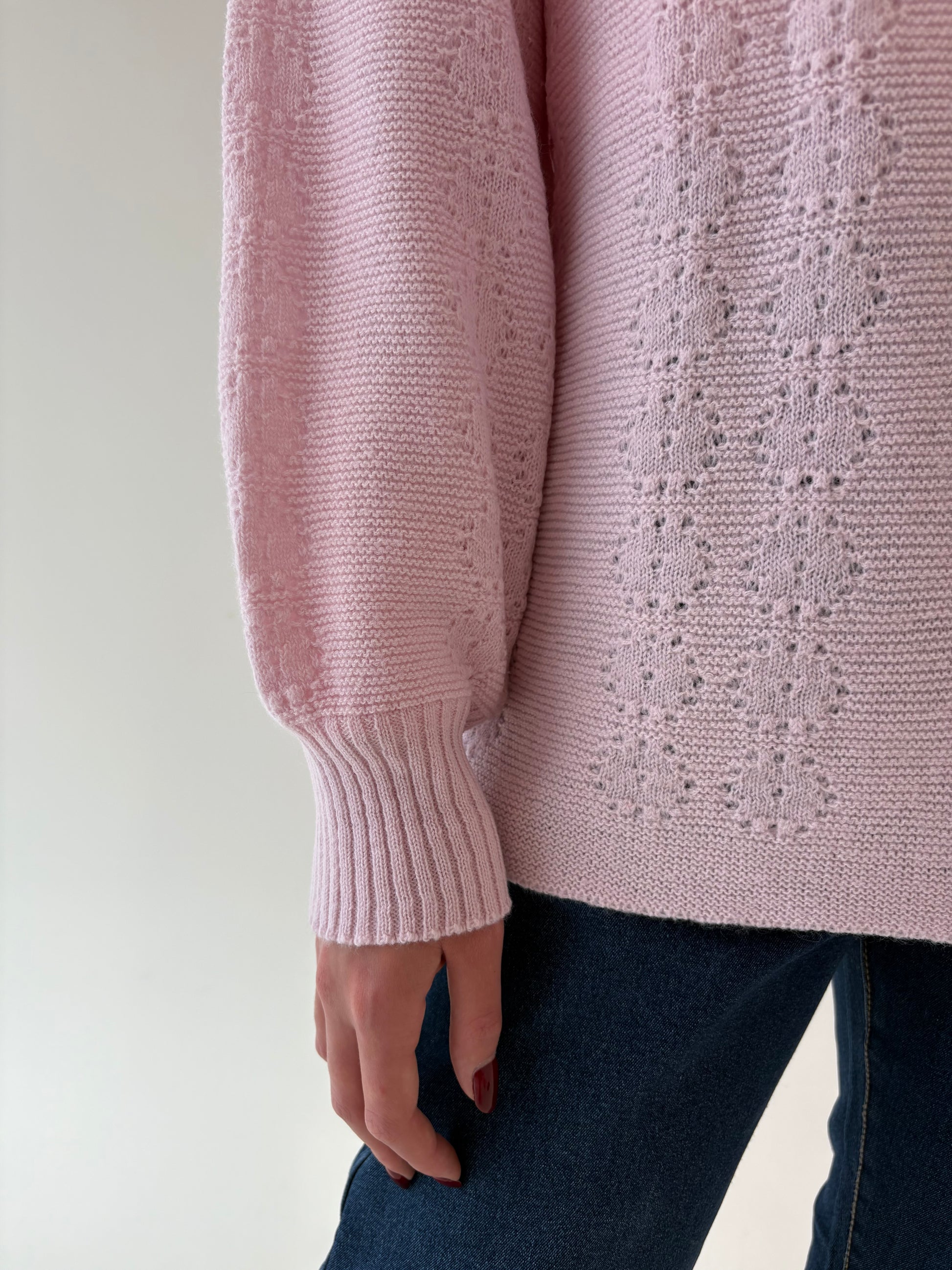 Cardigan vintage roz pudrat din mix de lana extrafina