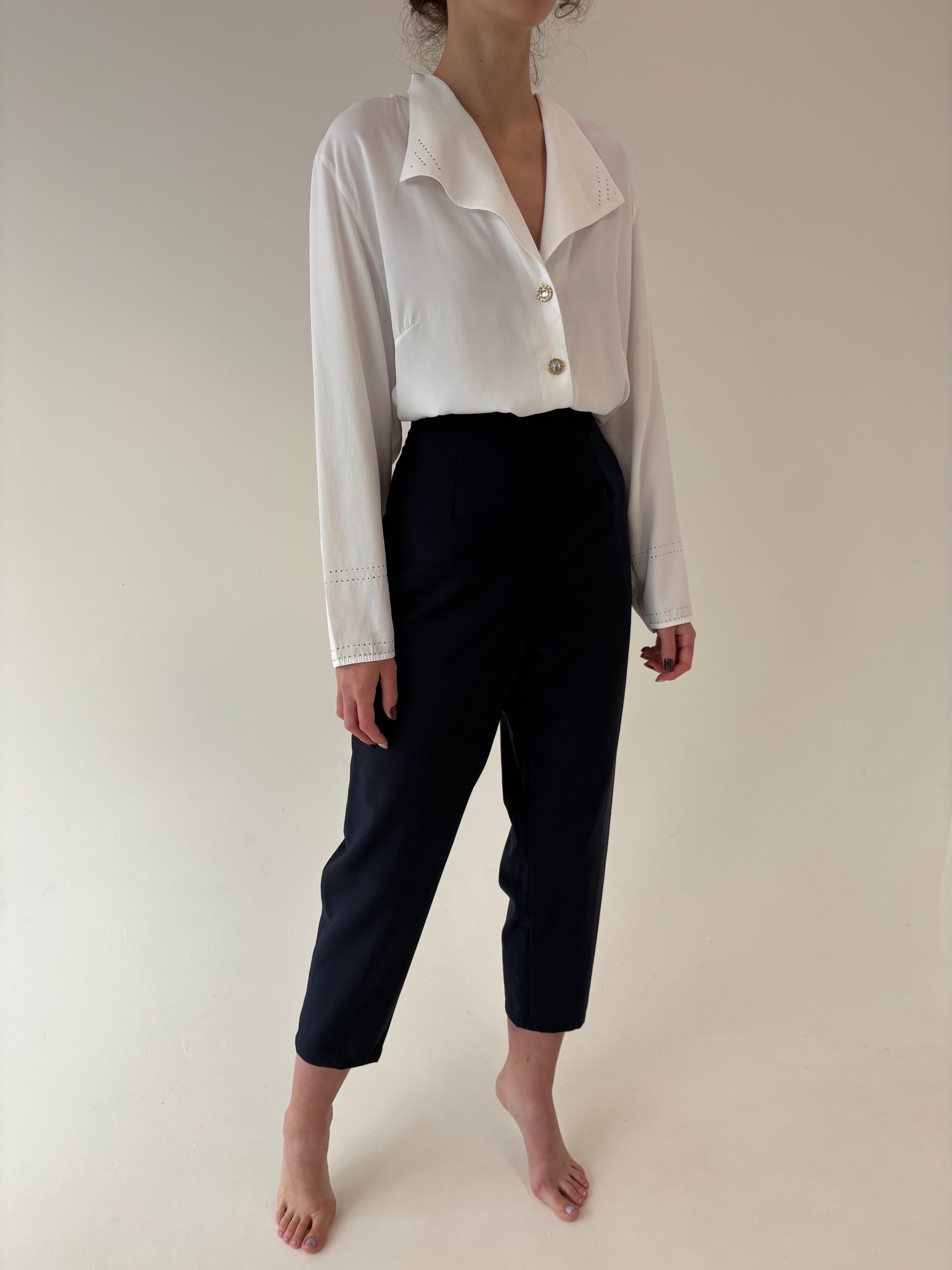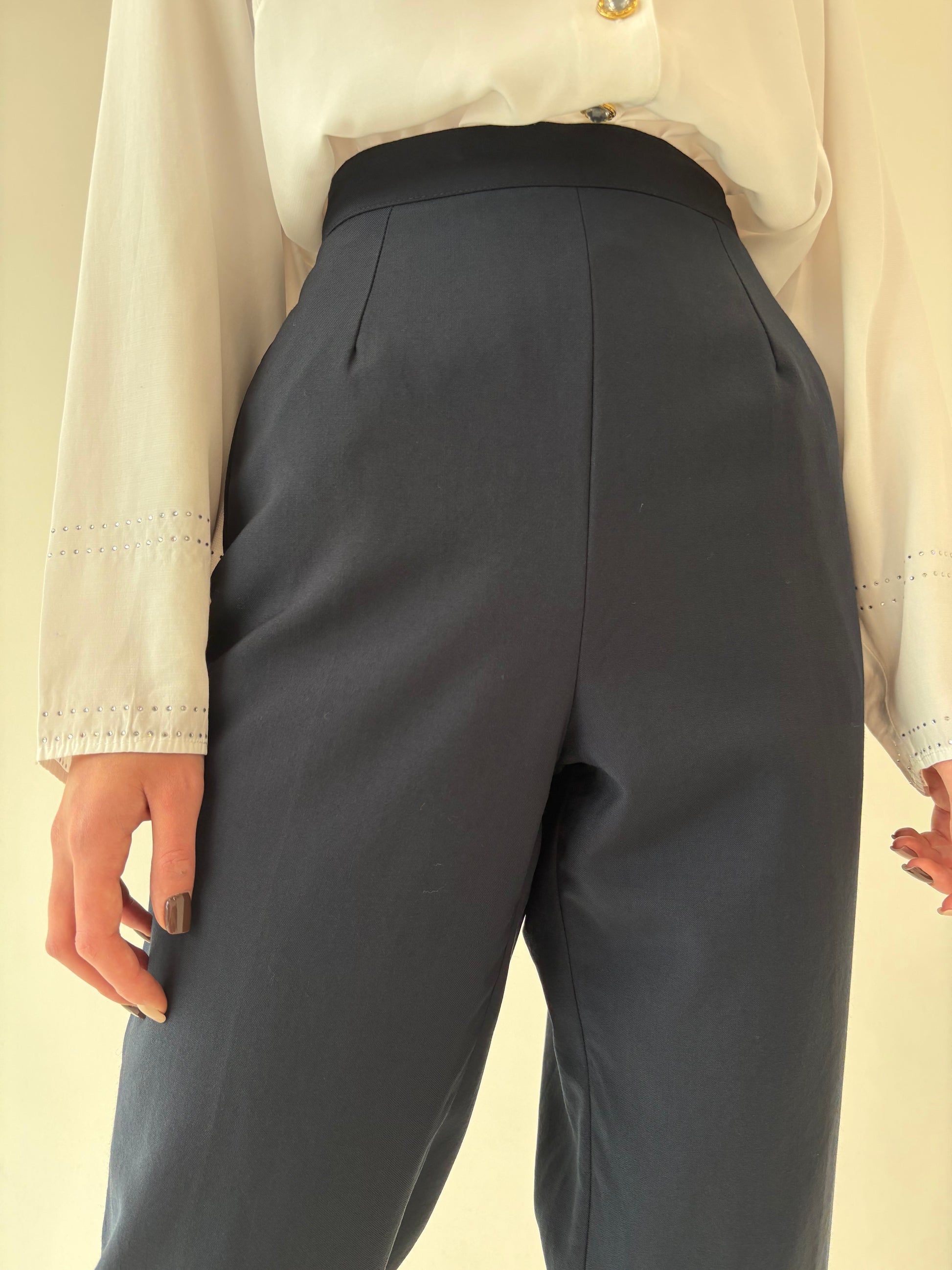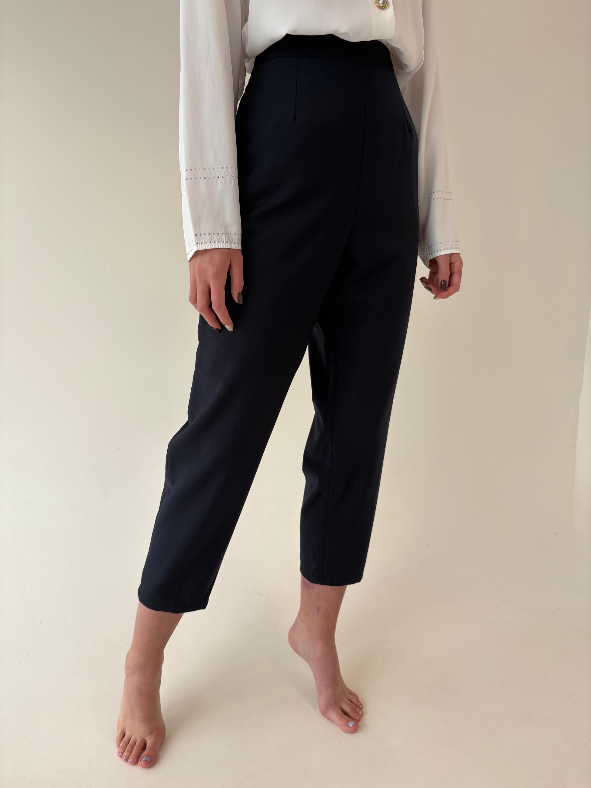 Pantaloni țigaretă din lana extrafina pura certificată cu altei ultra înaltă