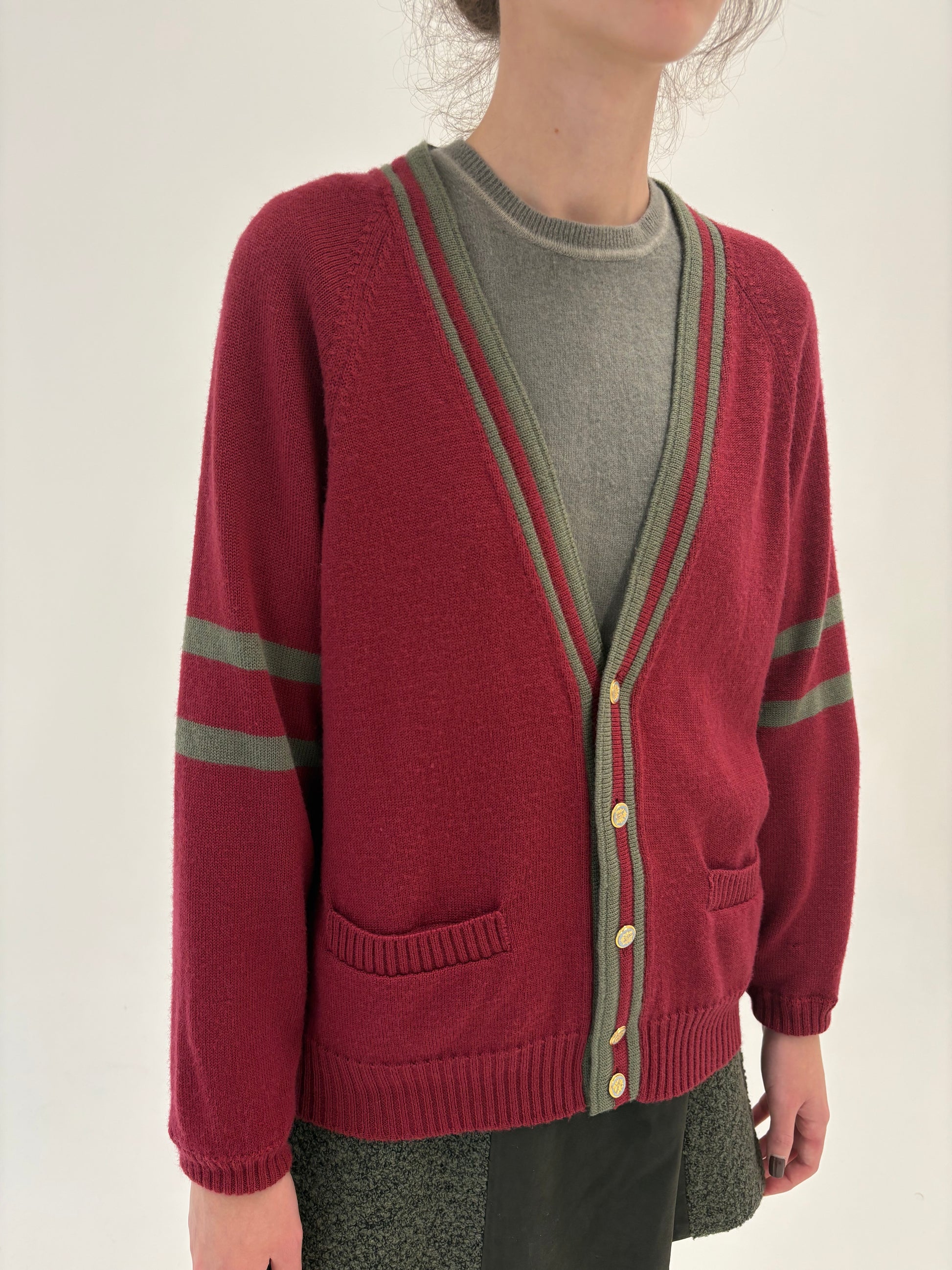 Cardigan vinatge Marsala red din lana excepțională de gramaj mare