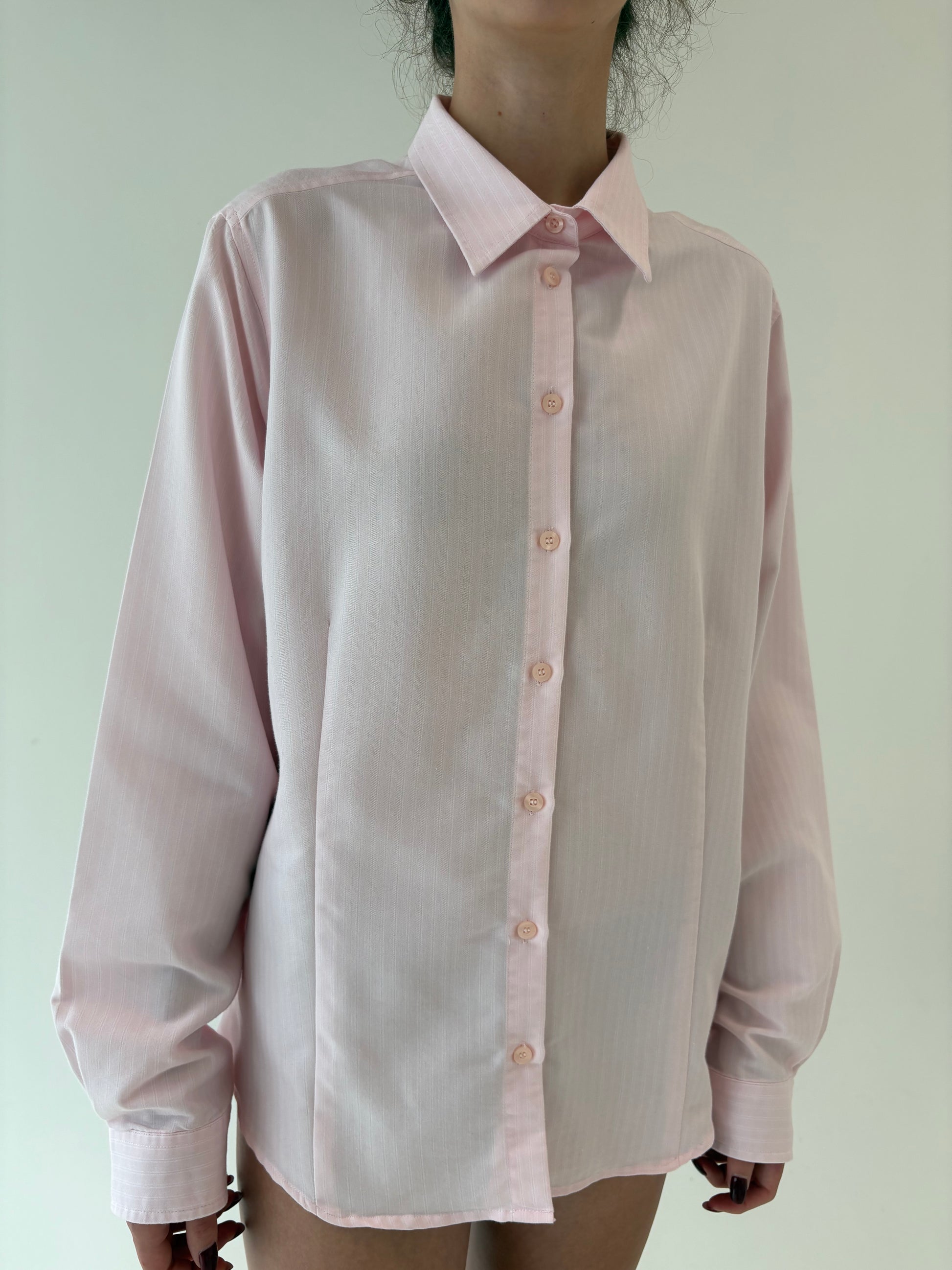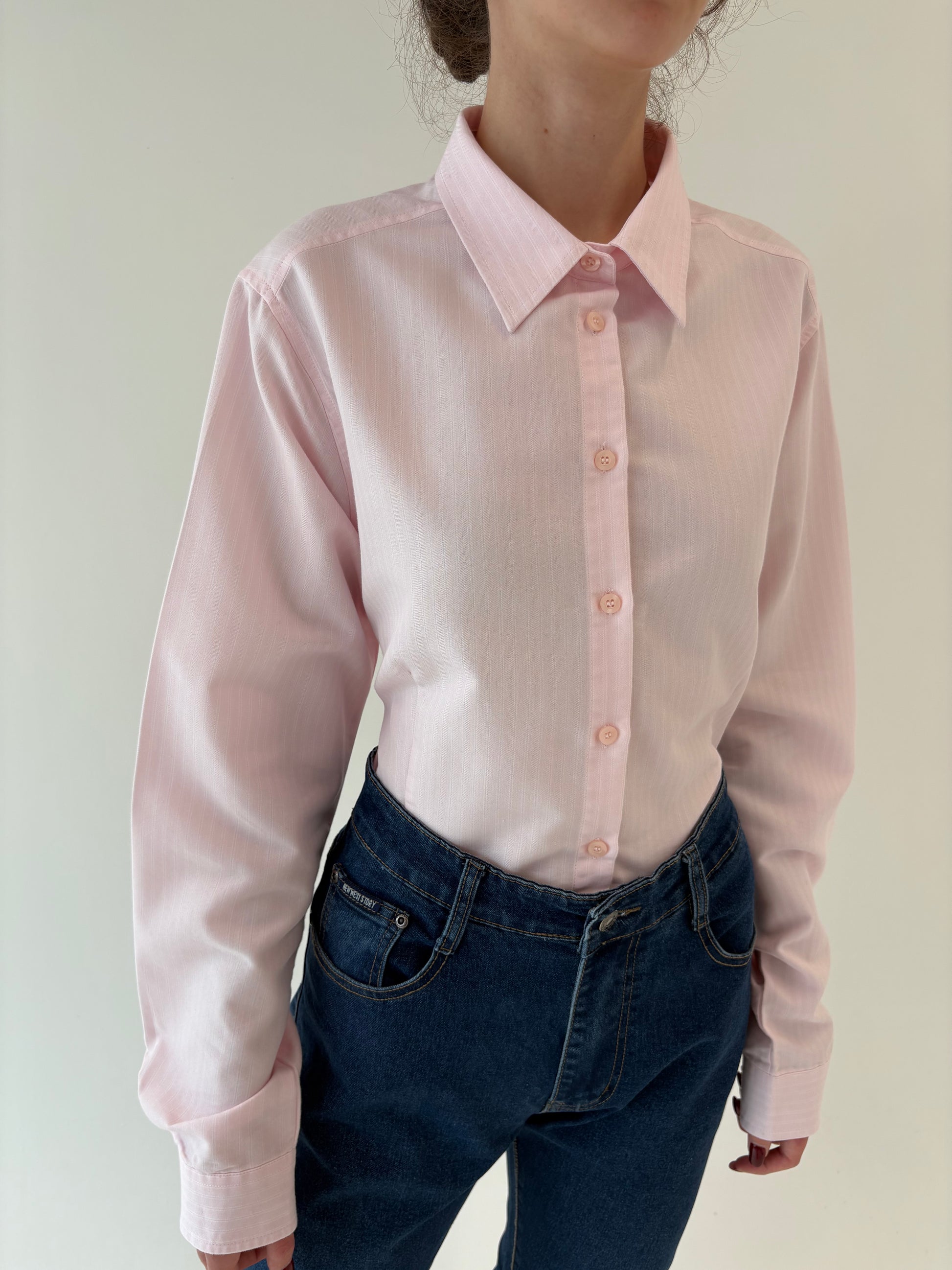 Cămașa roz pudrat din poplin gros texturat de bumbac