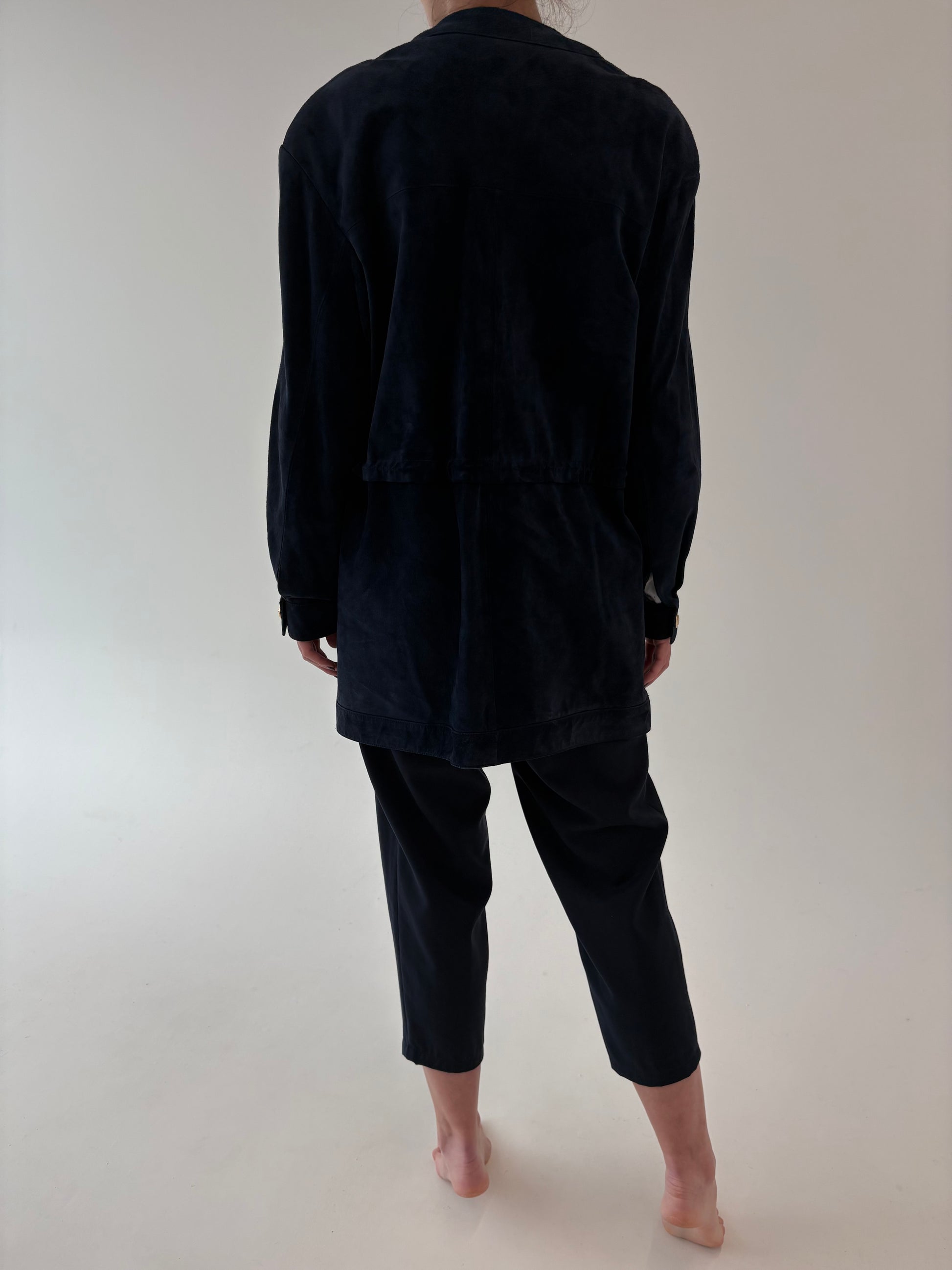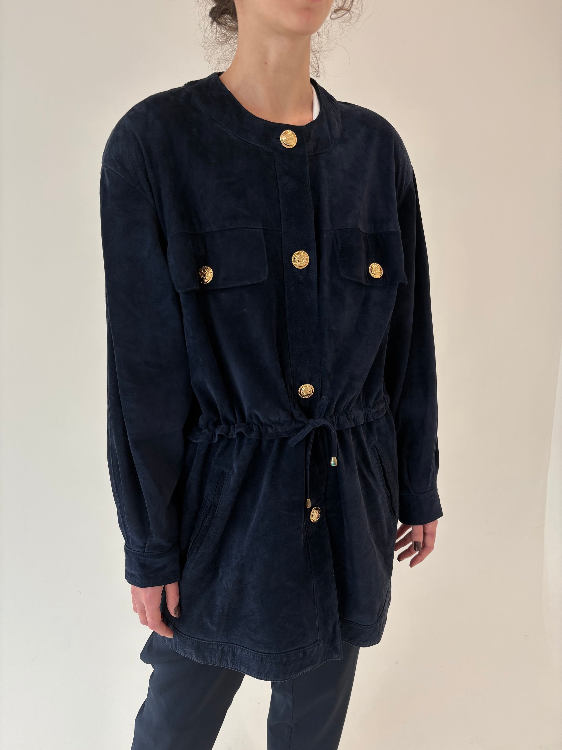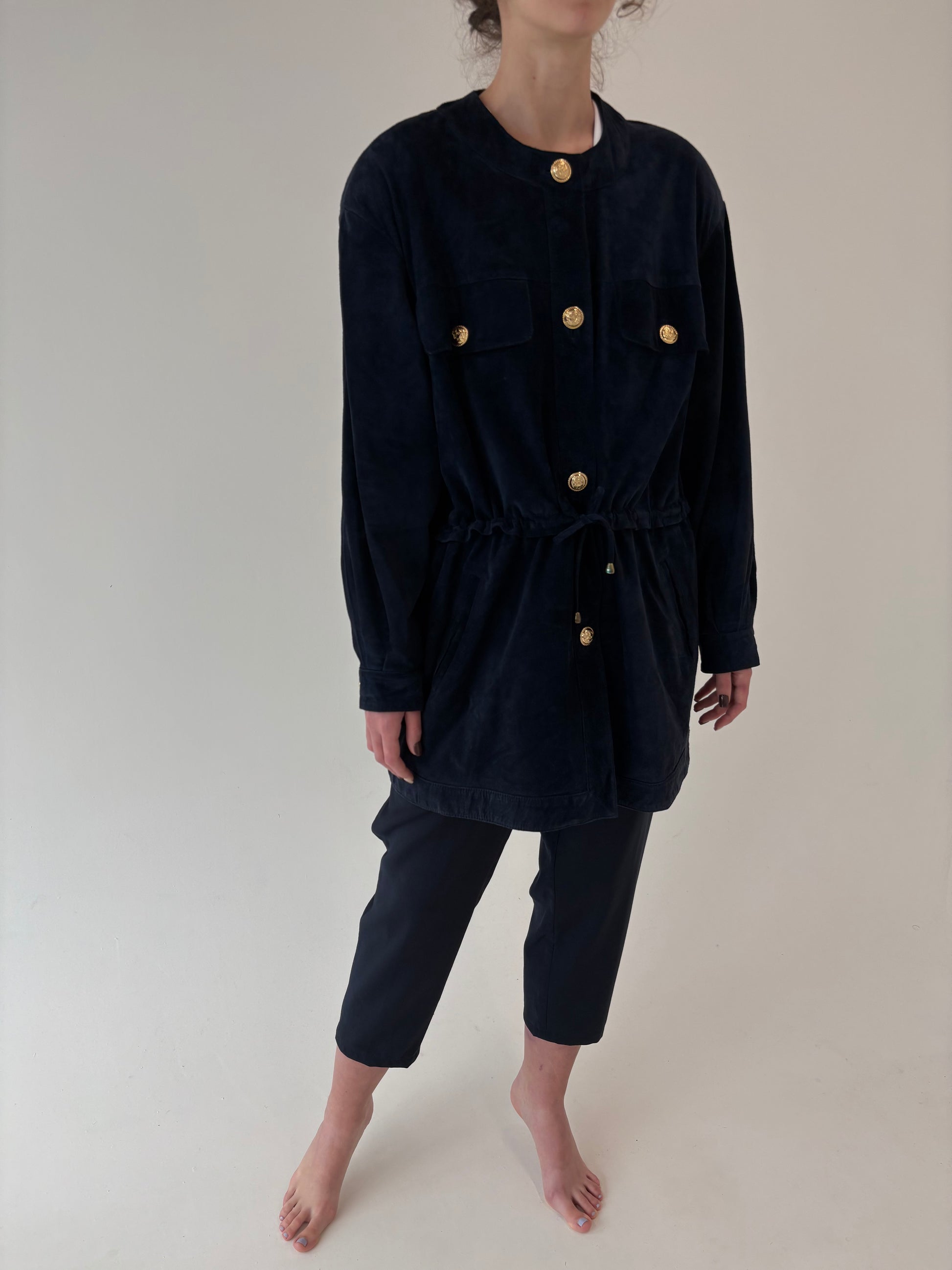 Jacheta petite din piele naturală în stil Chanel cu talie marcată reglabilă