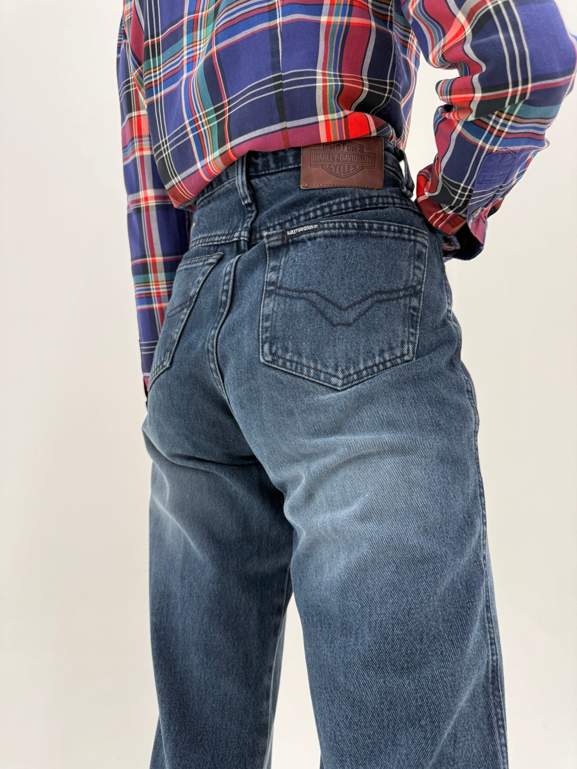 Jeans vintage dark wash tall americani din bumbac gros cu talie ultra înainta