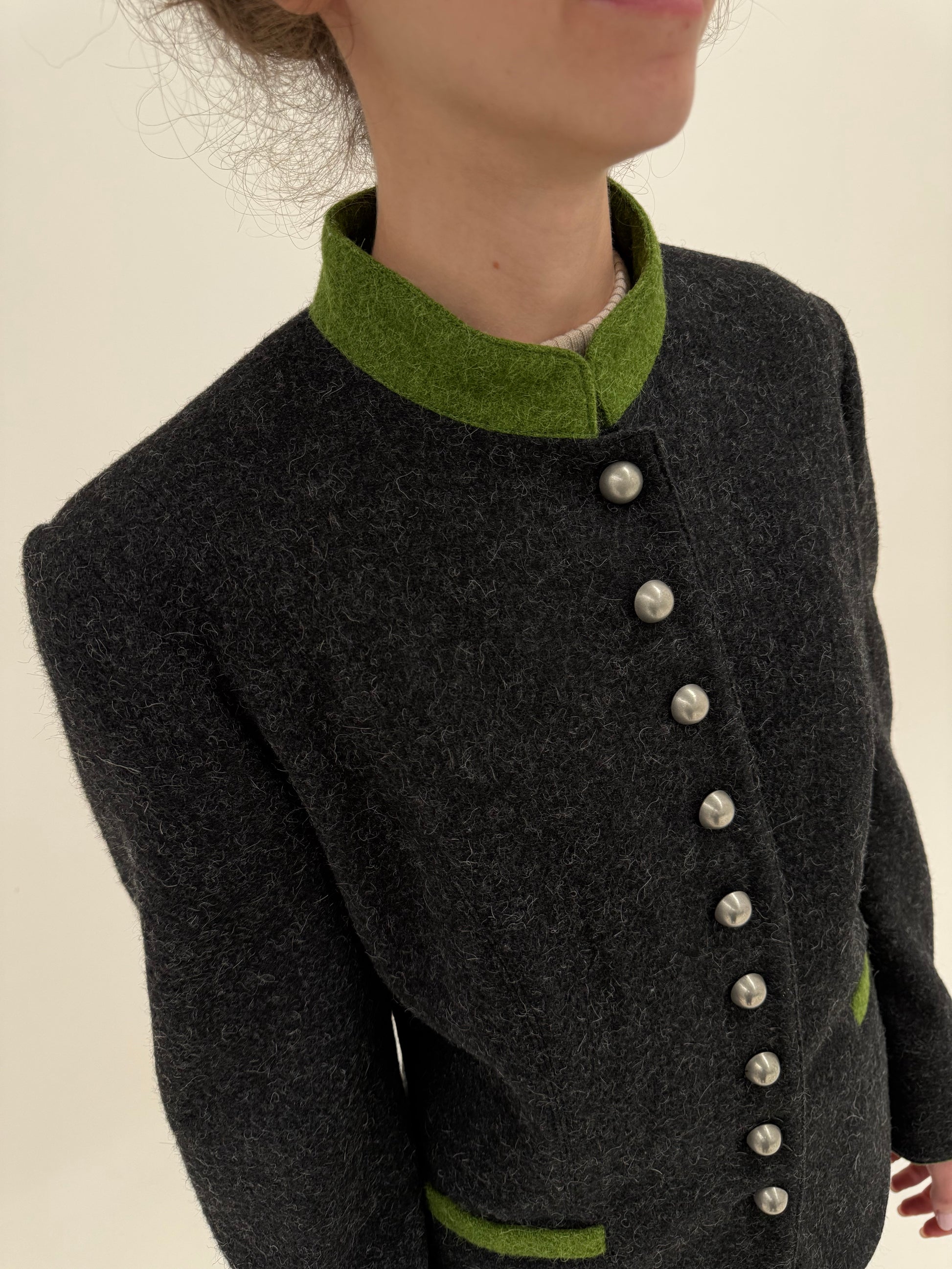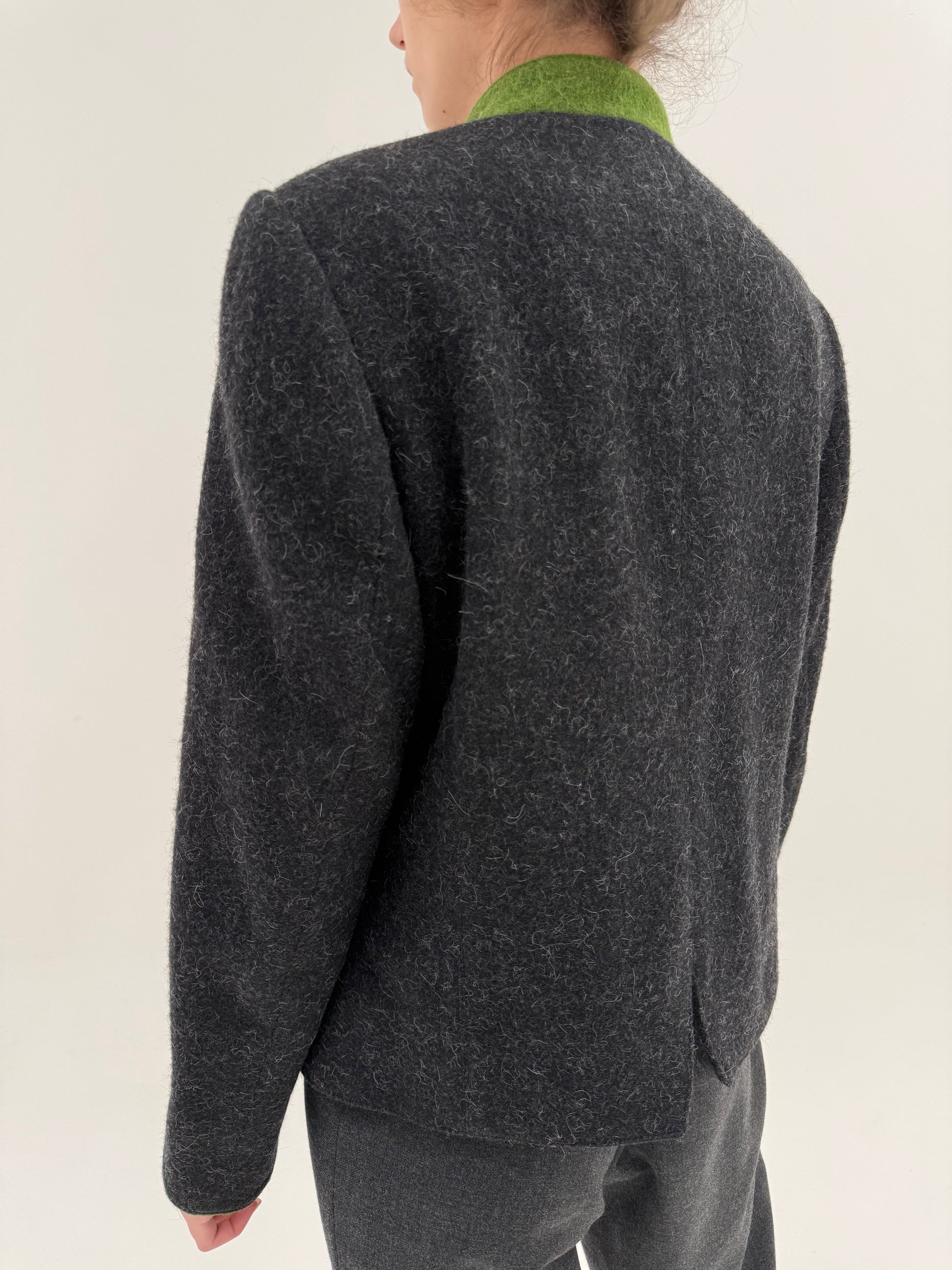 Jacheta gri din stofă structurată de lana și alpaka în croi minimalist