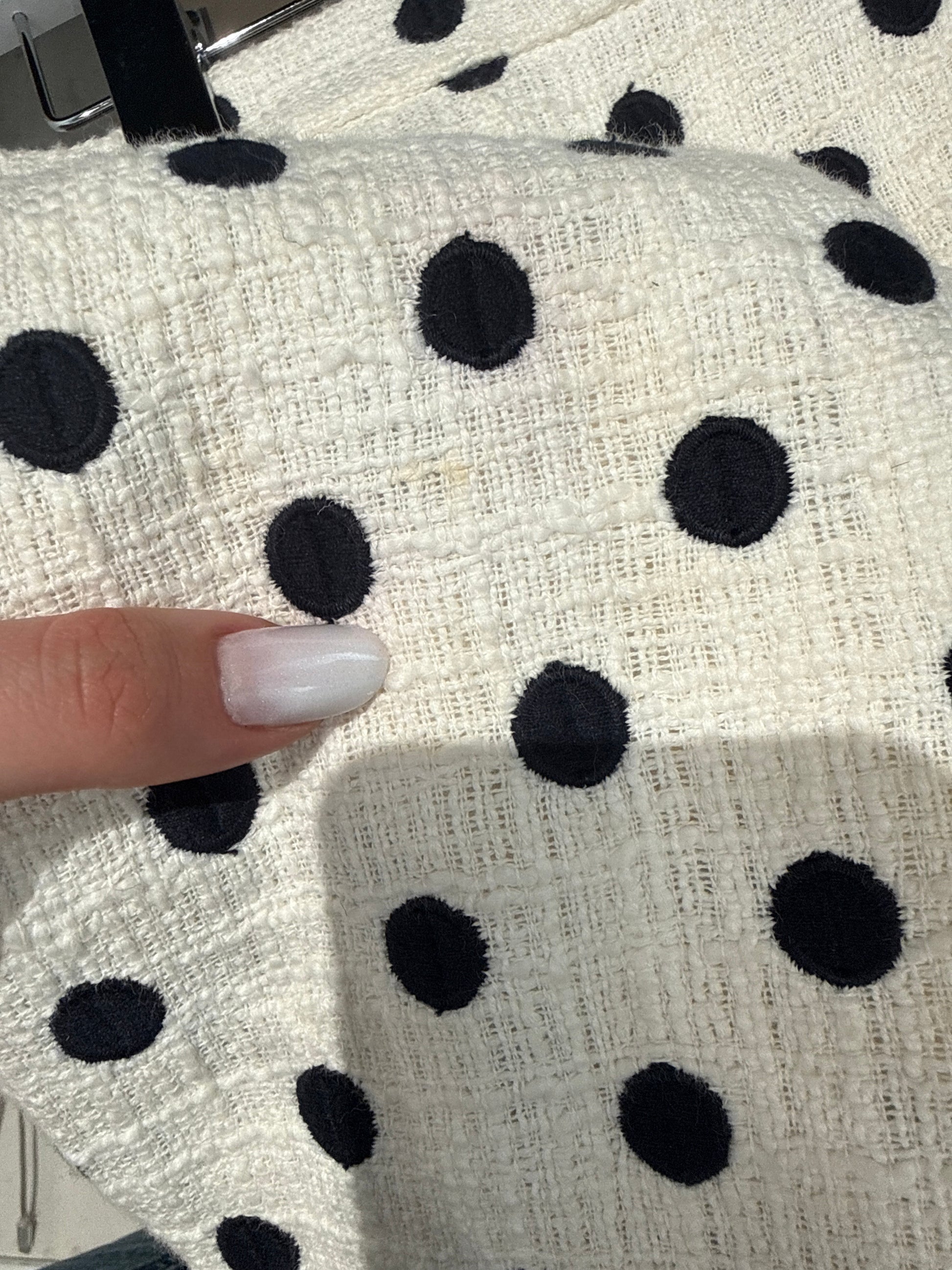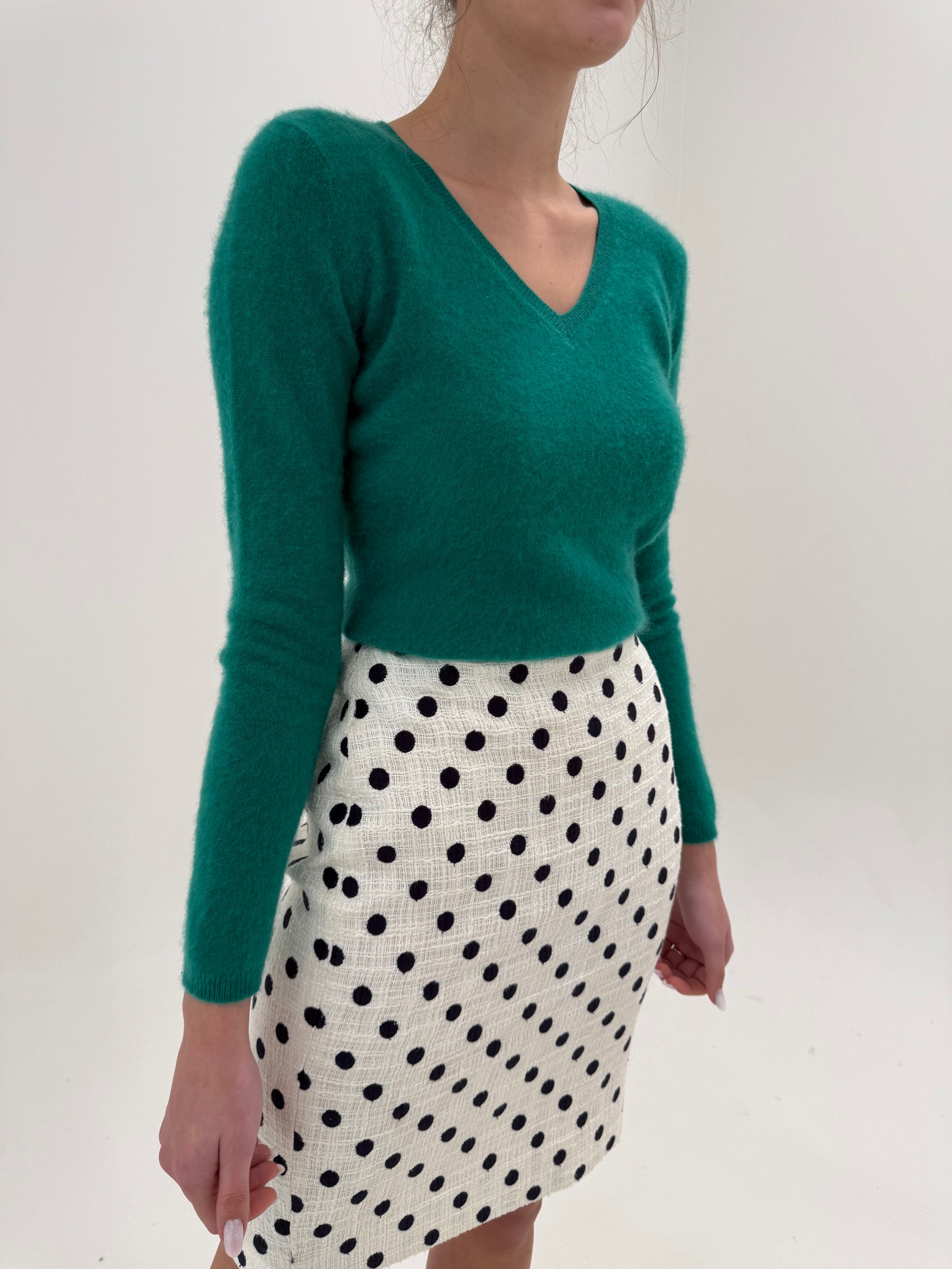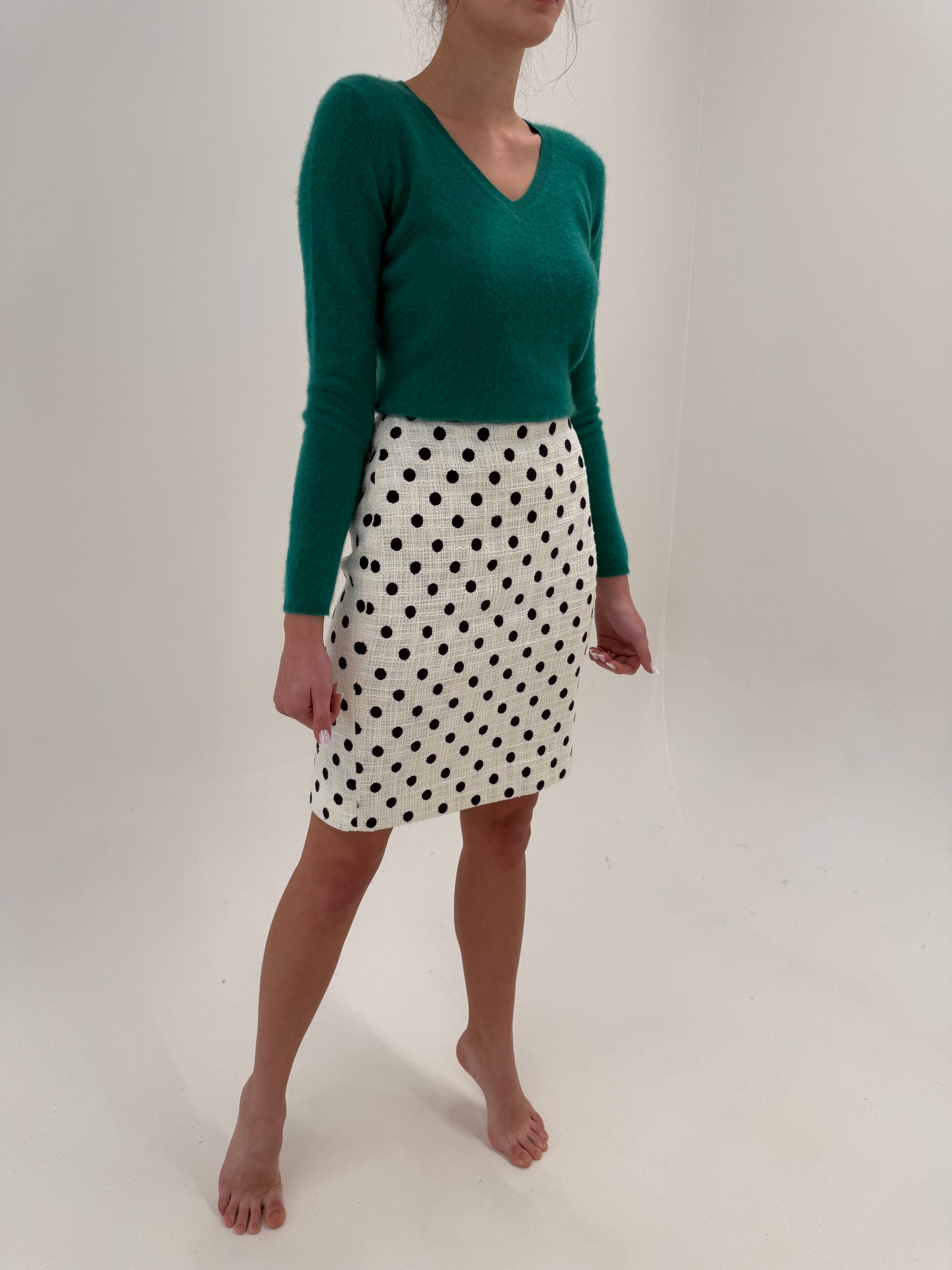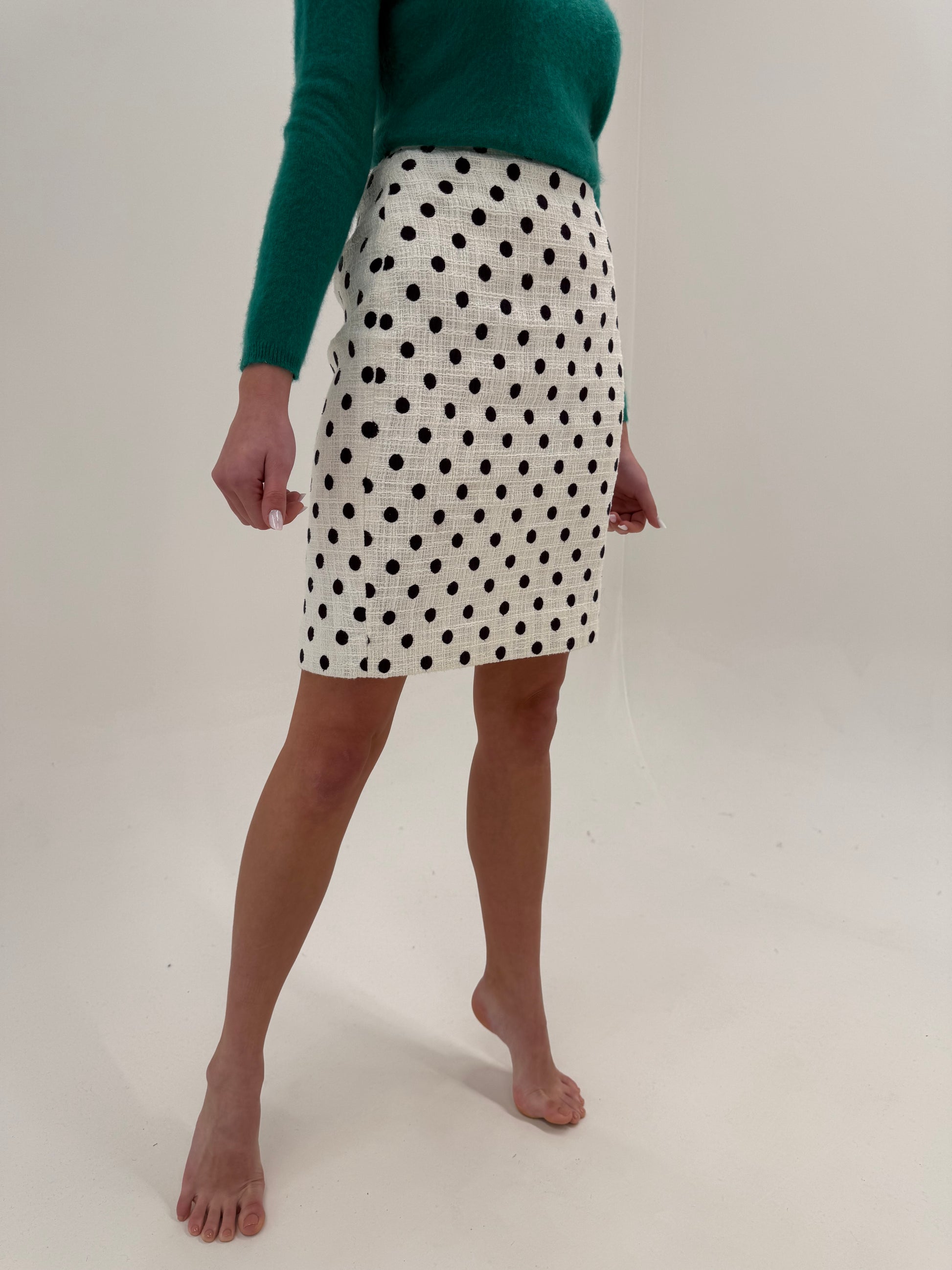 Fustă cu talie înaltă din tweed de bumbac cu buline