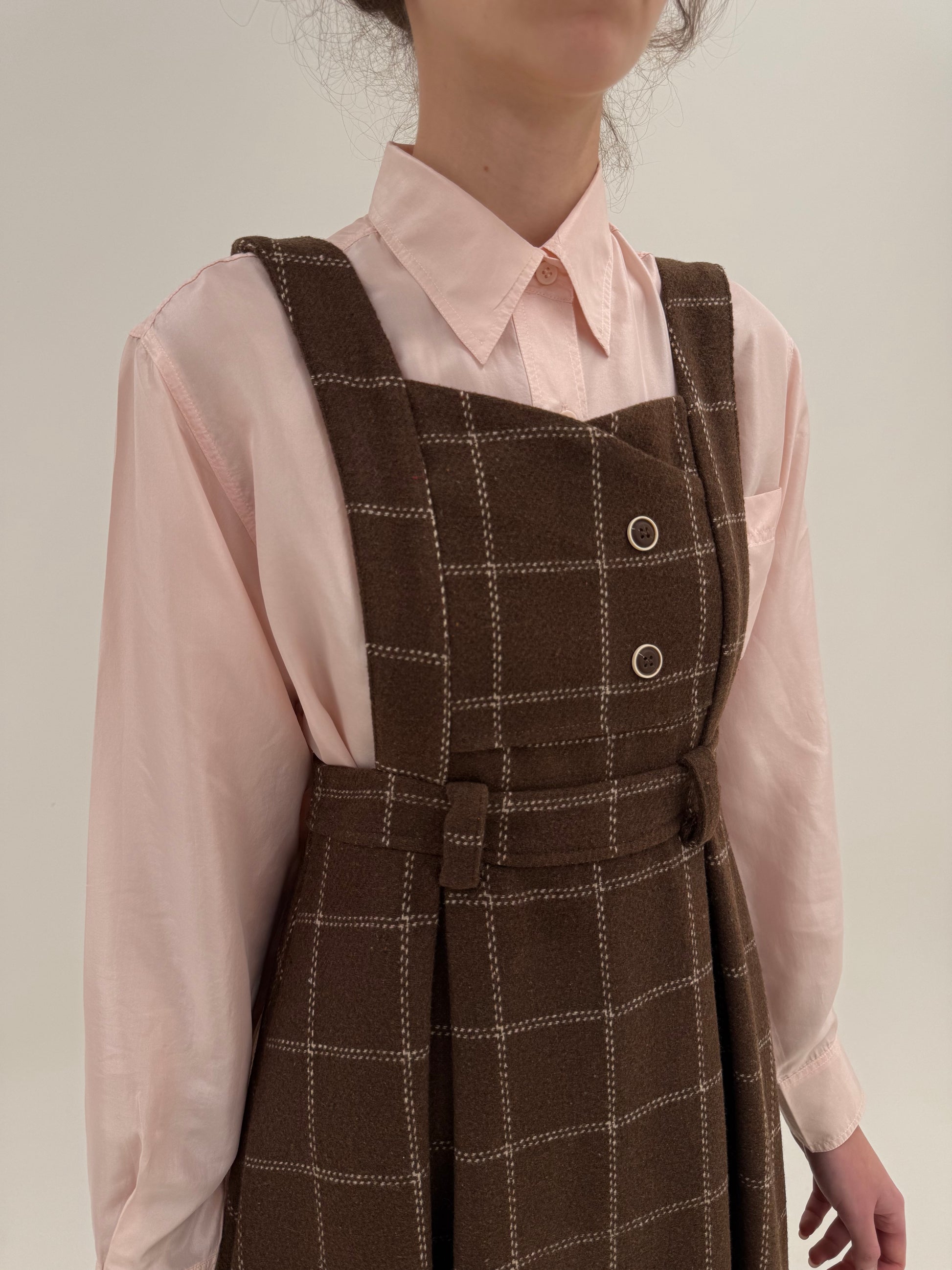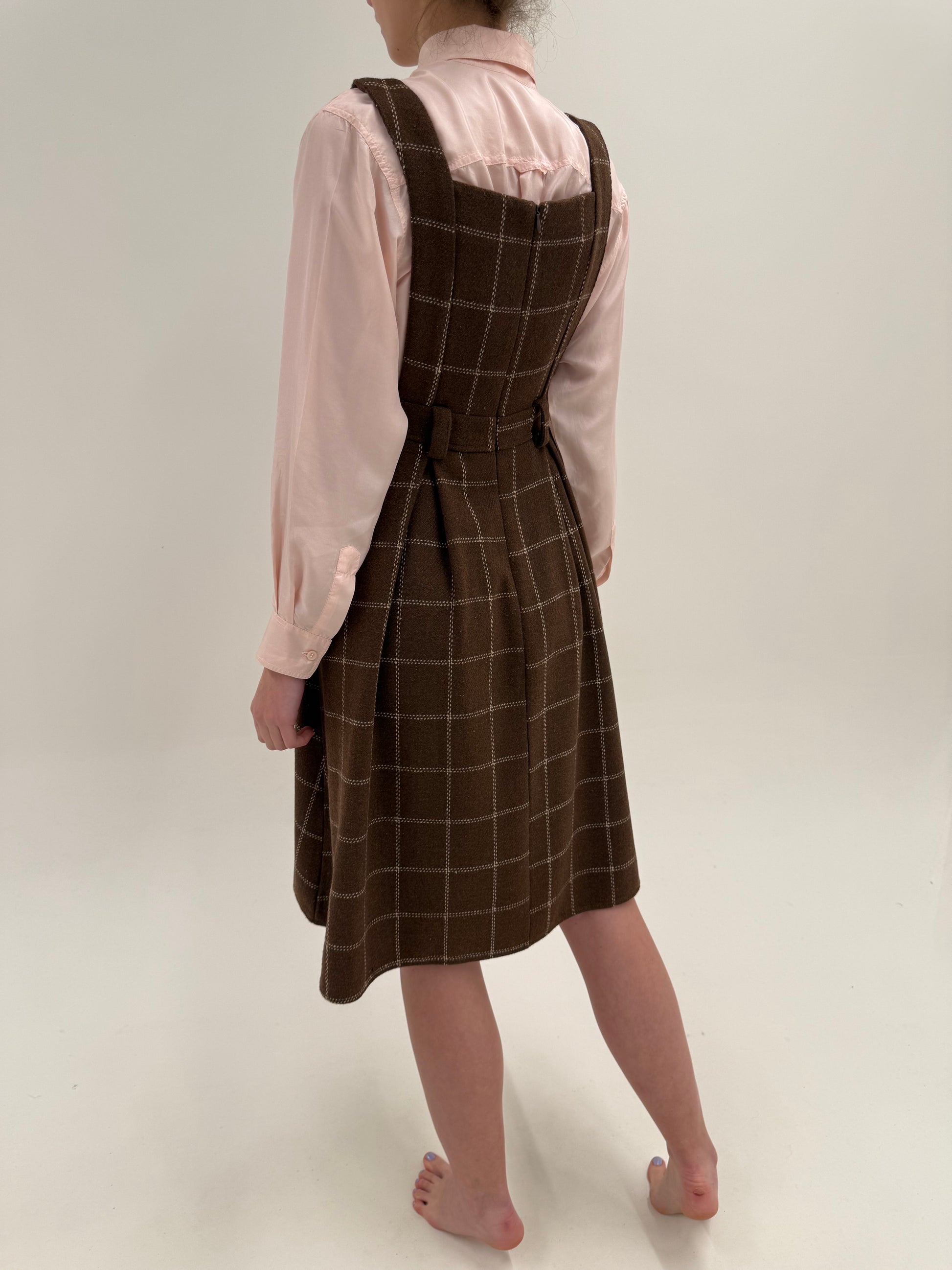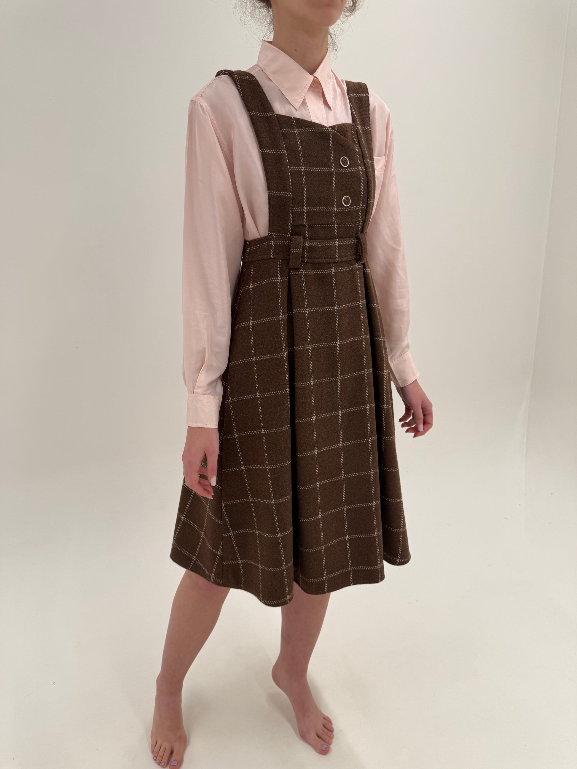 Rochie vintage din lana groasă extrafina în carouri powder Pink