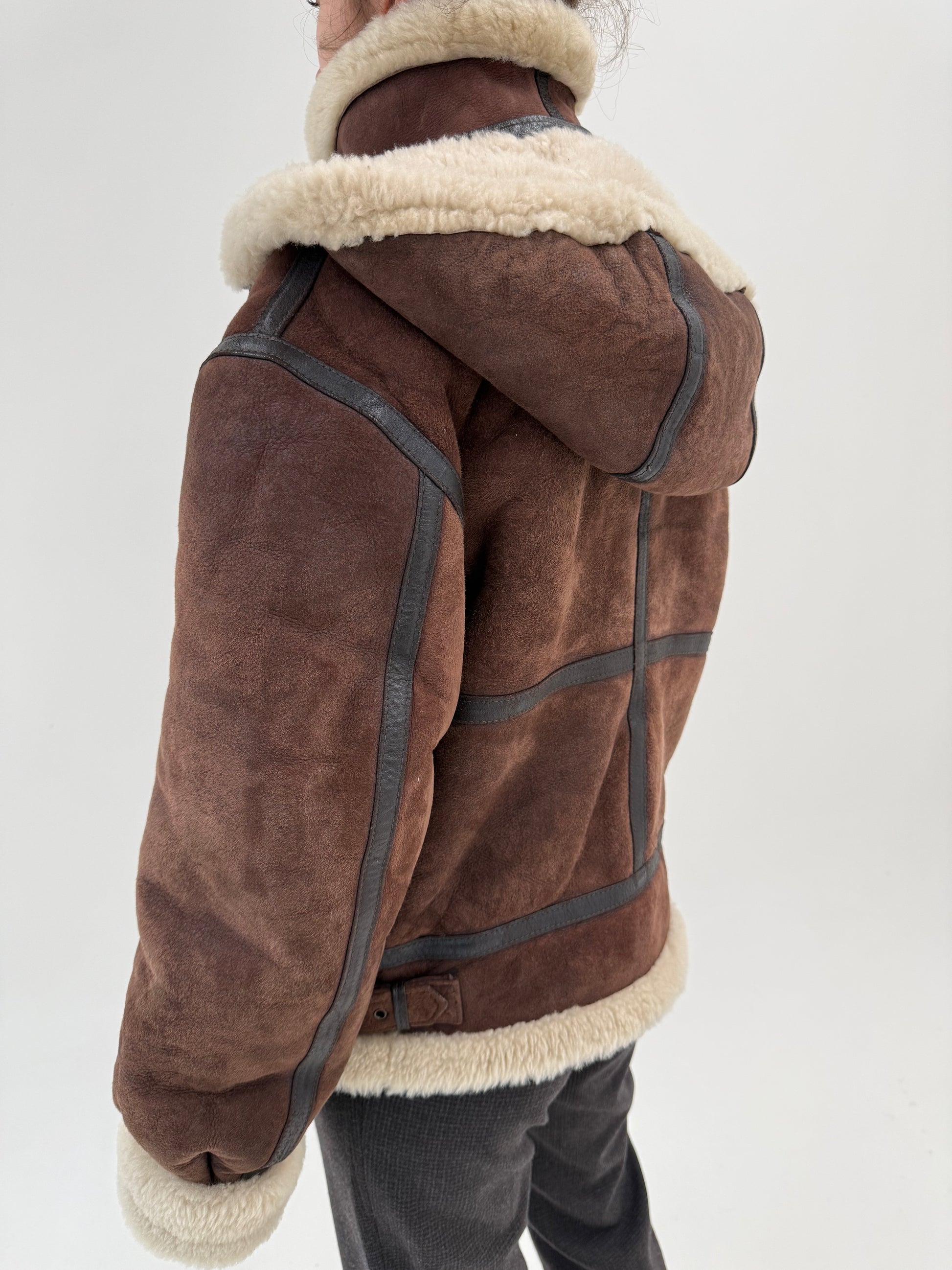 Blana naturală Shearling chocolate brown cu glugă în croi super actual