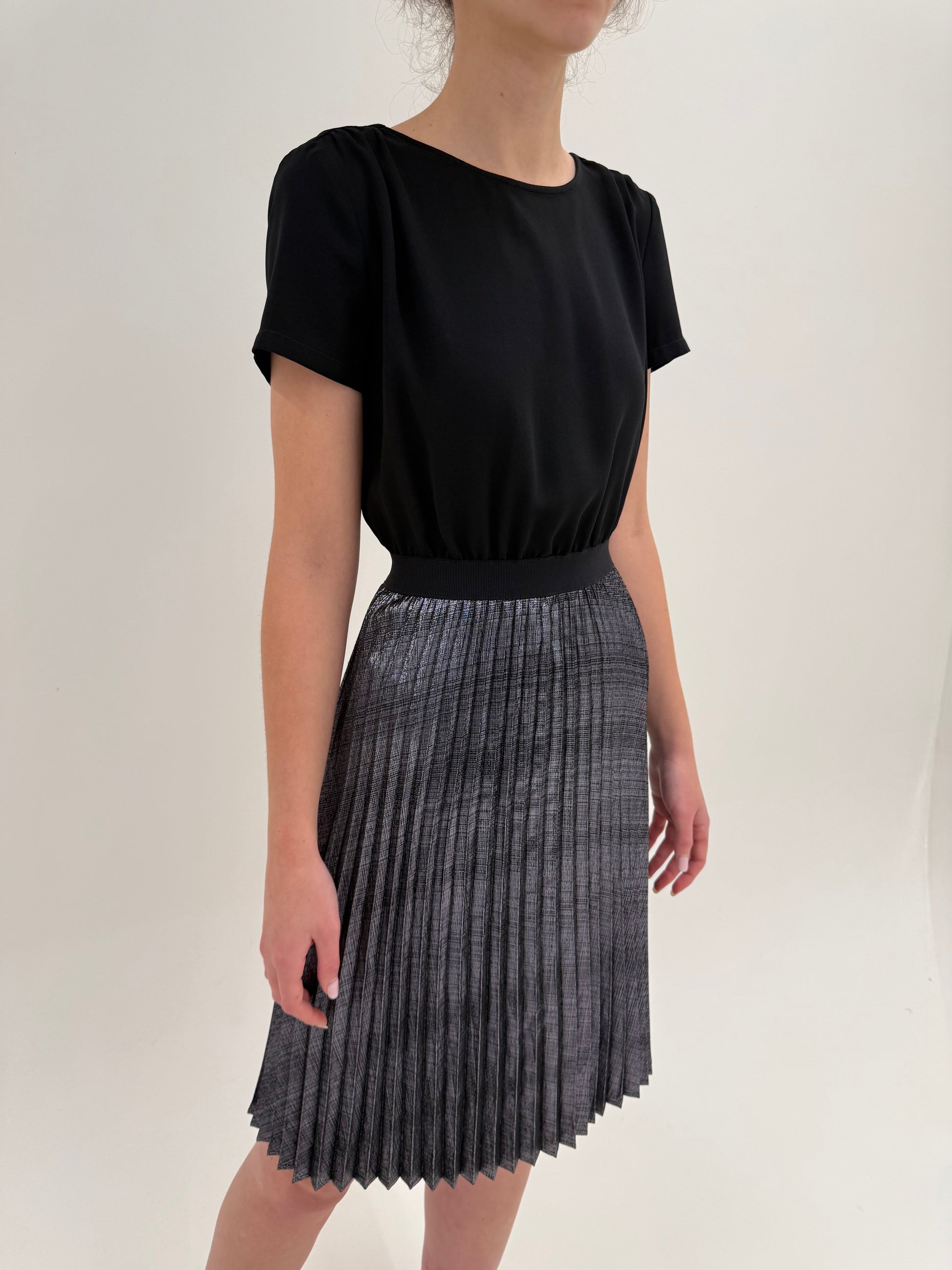 Rochie de la business la cocktail de brand premium italian cu fustă plisată argintie