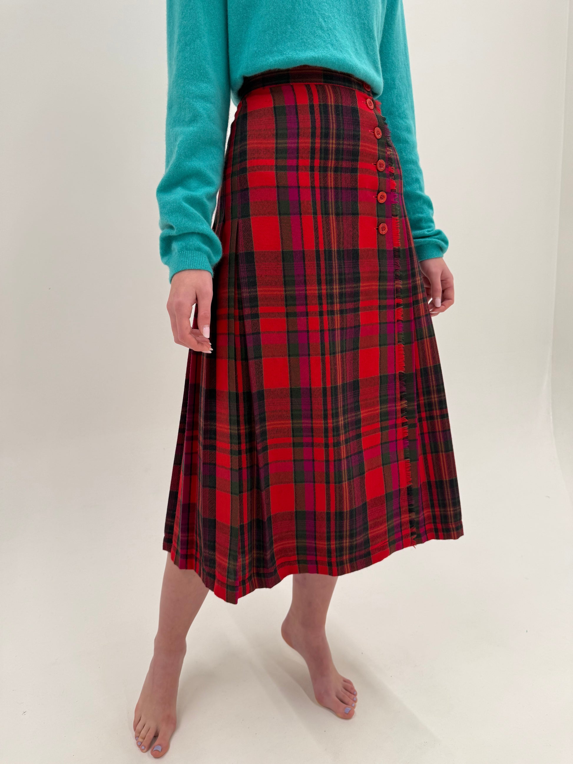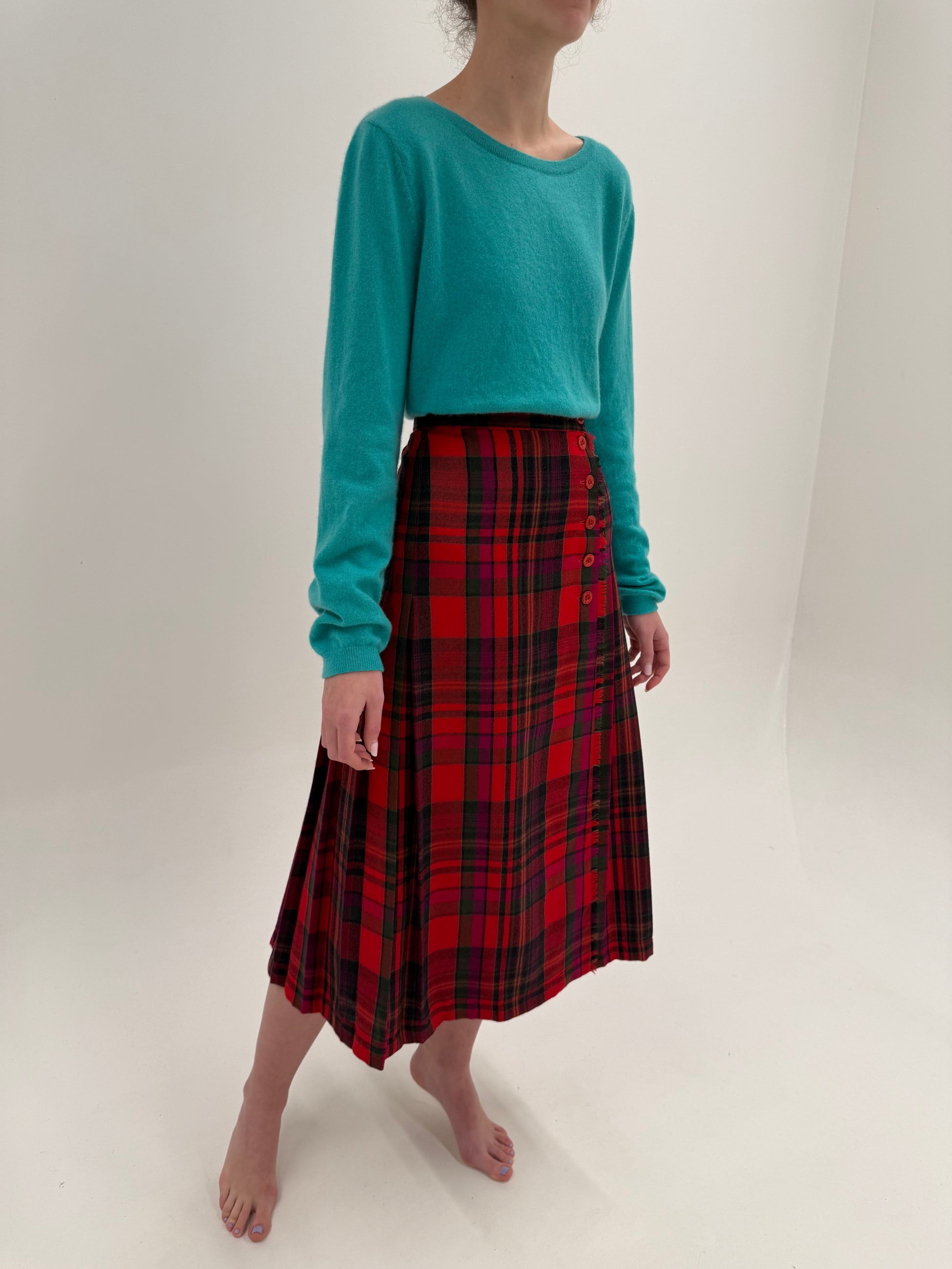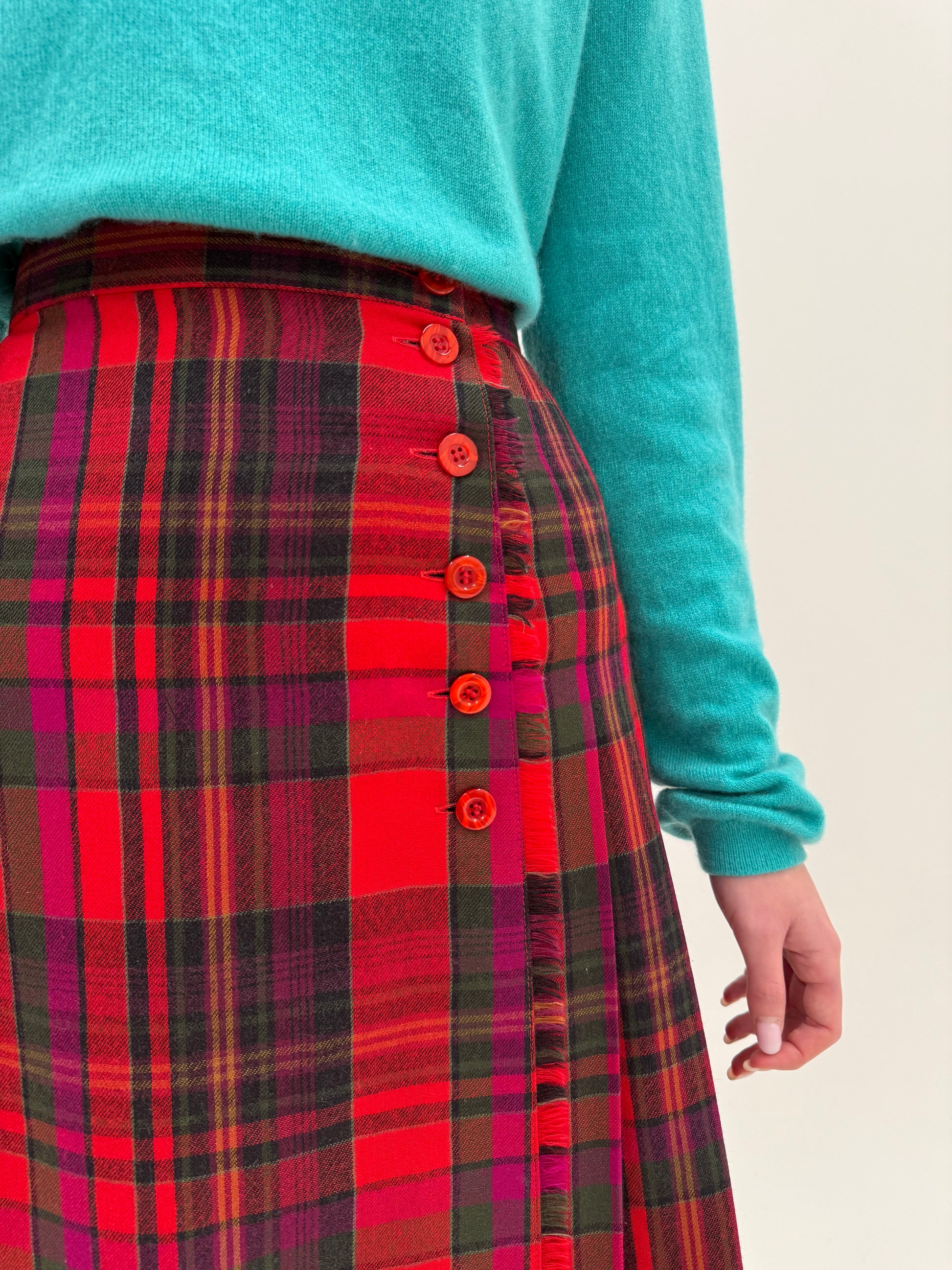 Fustă midi spre maxi din trântă de lana în culori tari cu talie ultra înaltă