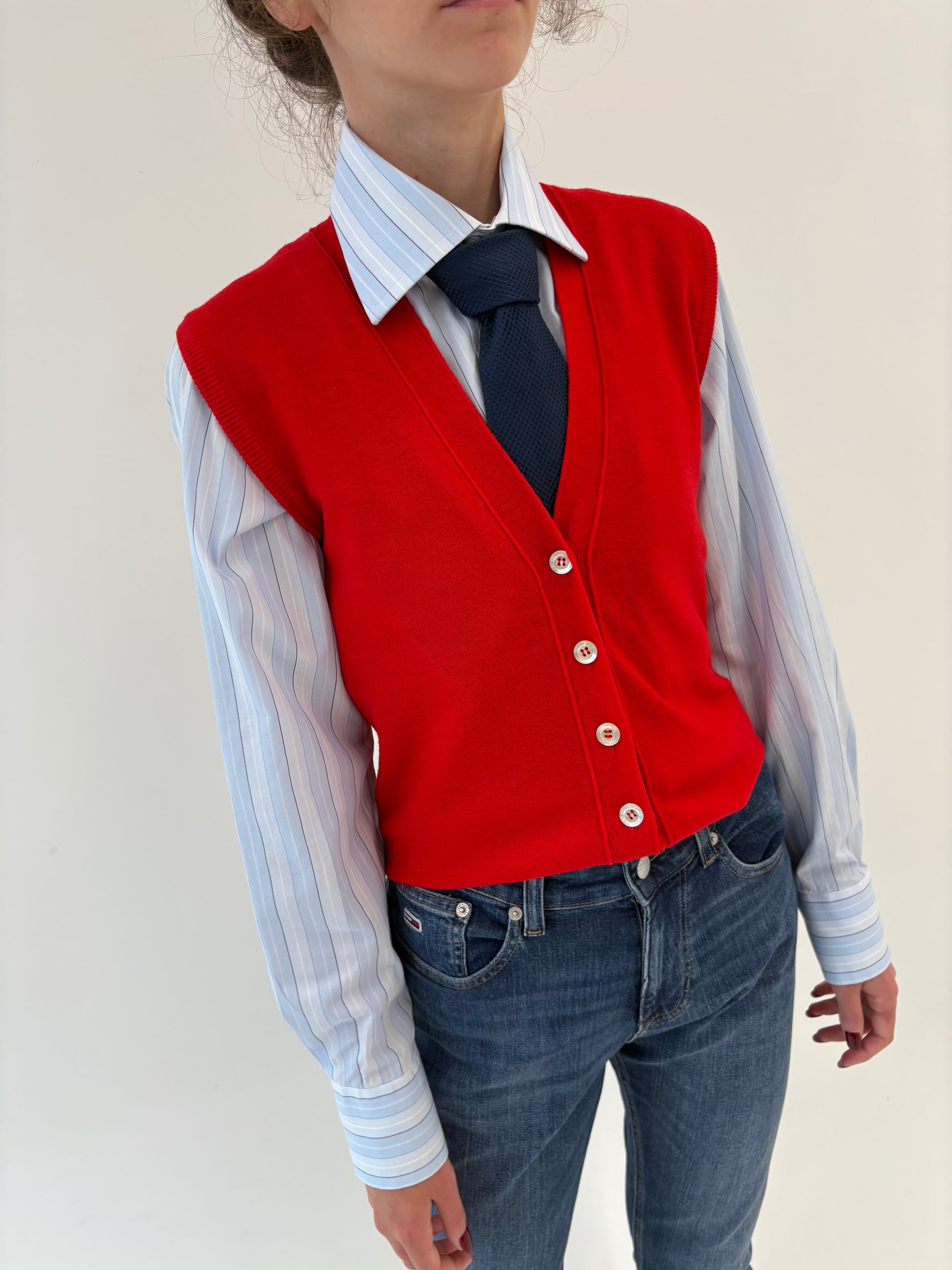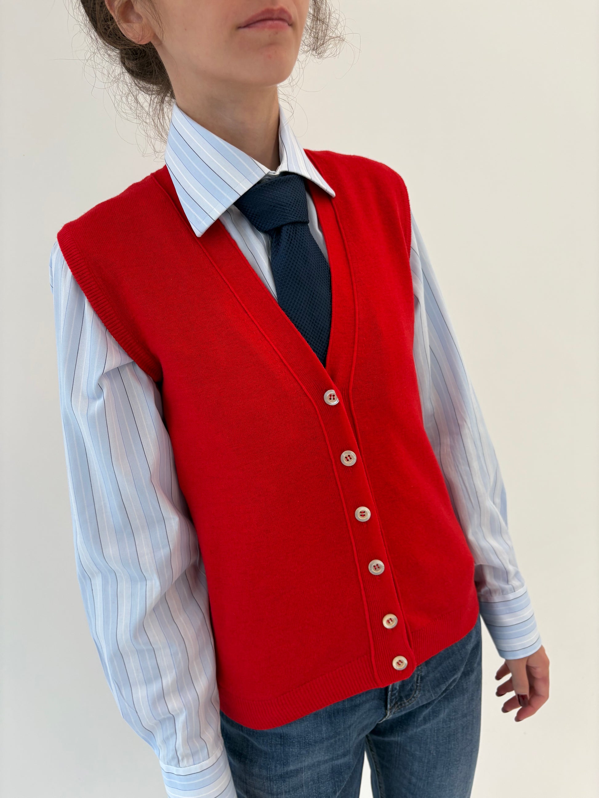Vestă/ top cherry red vintage italiană din lana extrafina