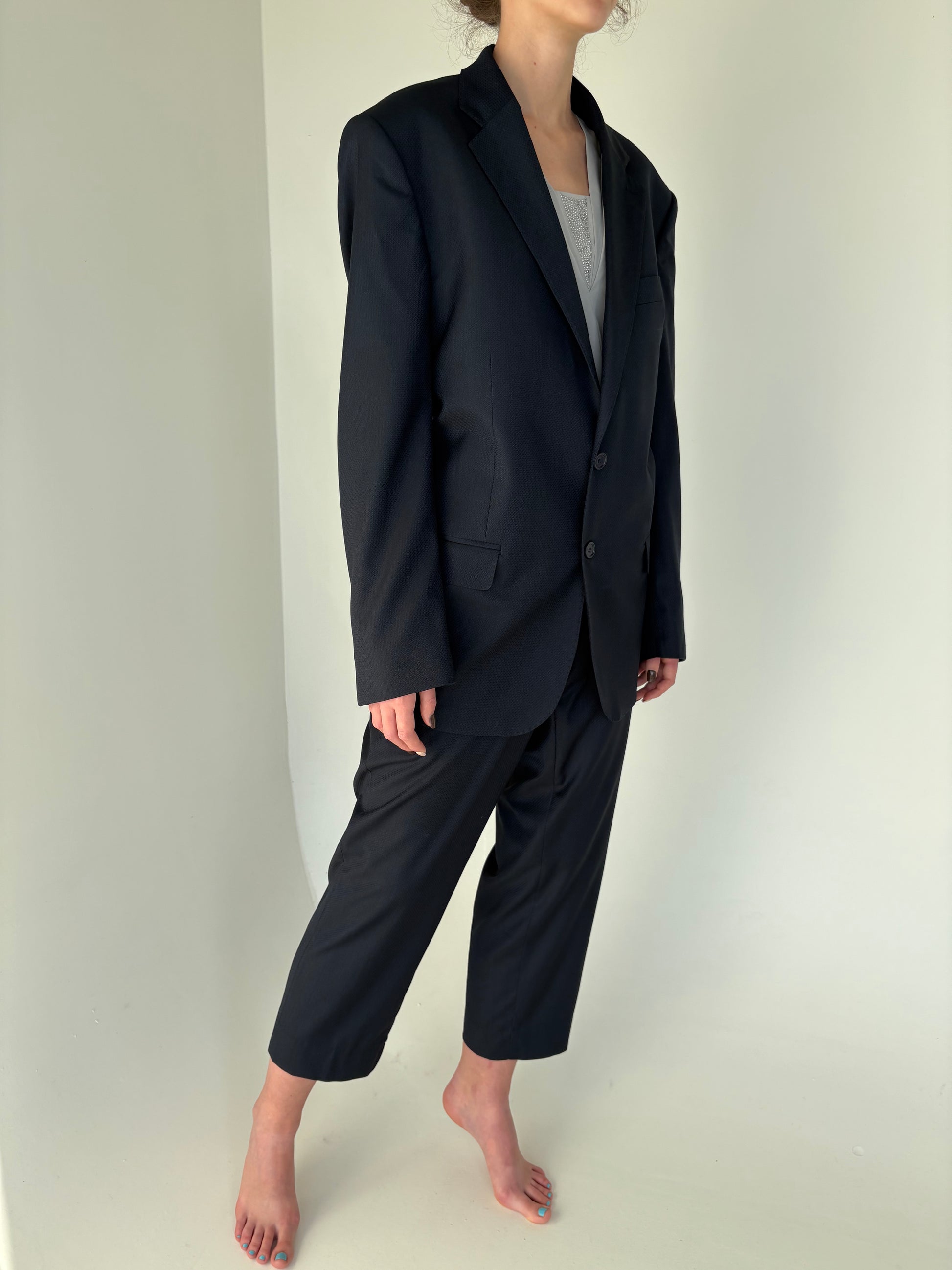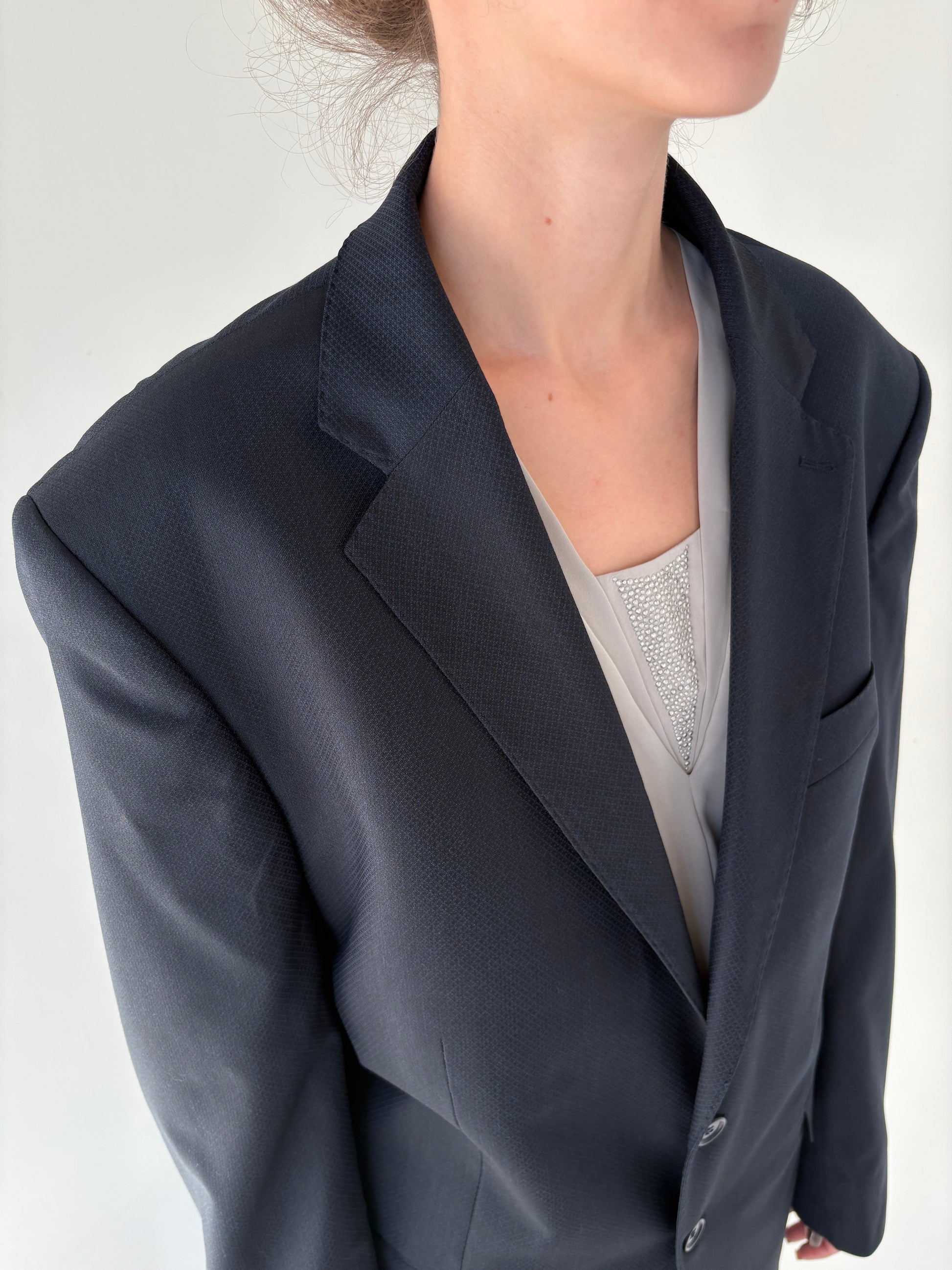 Costum italian Navy blue din stofita de lana extrafina texturată