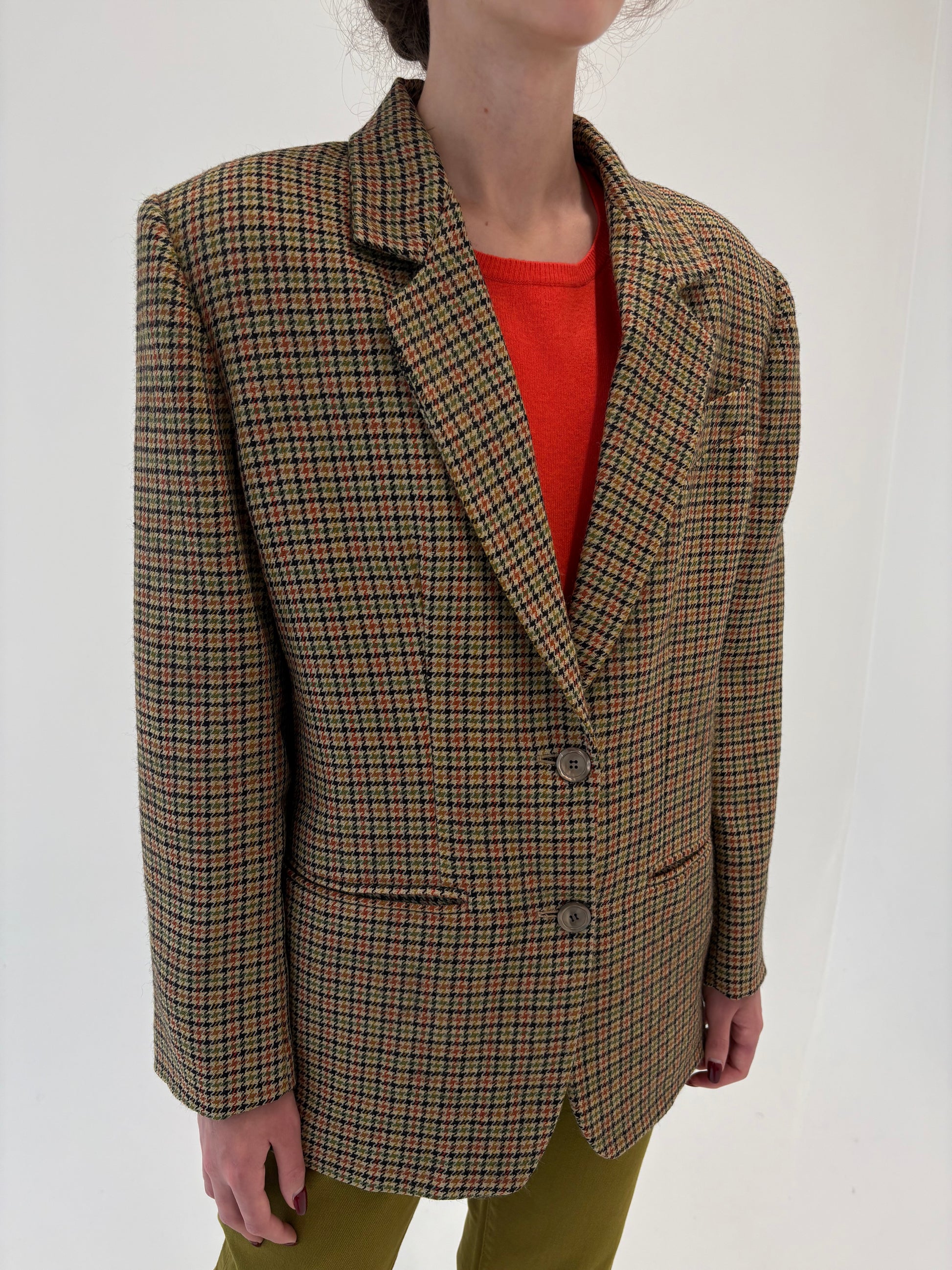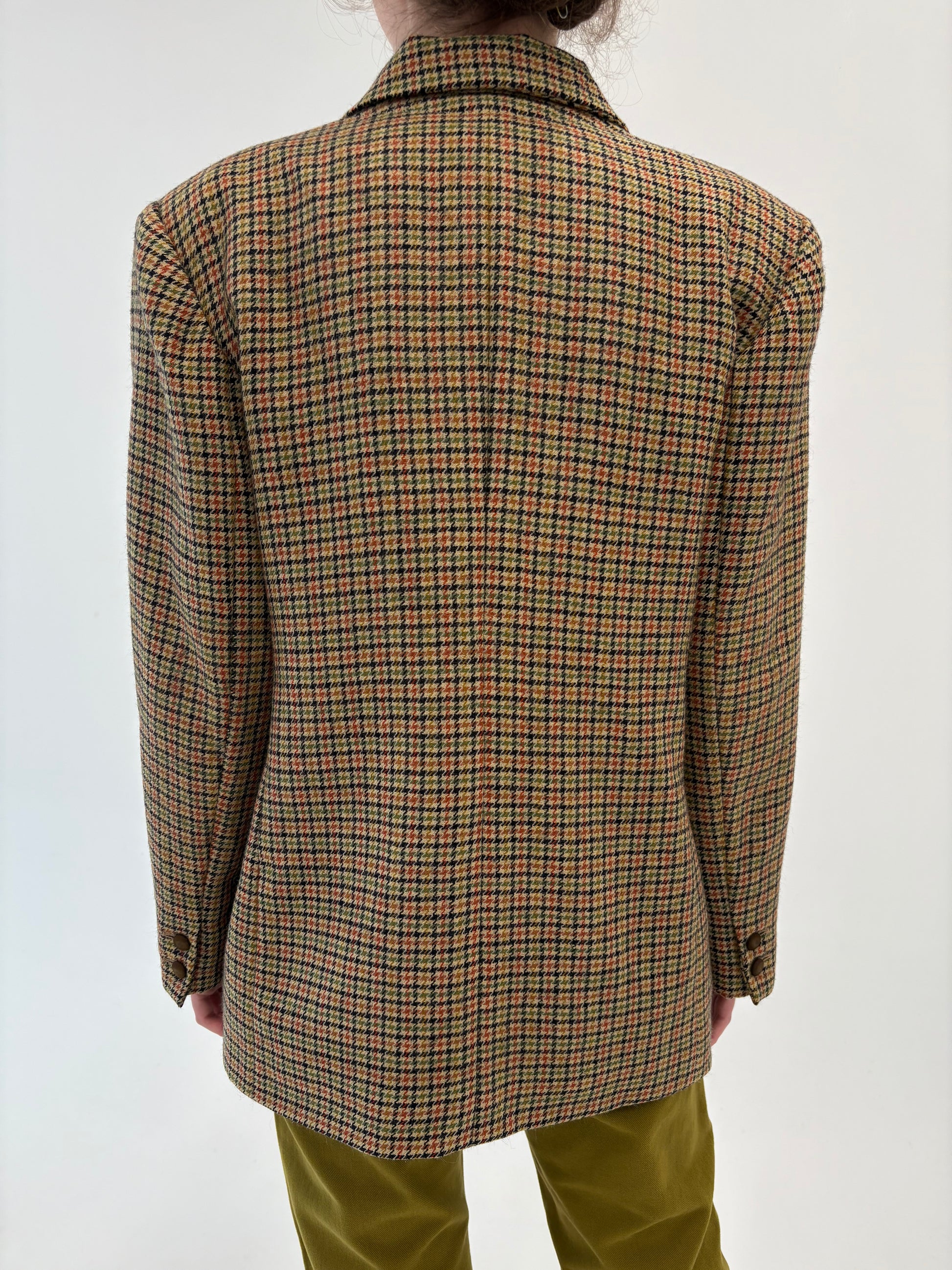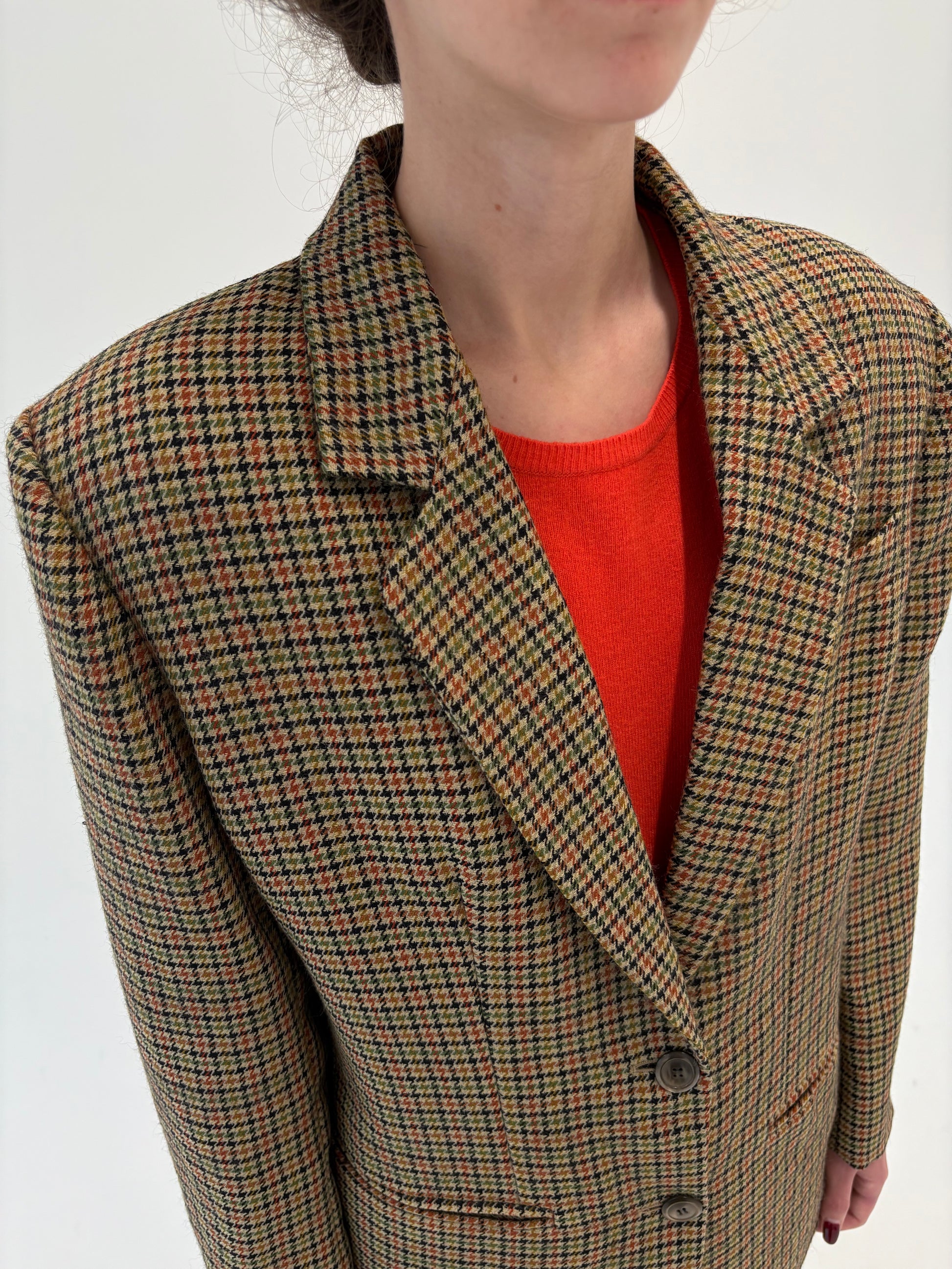 Sacou camel din tweed pied du coq excepțional de lana pura certificată extrafina