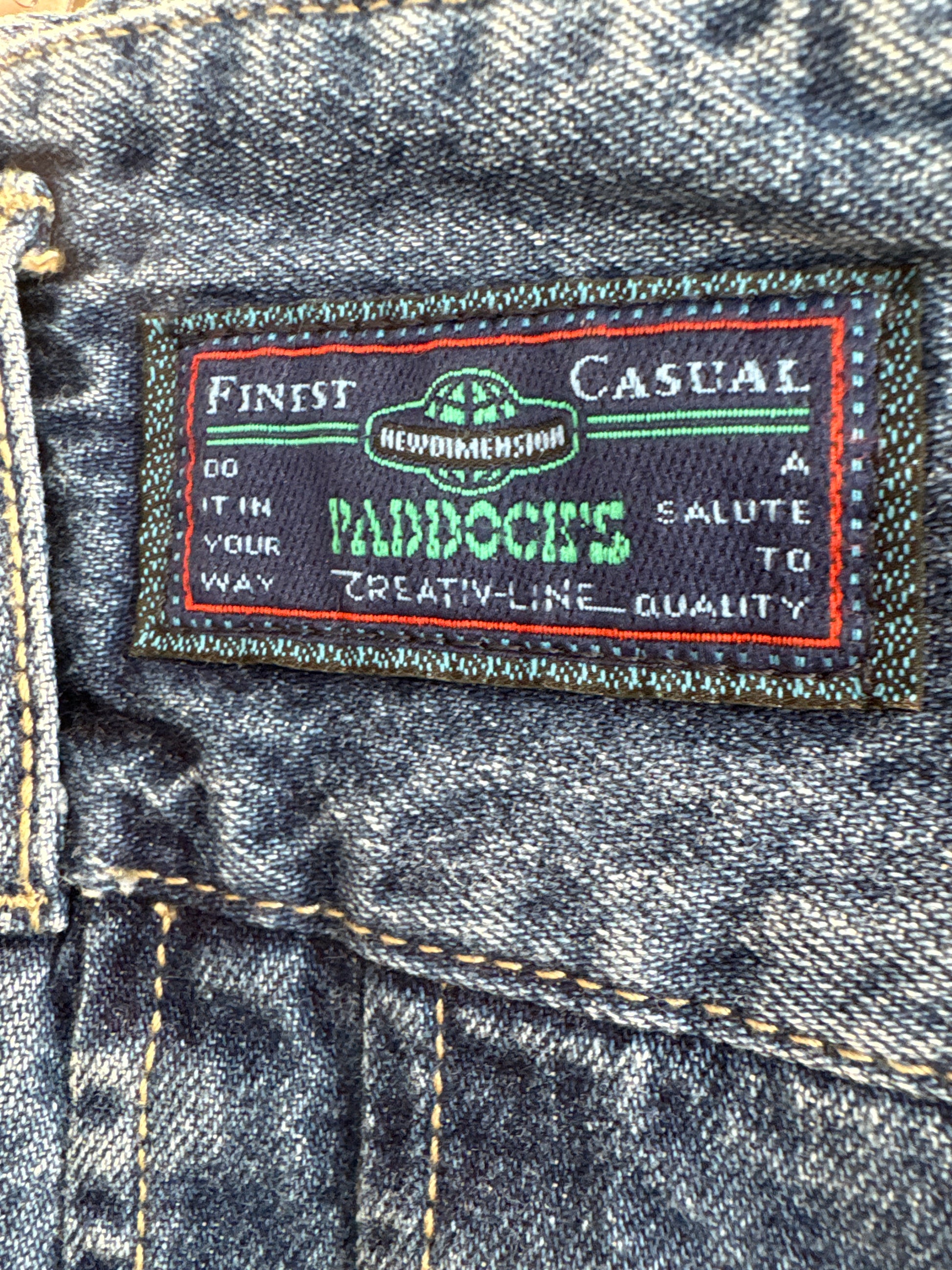 Eticheta PADDOCK’S „New Dimension Creative Line” indică o producție europeană de jeans din anii 1980 spre final