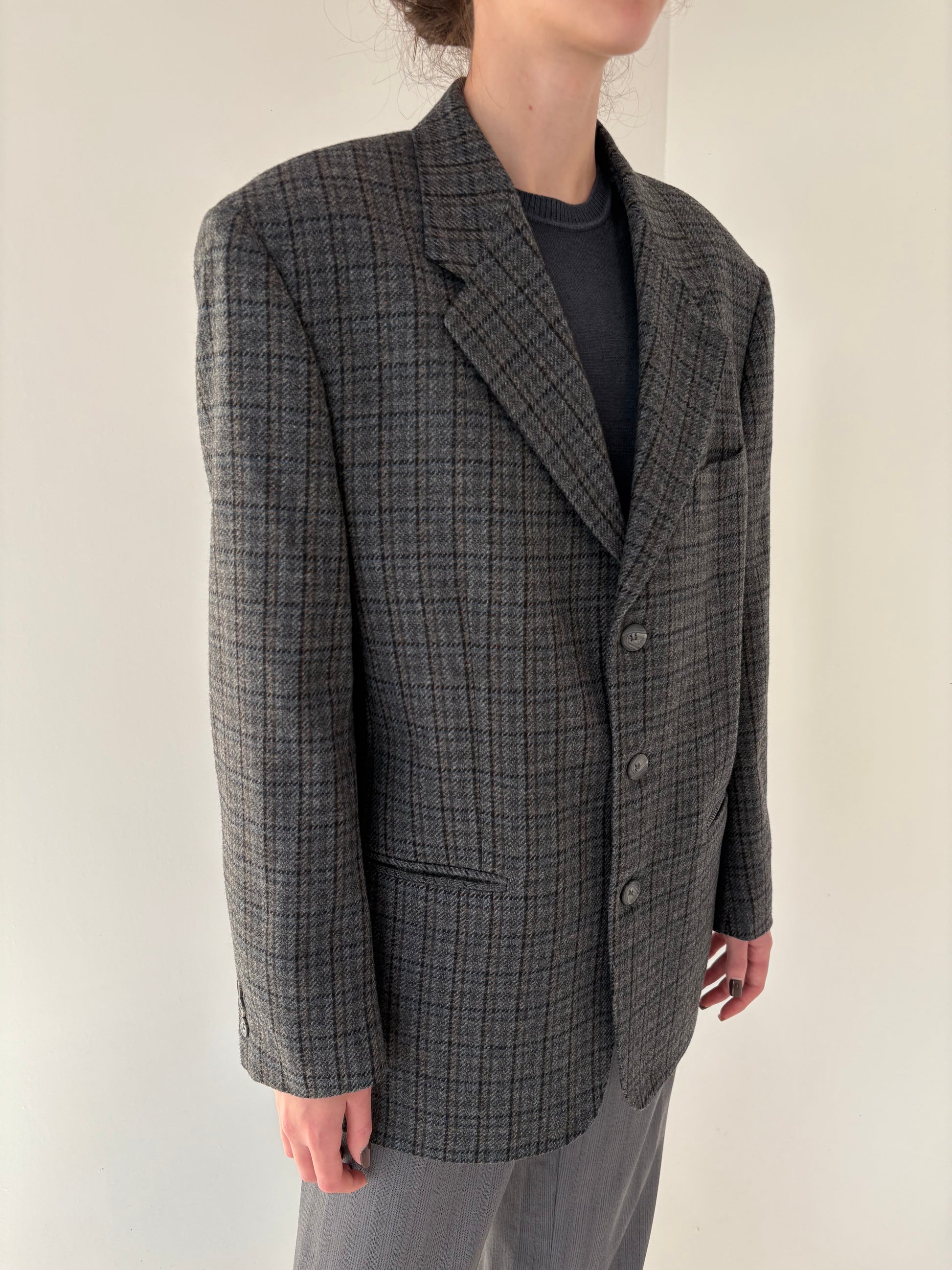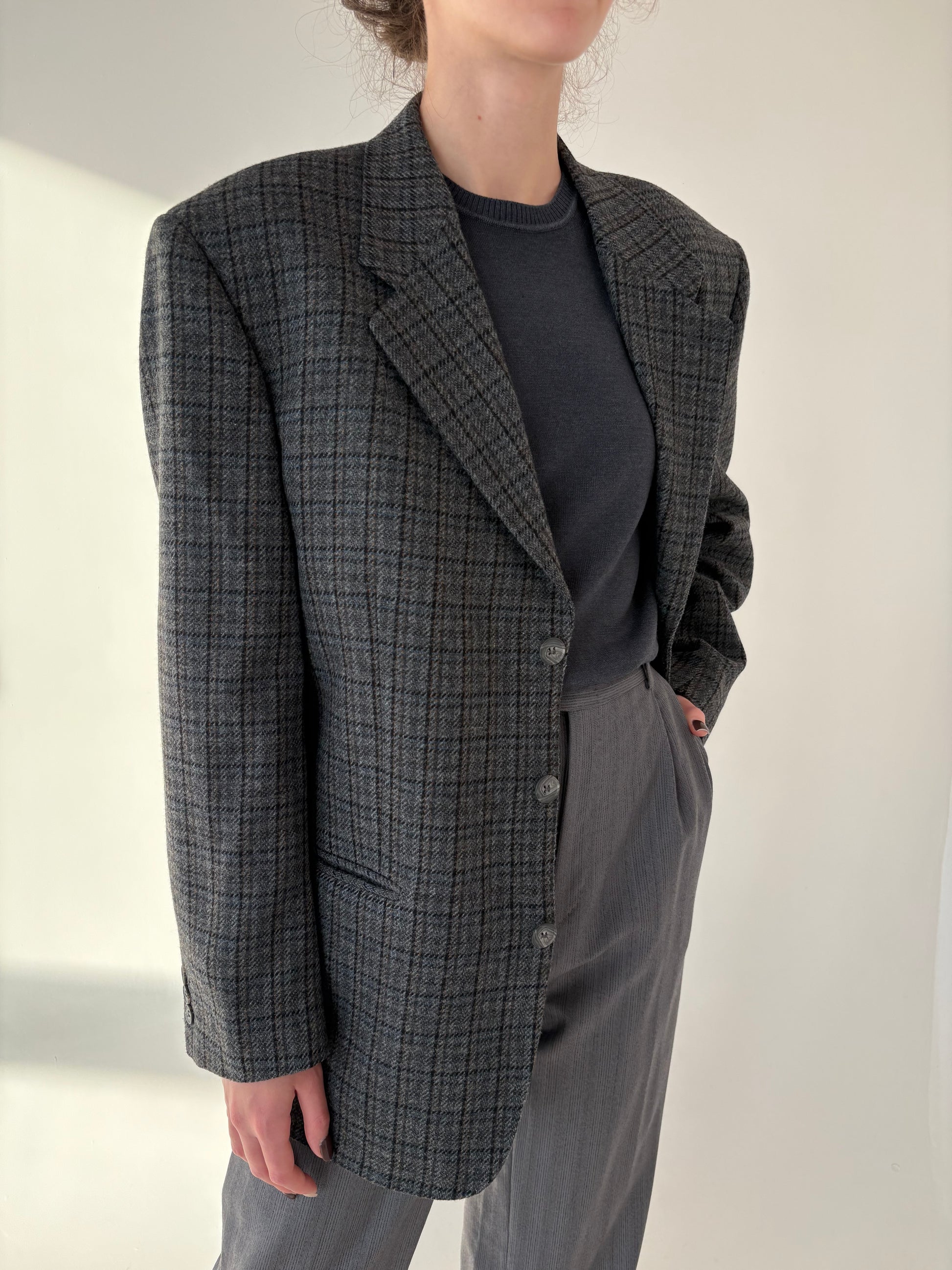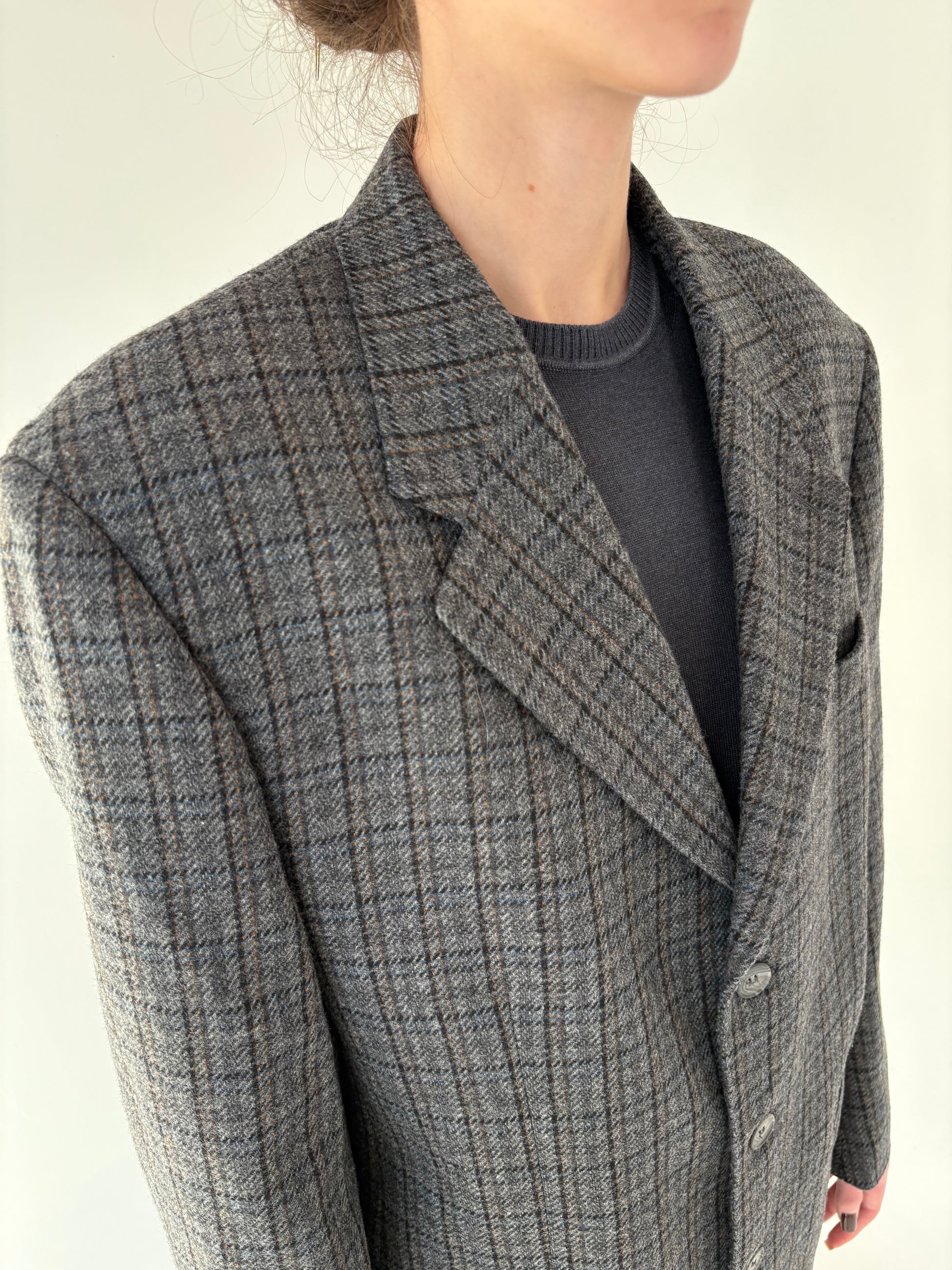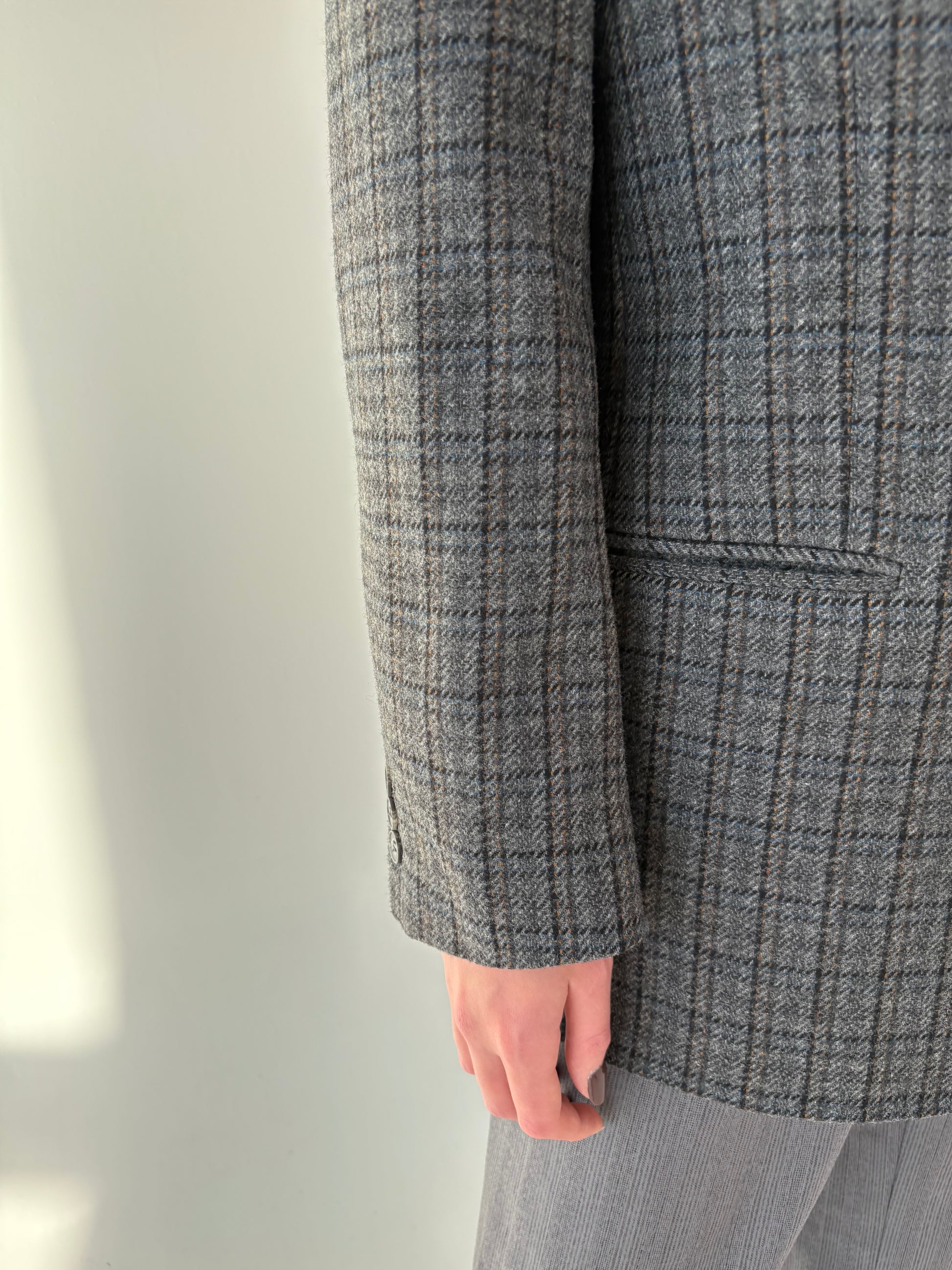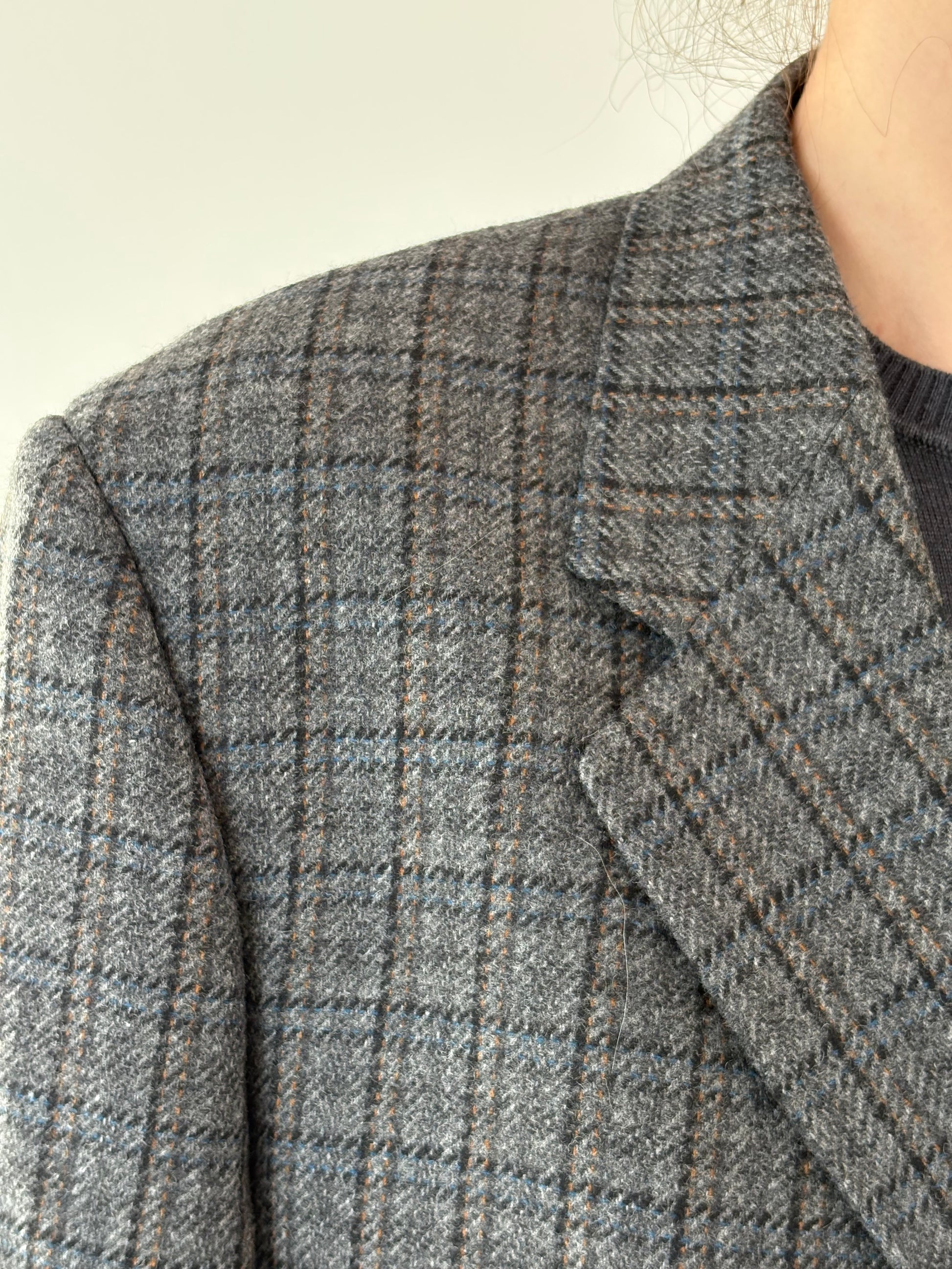 Sacou italian din tweed gros de lana în carouri și nuanțe neutre