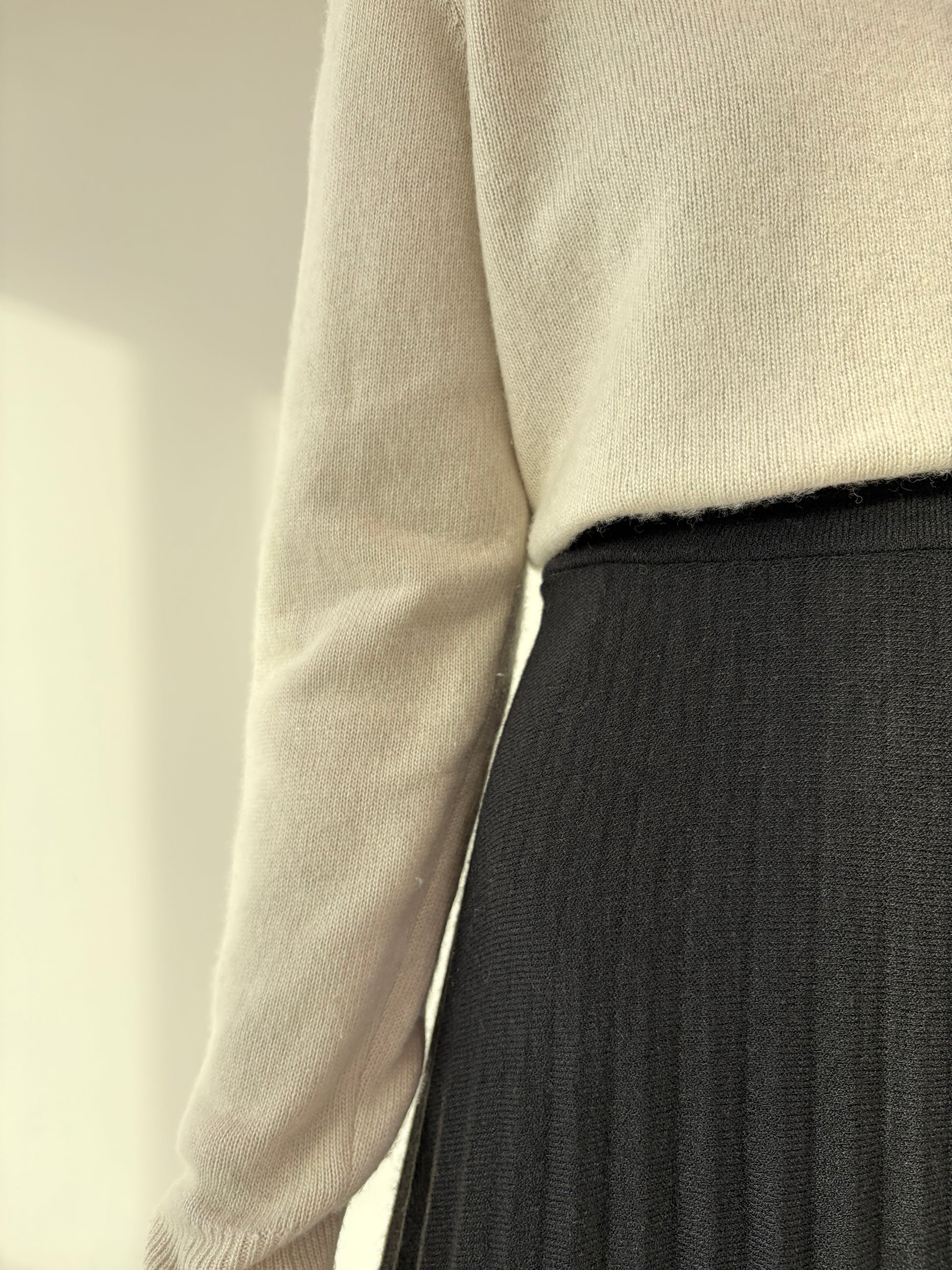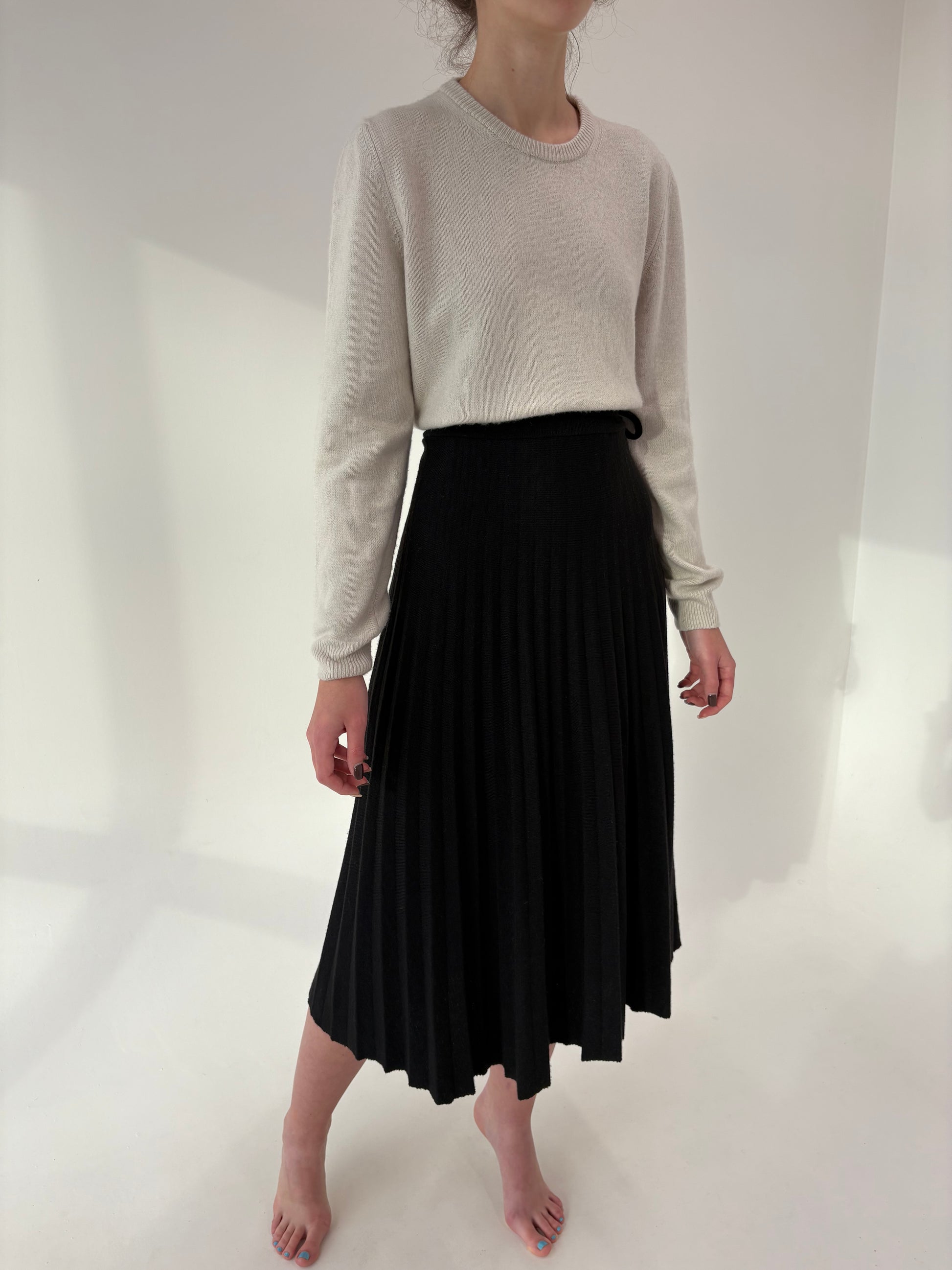 Fustă neagră plisată din tricot extrafina din mix de lana