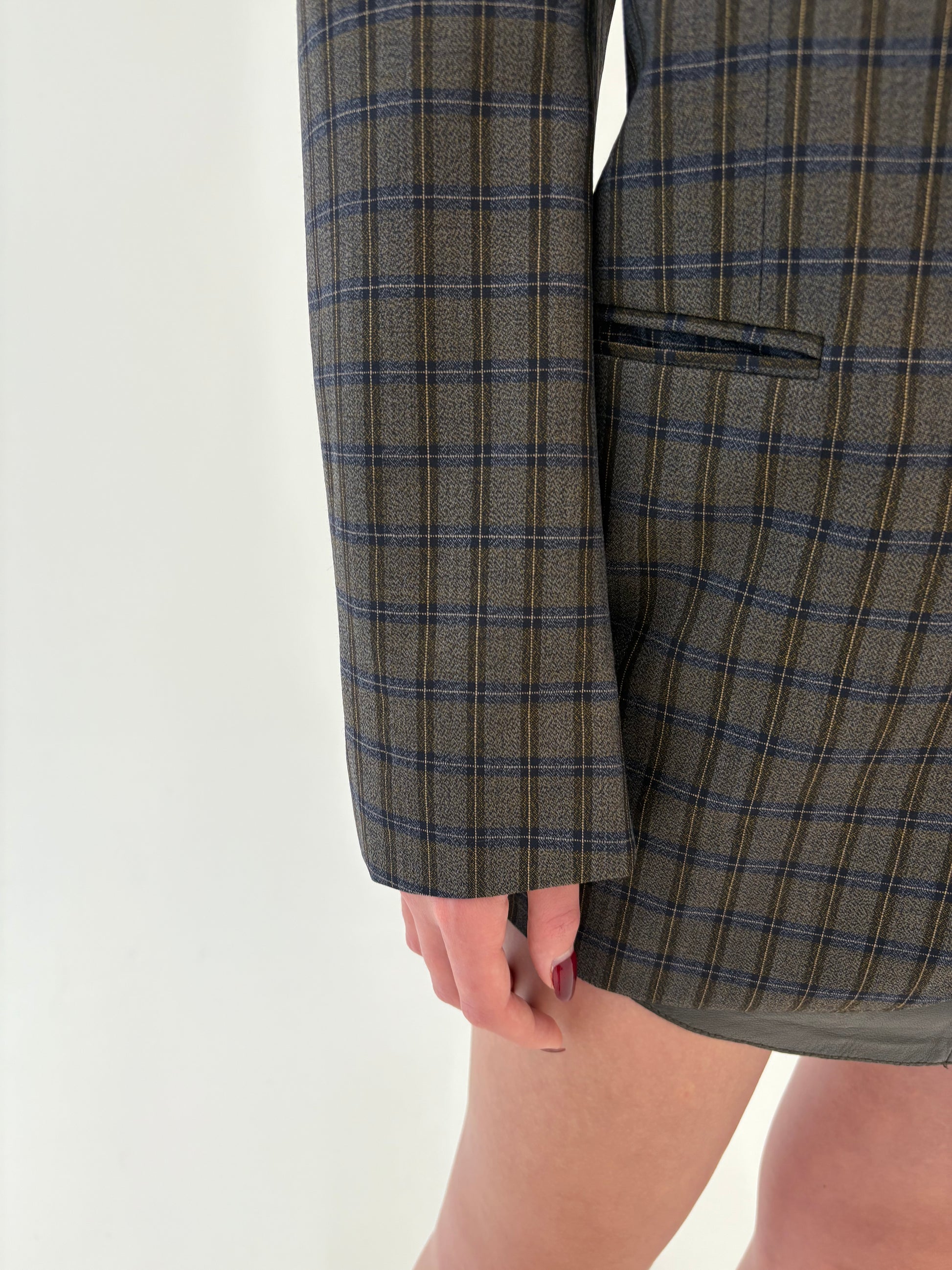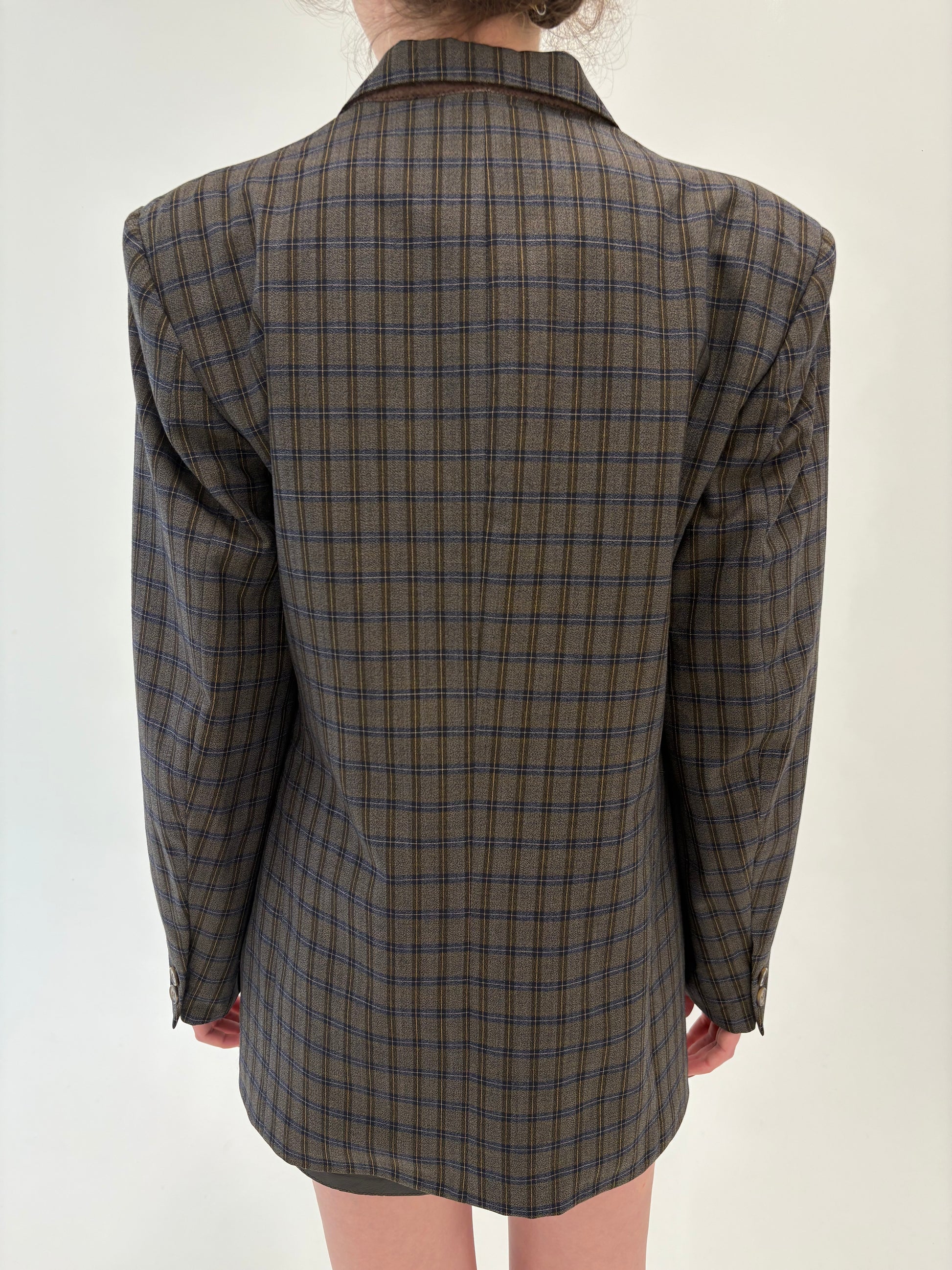 Sacou din la alura extrafina certificată chocolate brown în carouri