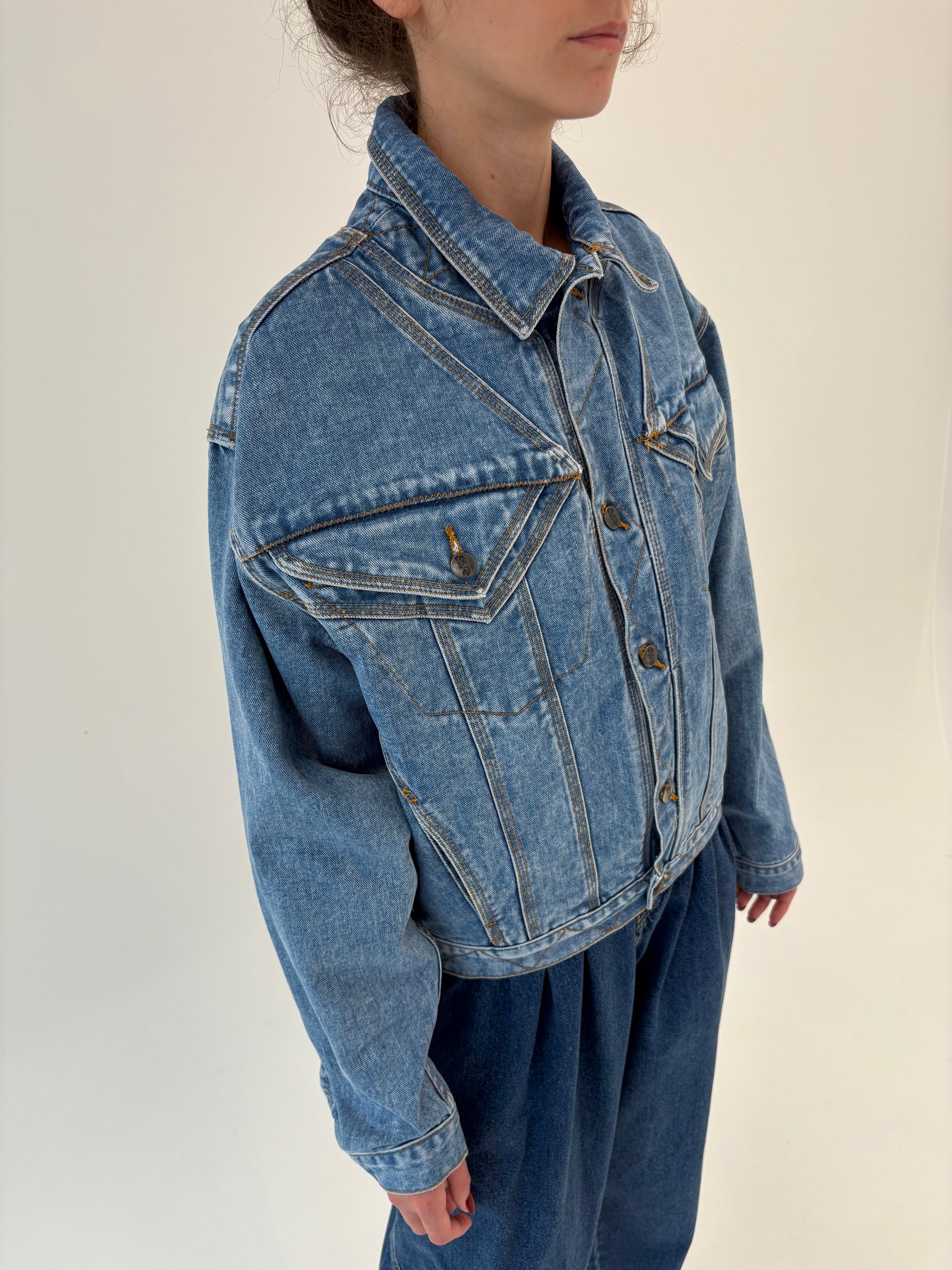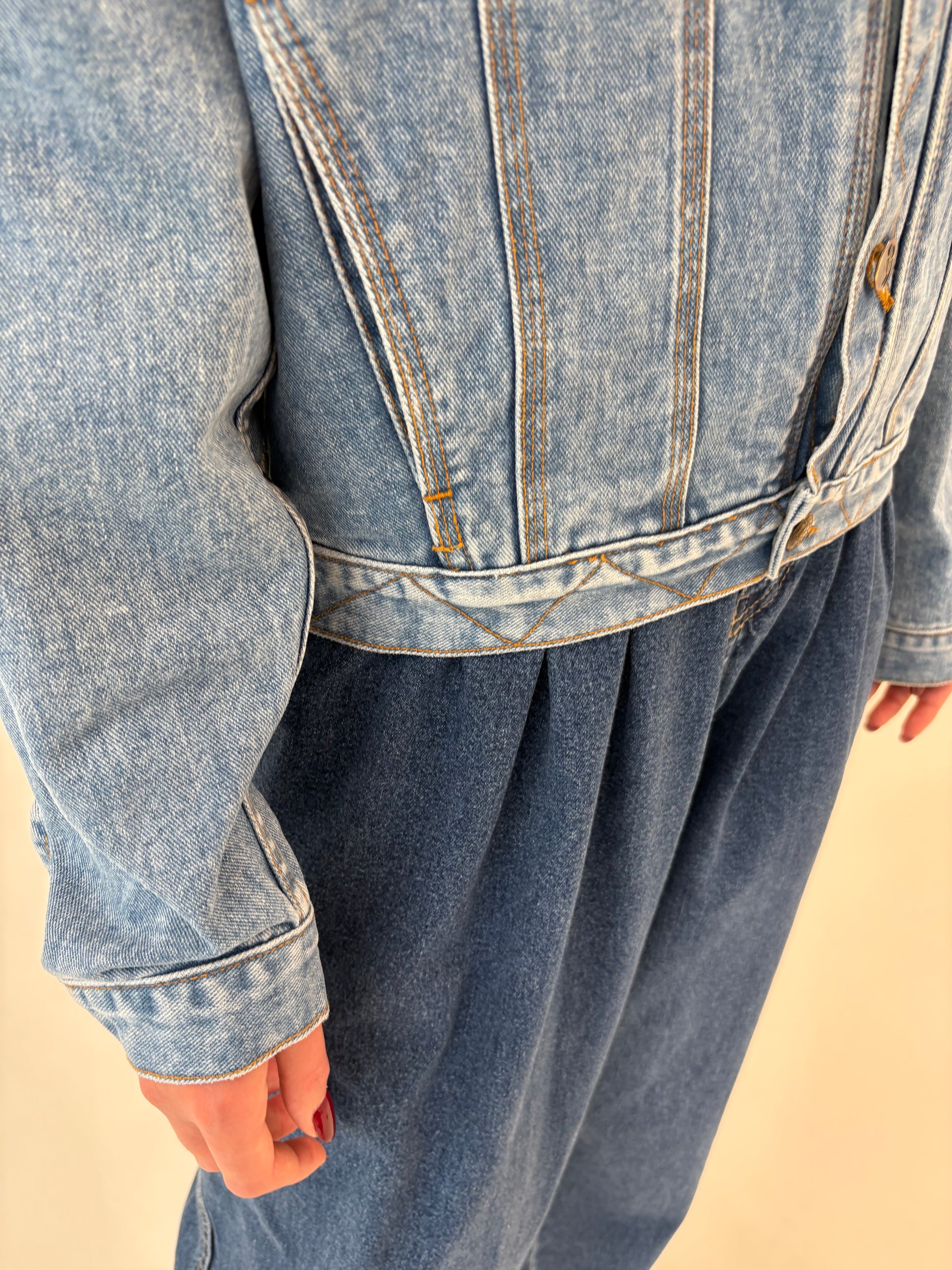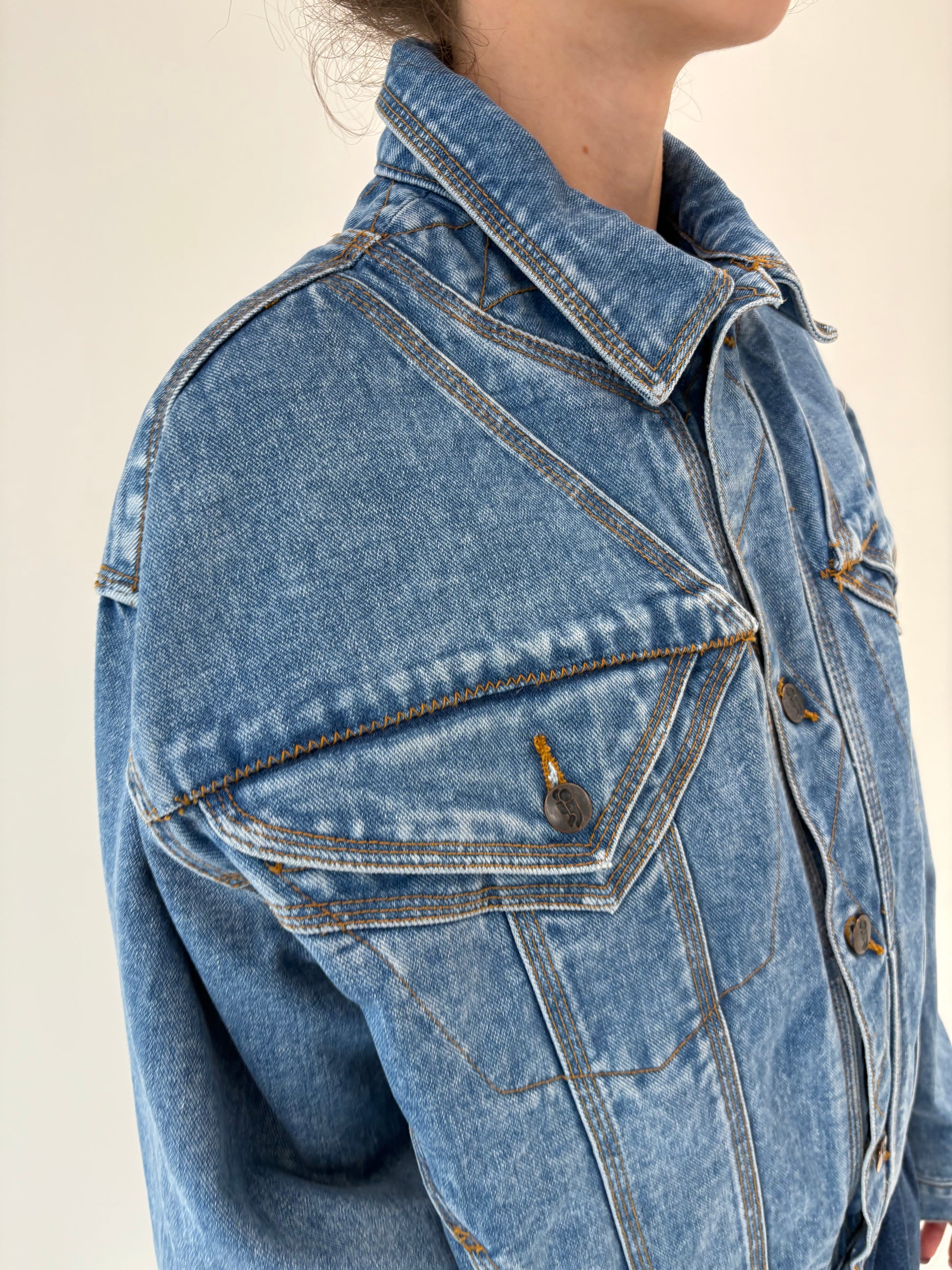 –Spălarea uniformă, cu efect stonewash dar nu extrem de decolorat, confirmă perioada de sfârșit de ani 80 anilor Nasturii metalici și ajustorii din talie sunt în linie cu modelele de atunci