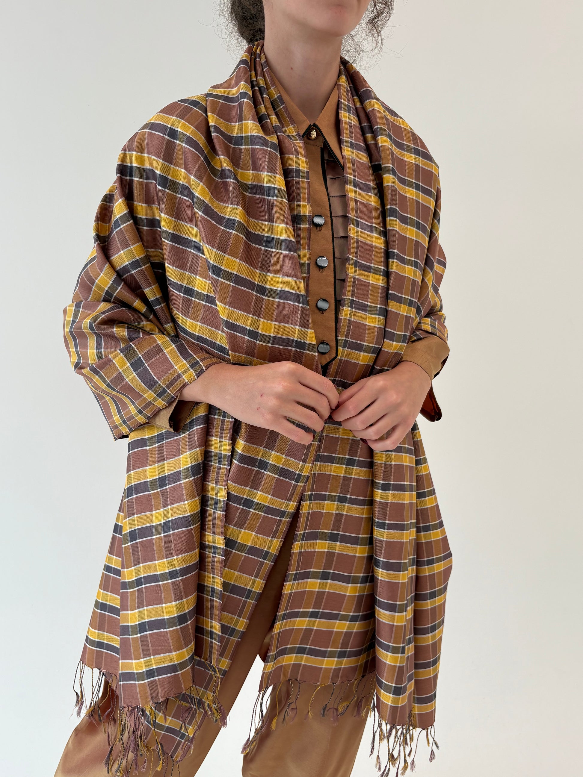Eșarfă XXL din țesătură de mătase naturală hand made în carouri