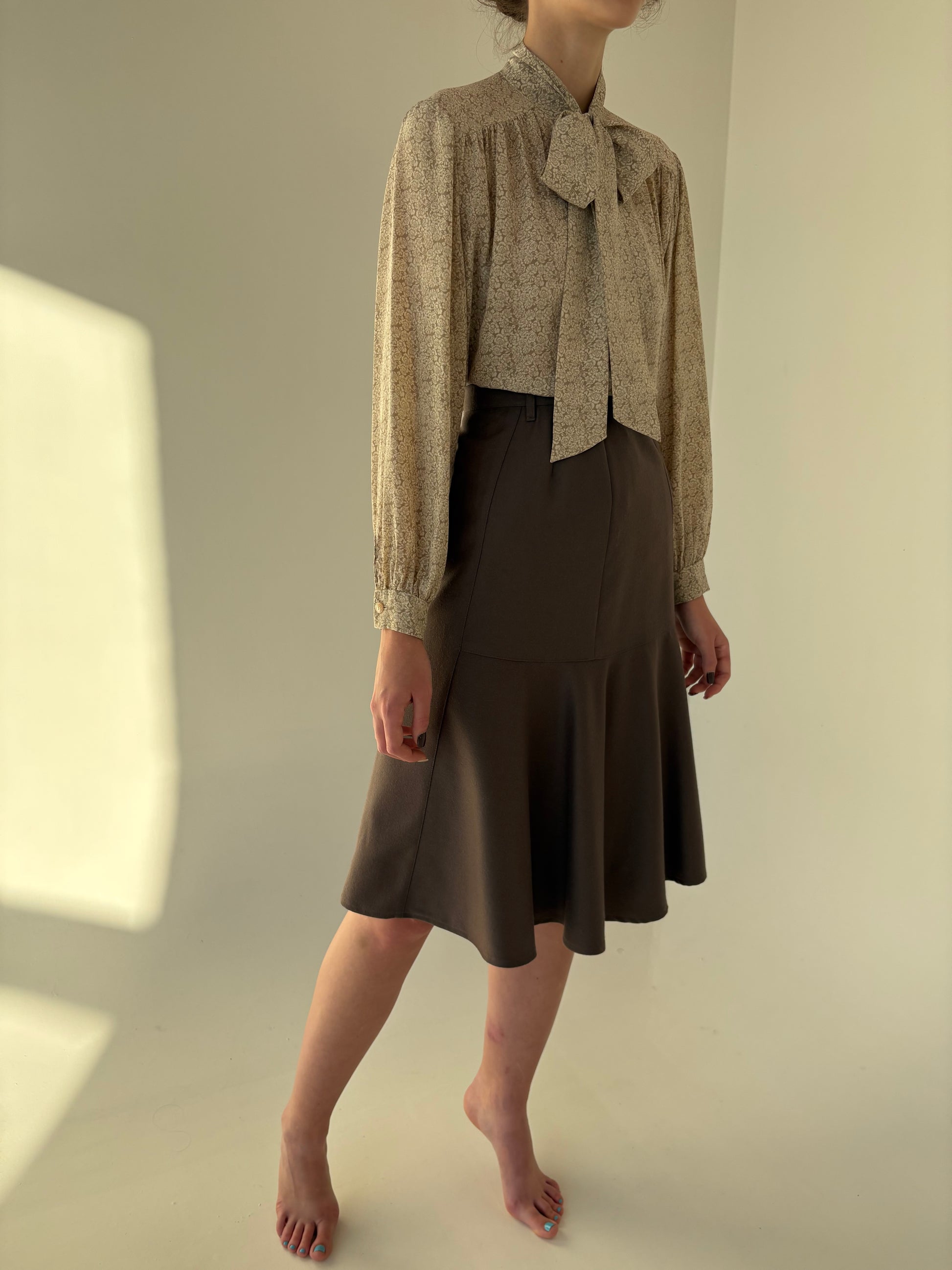 Fustă mermaid taupe din lana extrafina cu talie ultra înaltă