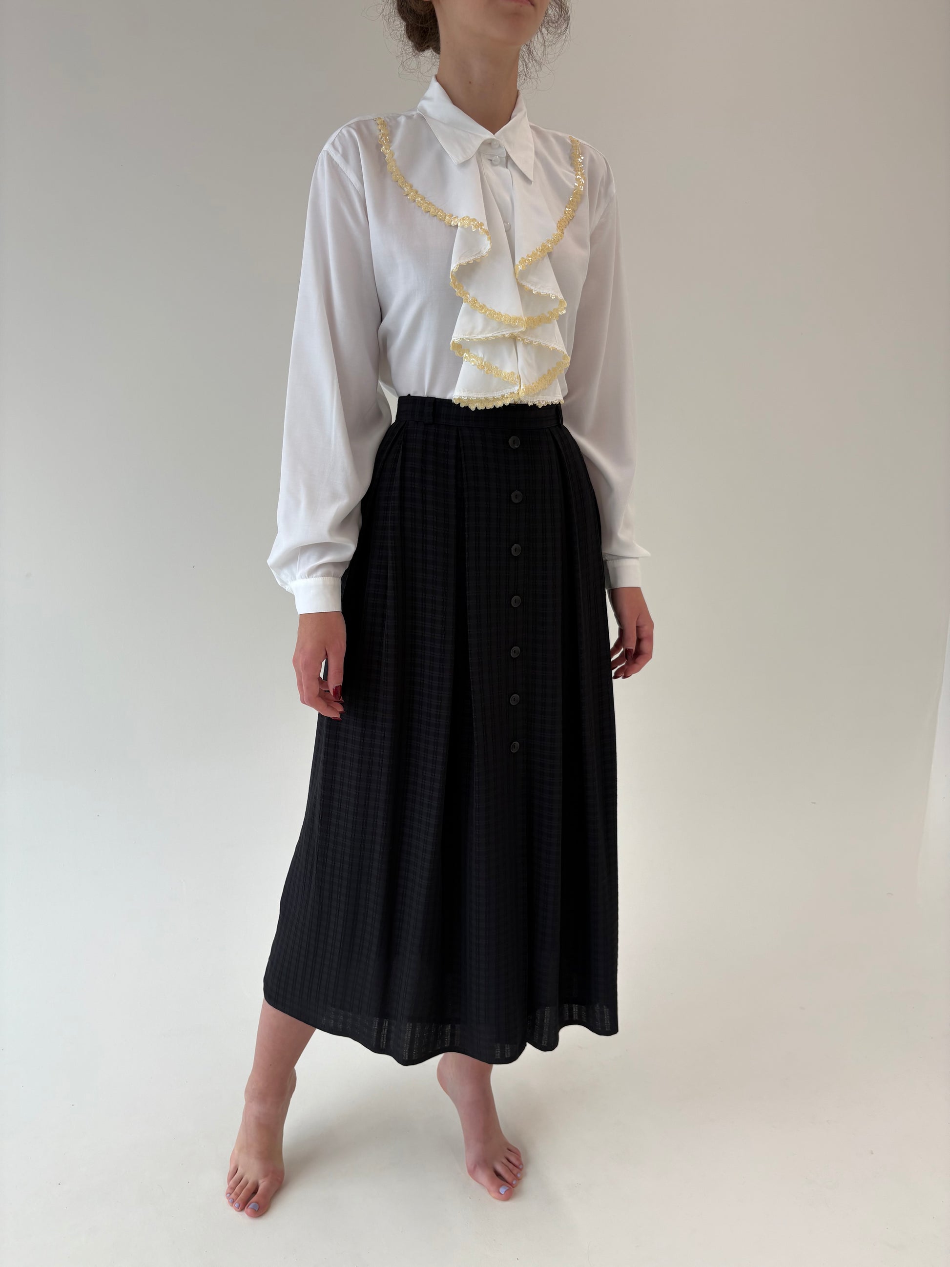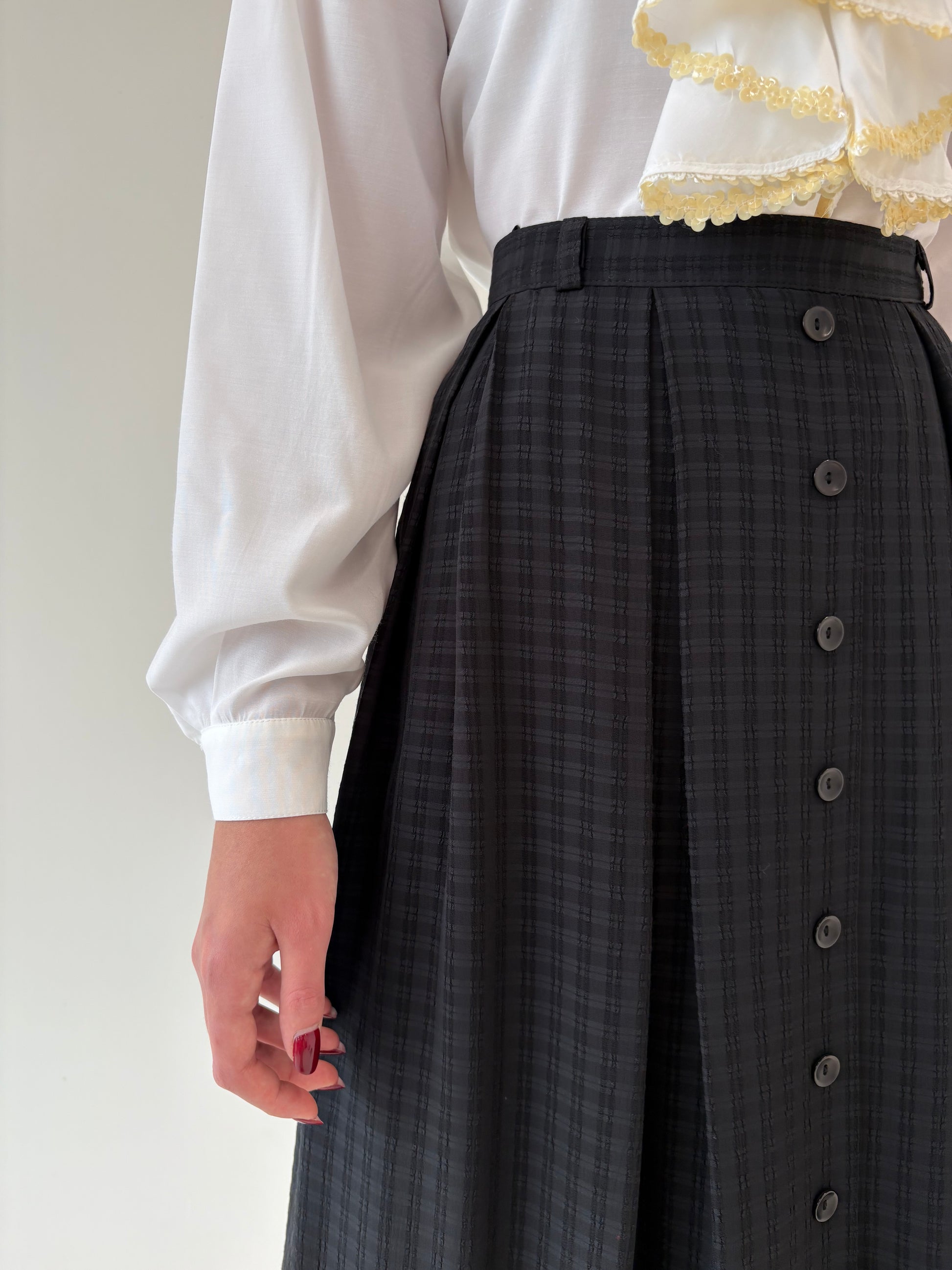 Fustă neagră extrem de amplă ușor satinata și texturată de la zi la seară