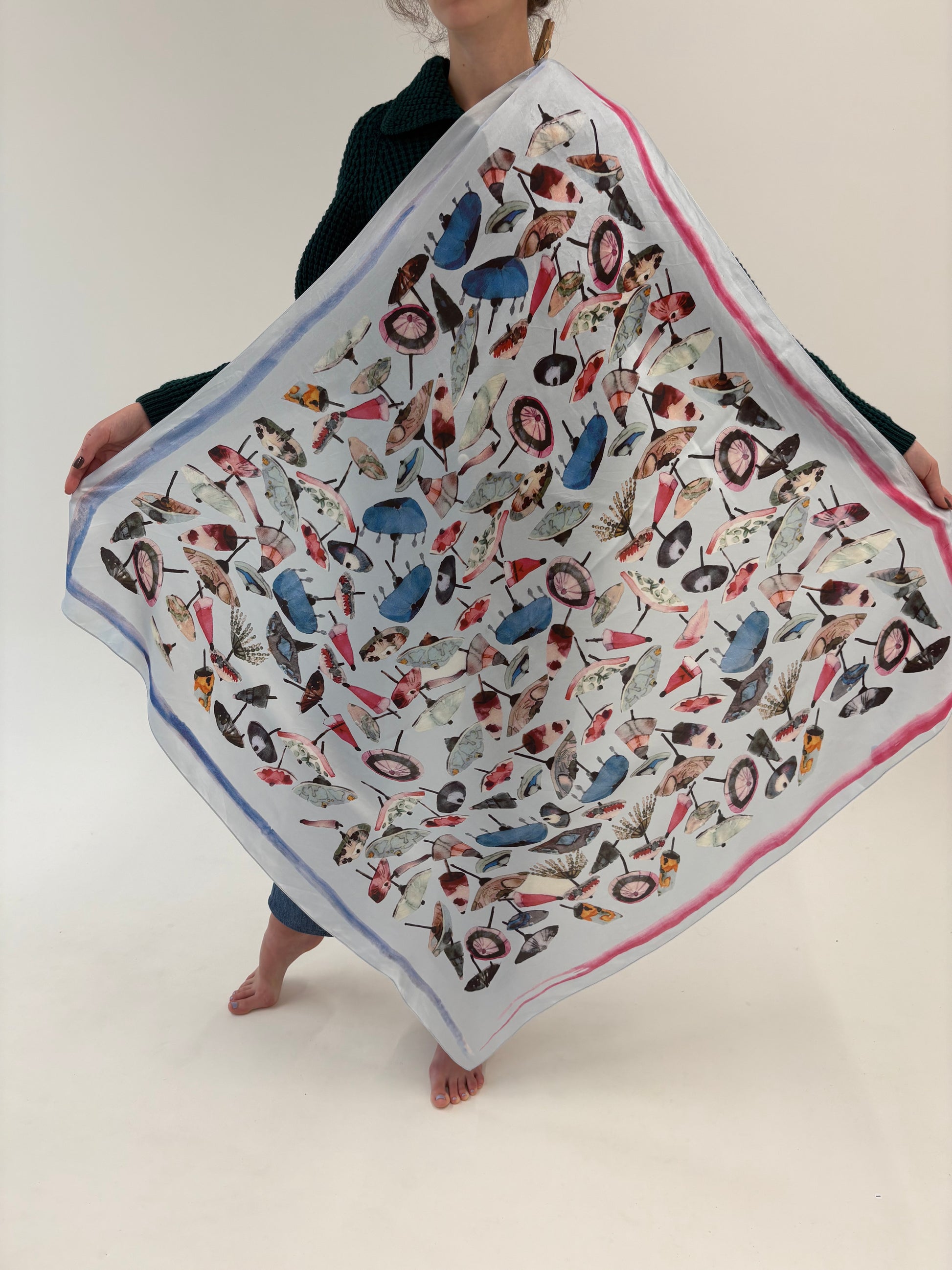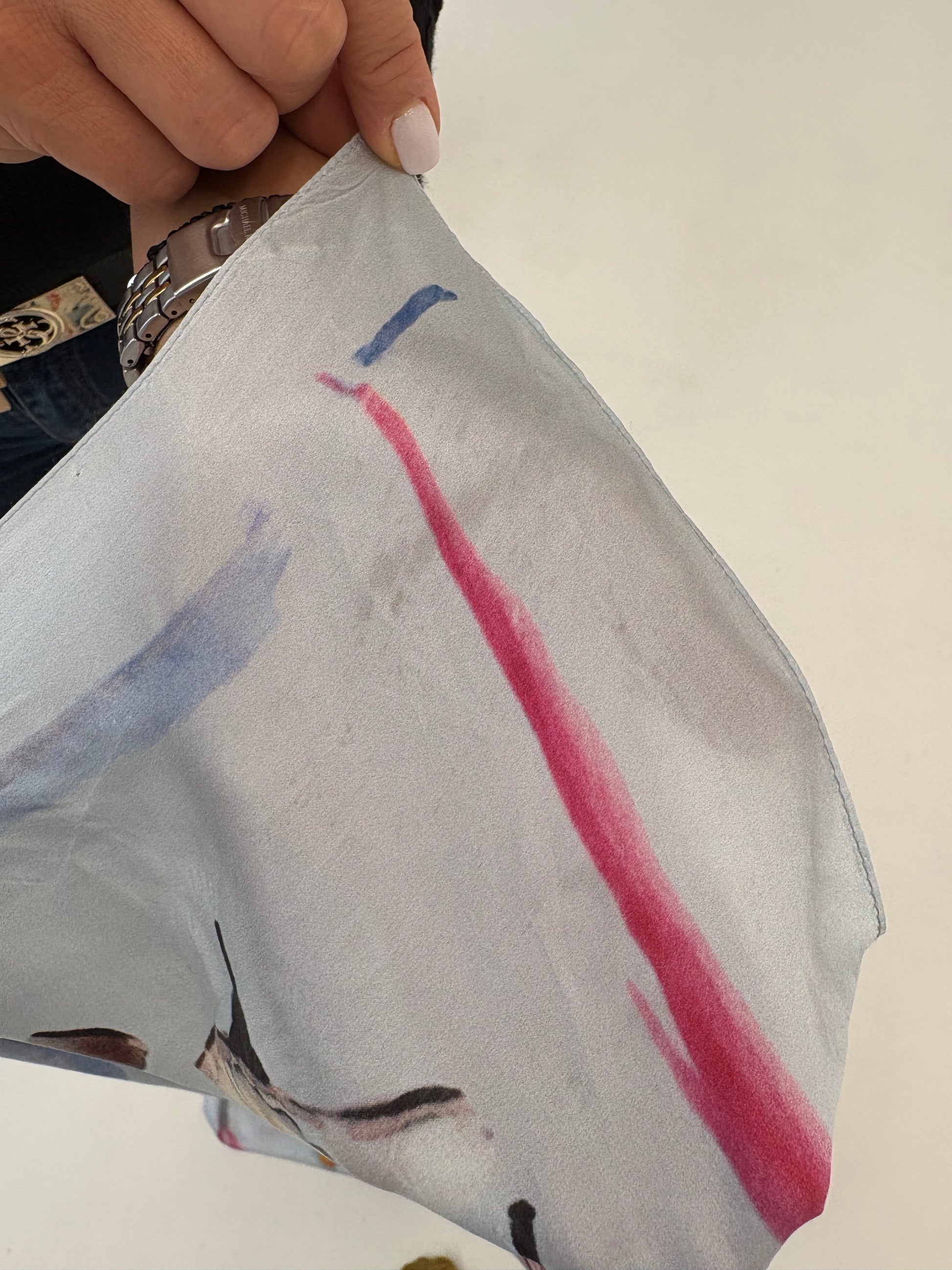 Eșarfă XXXL baby blue cu print superb din mătase naturală