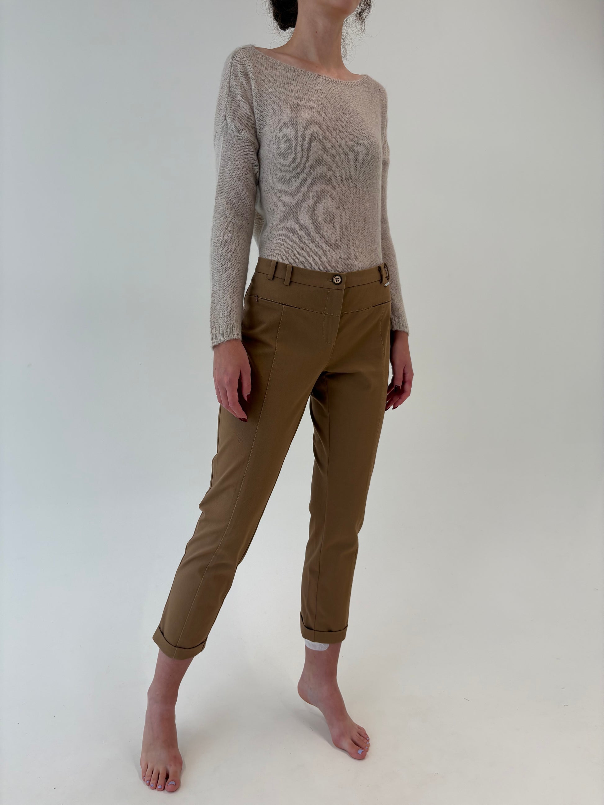 Pantaloni Camel Marella by Max Mara din gabardină de bumbac ușor strech