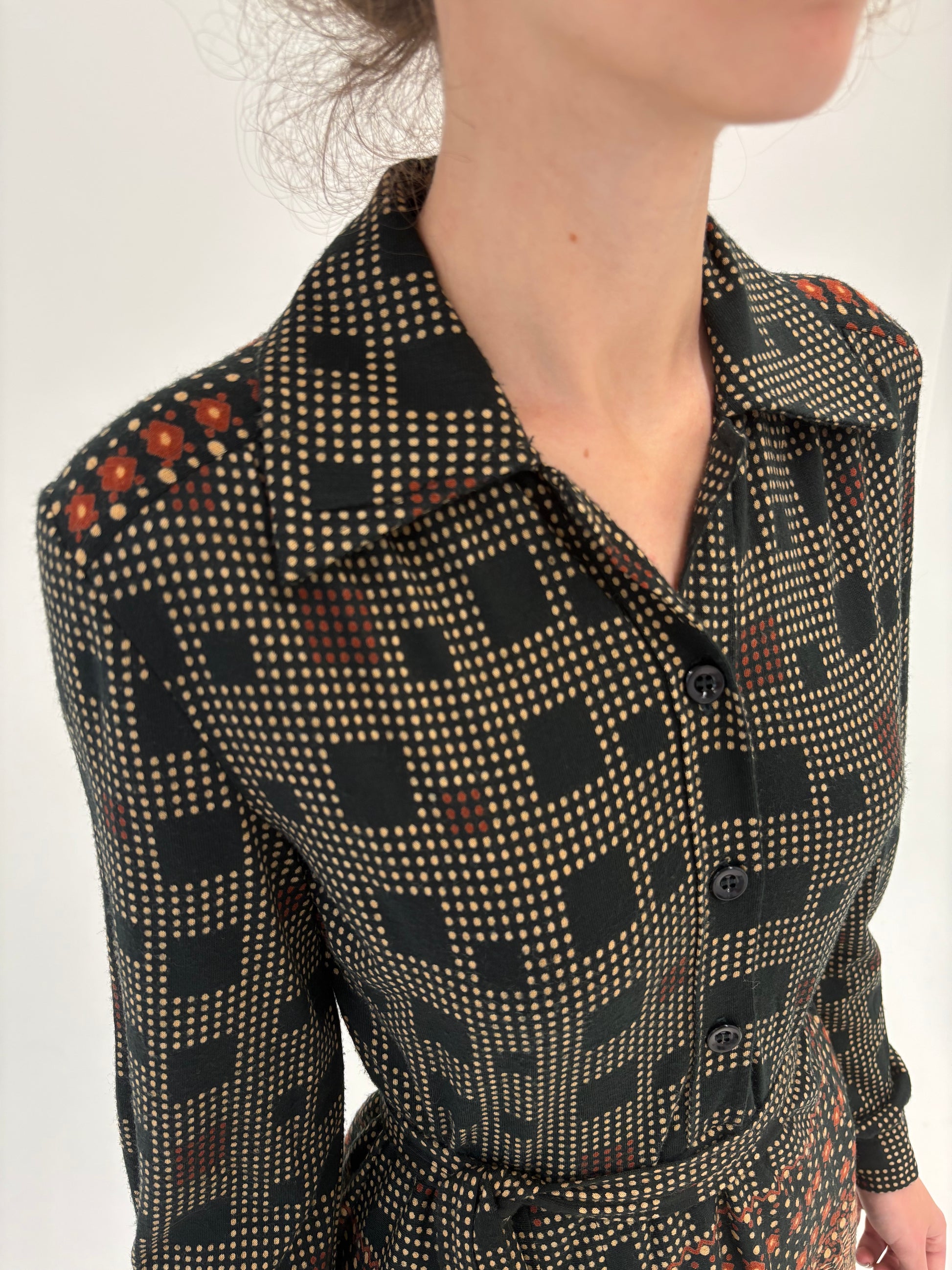 Rochie vintage cu fustă plisată din lanita extrafina și talie marcată reglabilă