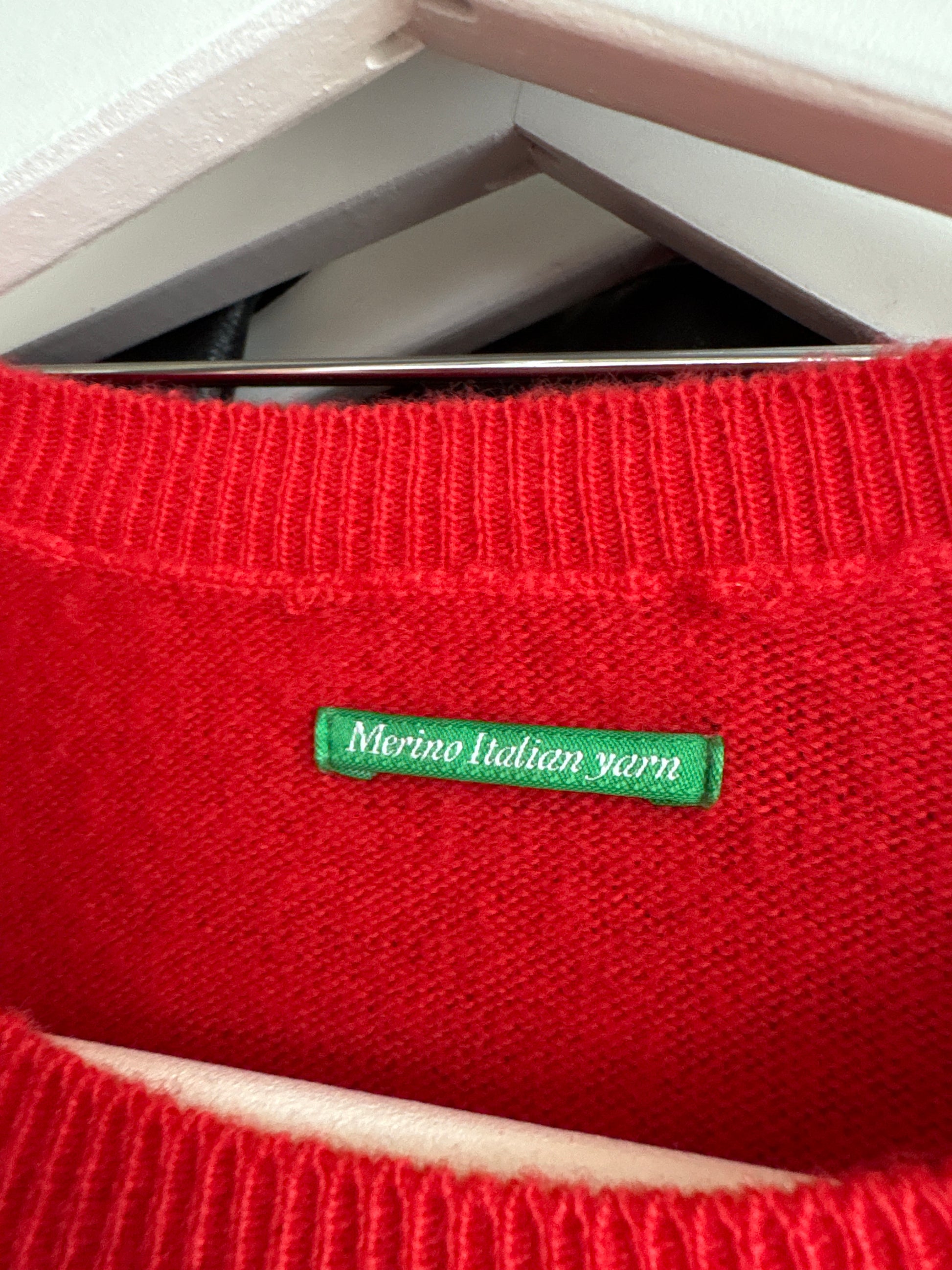 Pulover coral red din lana merino extrafina de gramaj mare tall