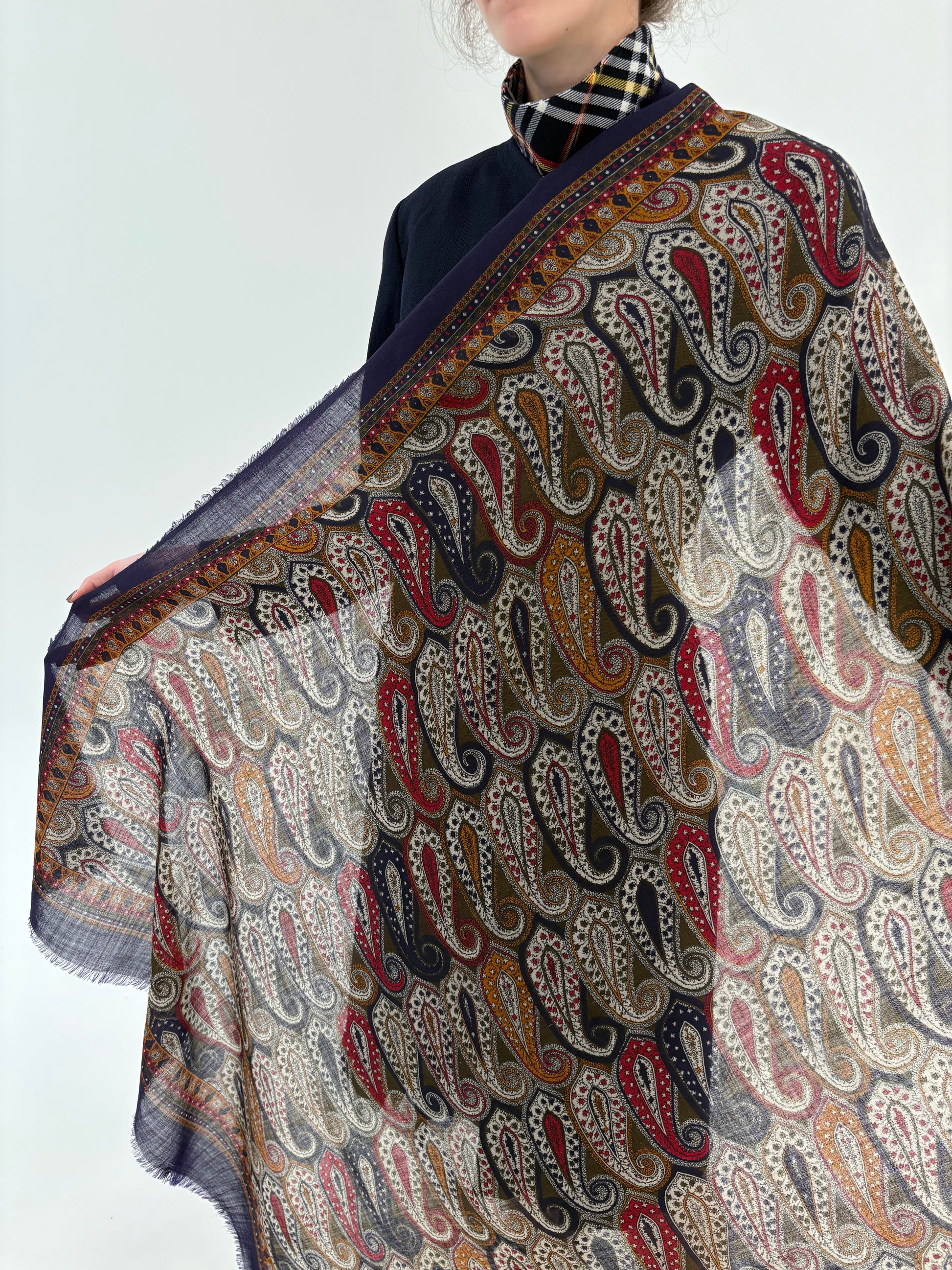 Eșarfă XXXXL din lana extrafina cu print paisley