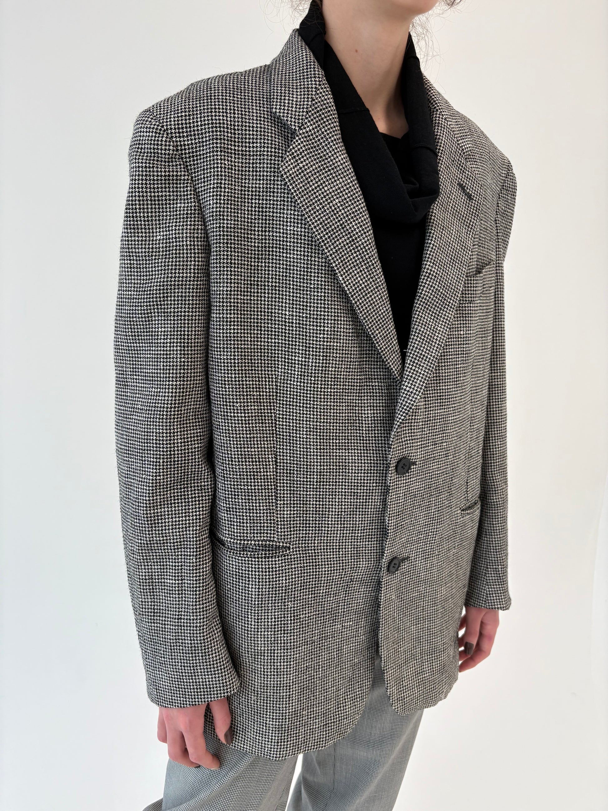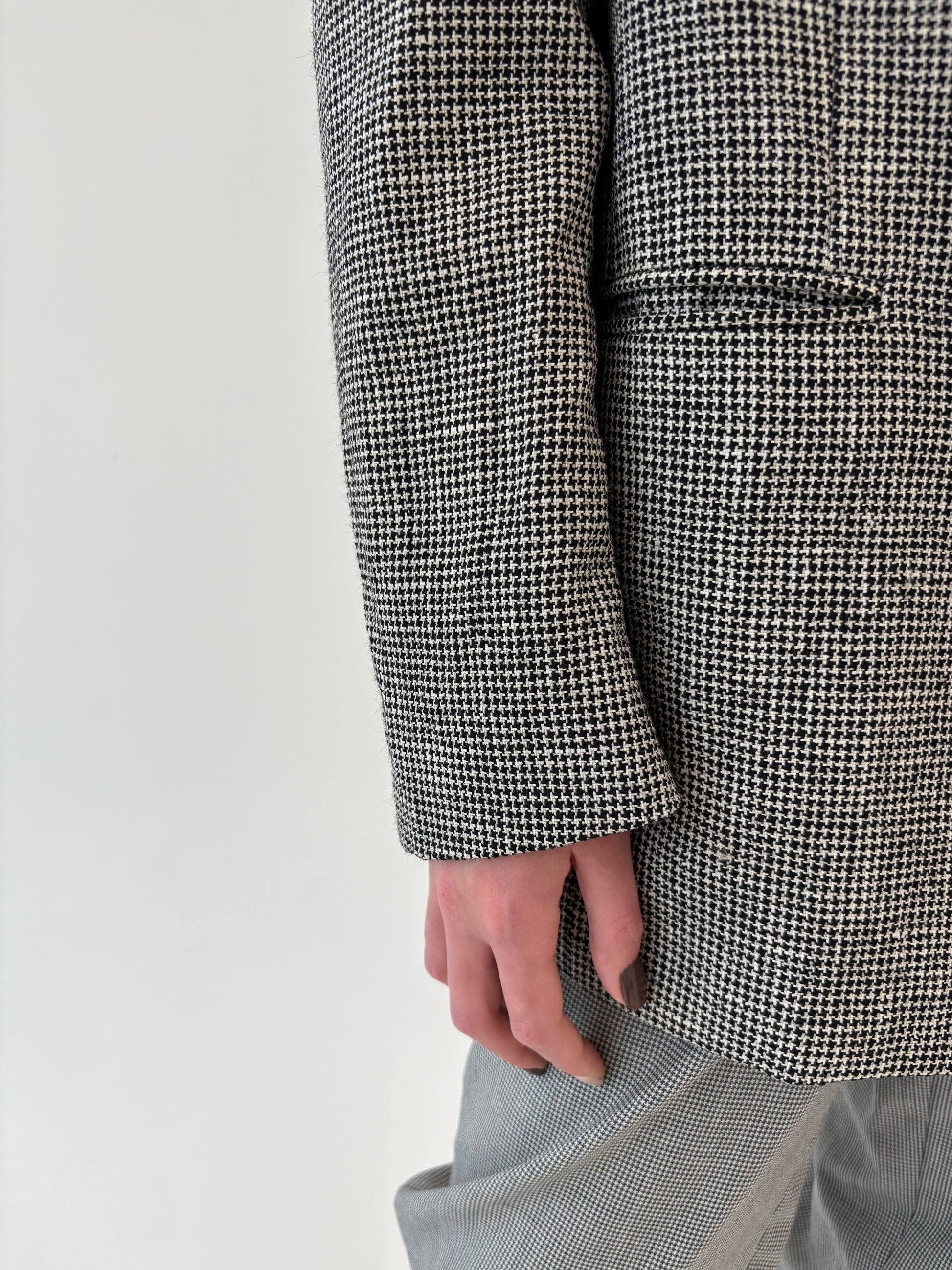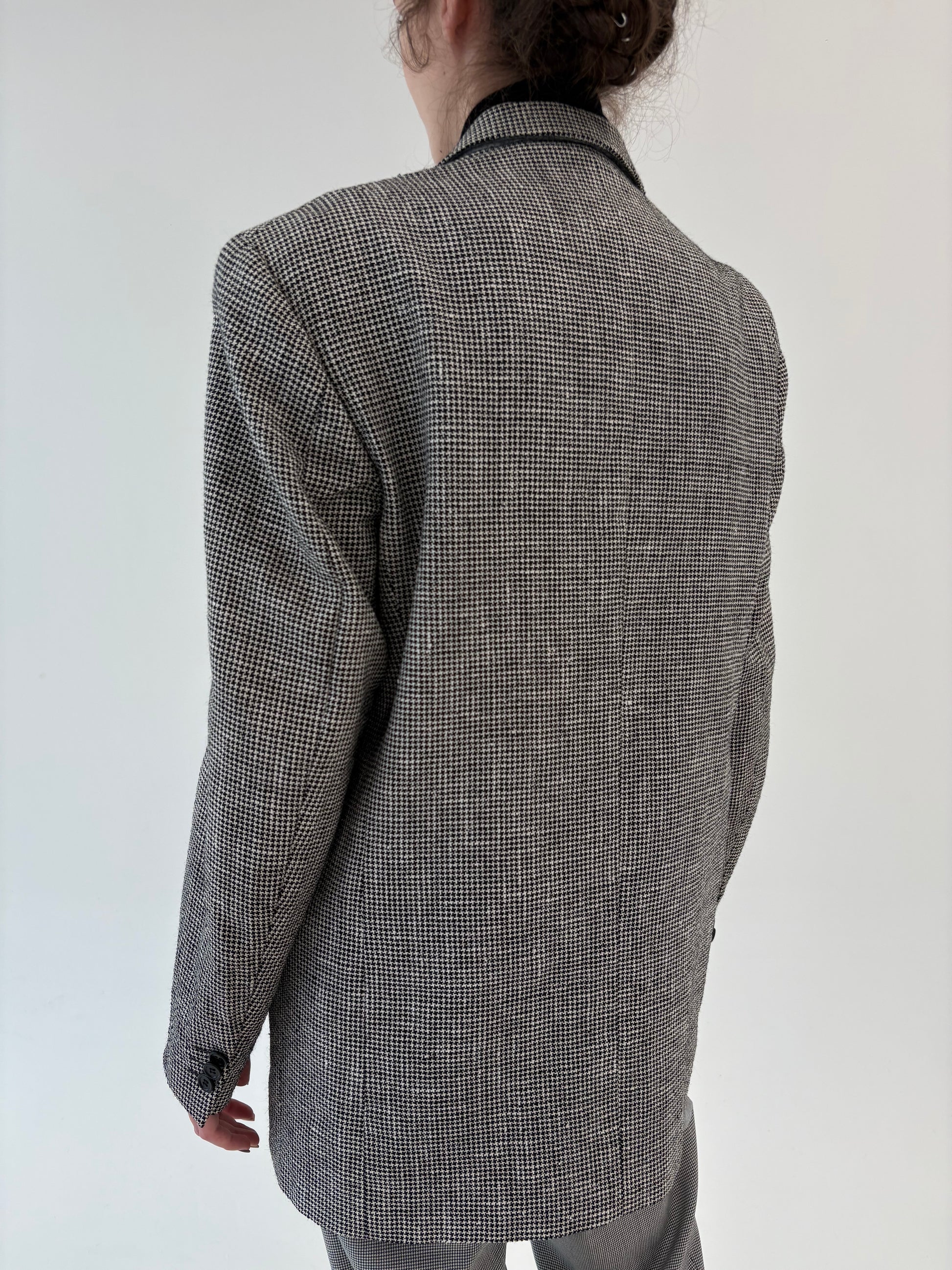 Sacou vintage din stofă texturată cu print alb negru de lana ușor structurată