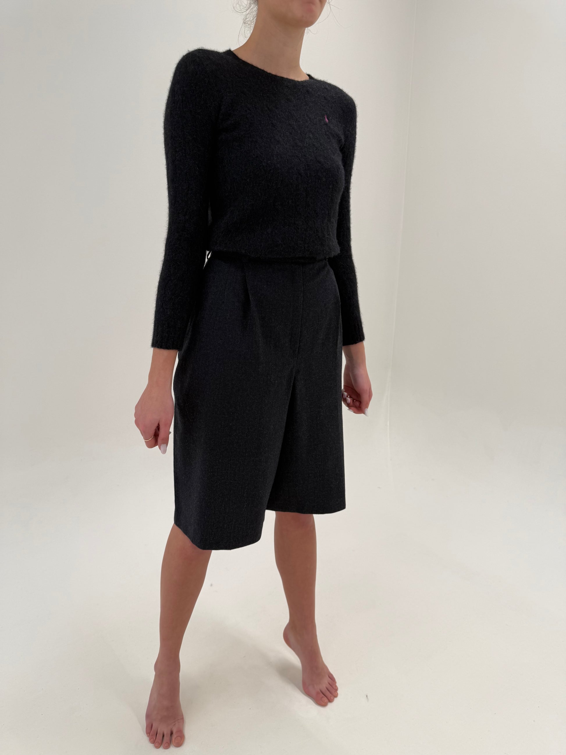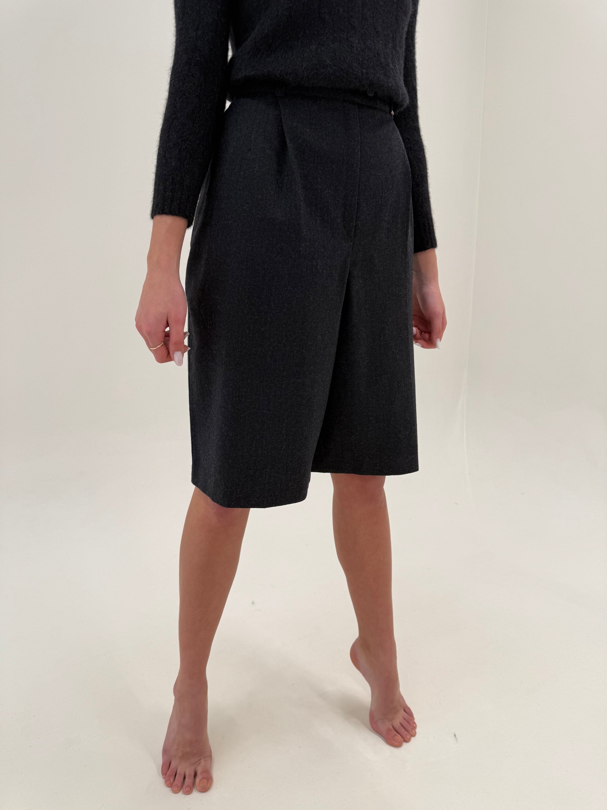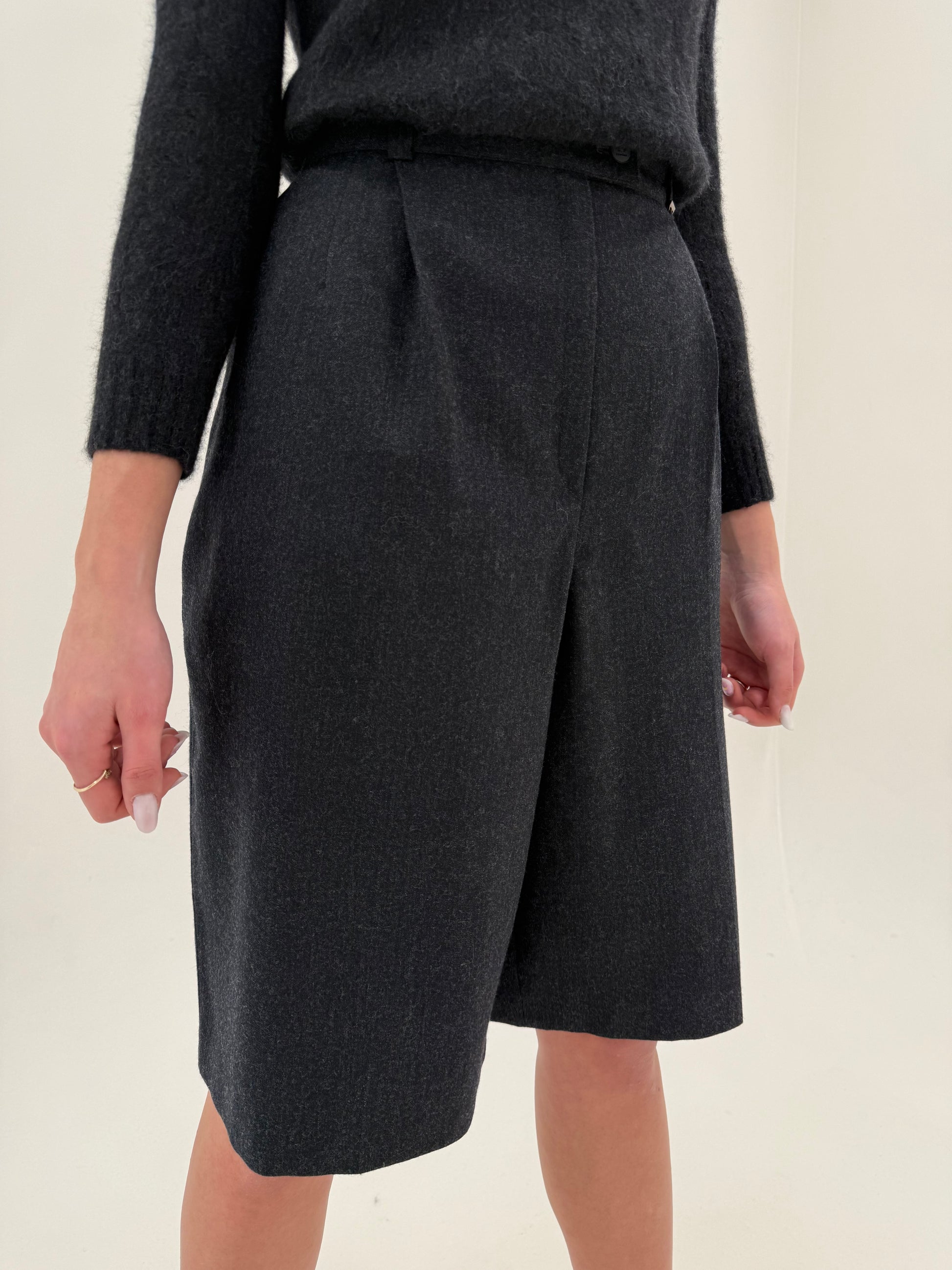 Pantaloni cu talie ultra înaltă și pense din lana extrafina certificată