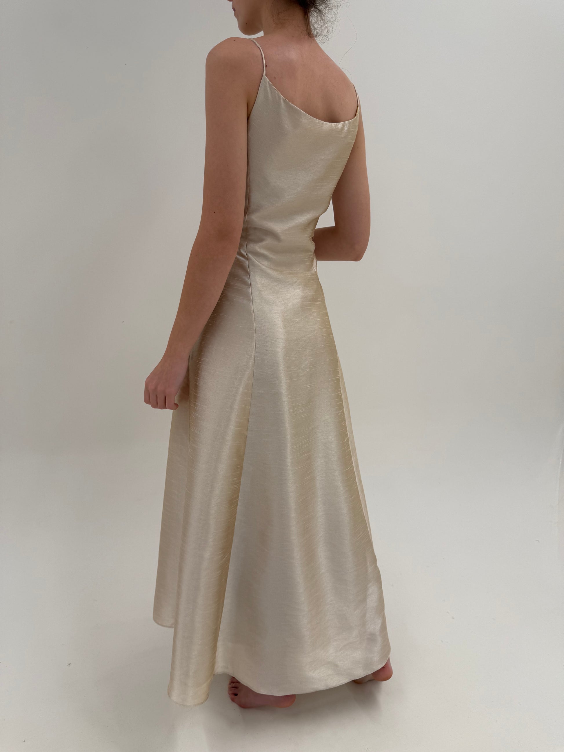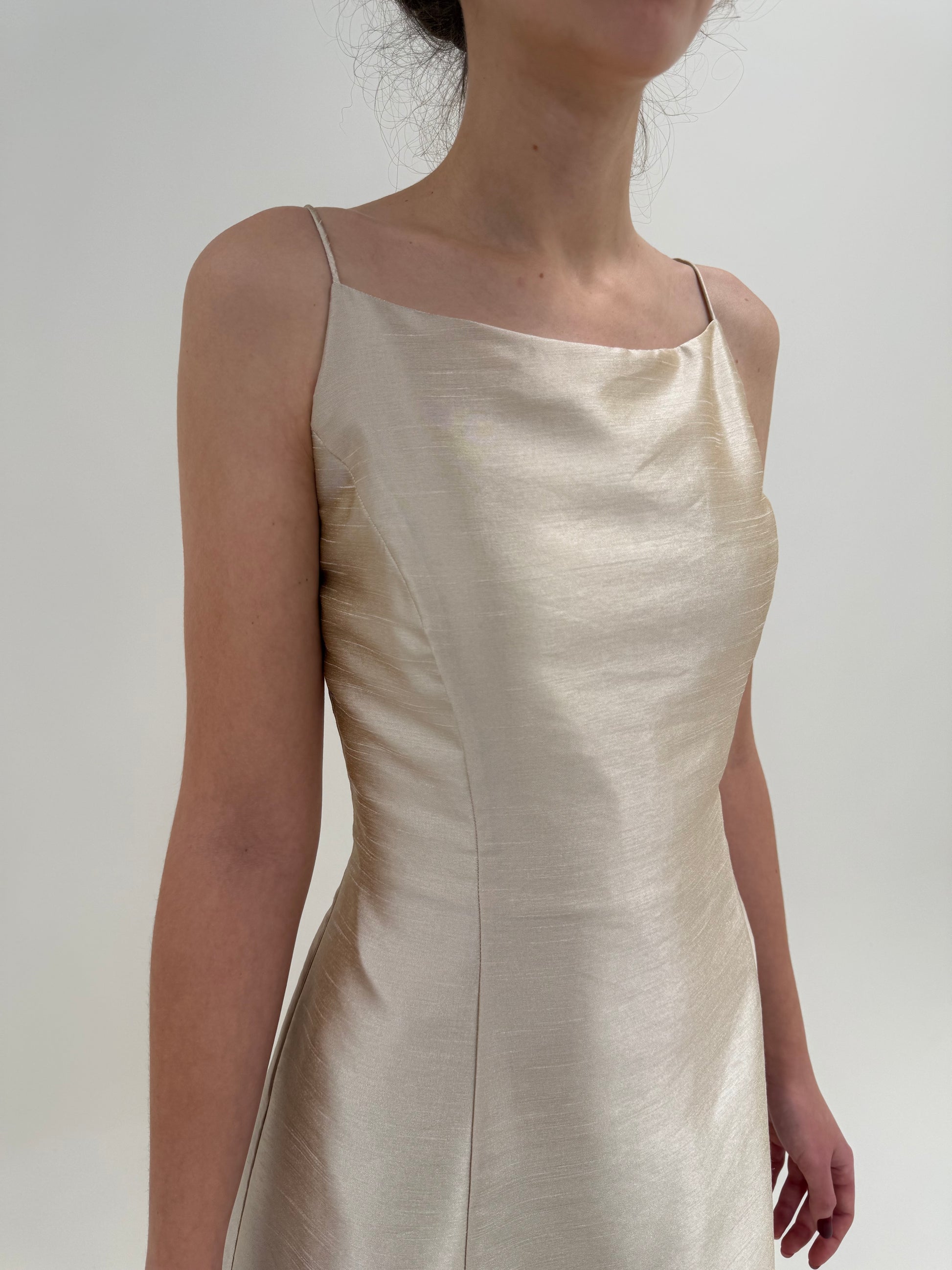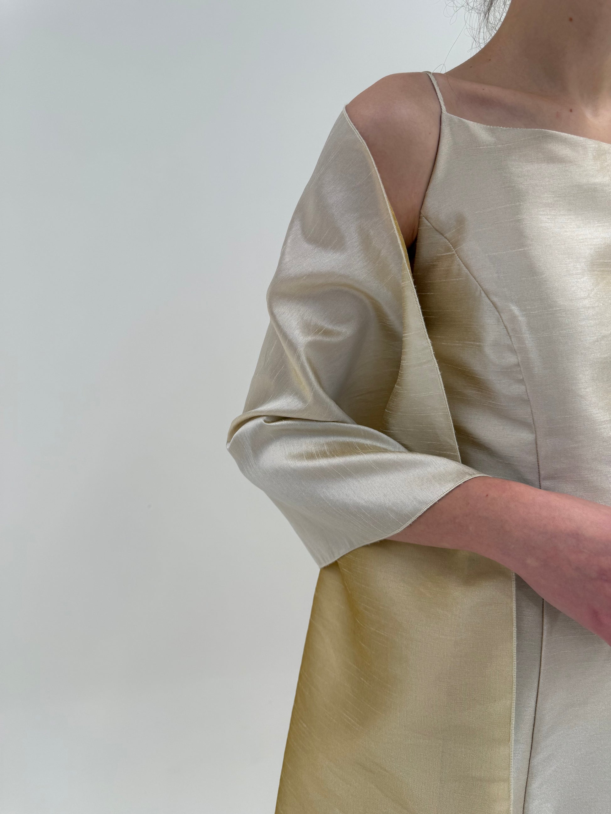Rochie vintage maxi perlata din shantung cu stole inclus asortat