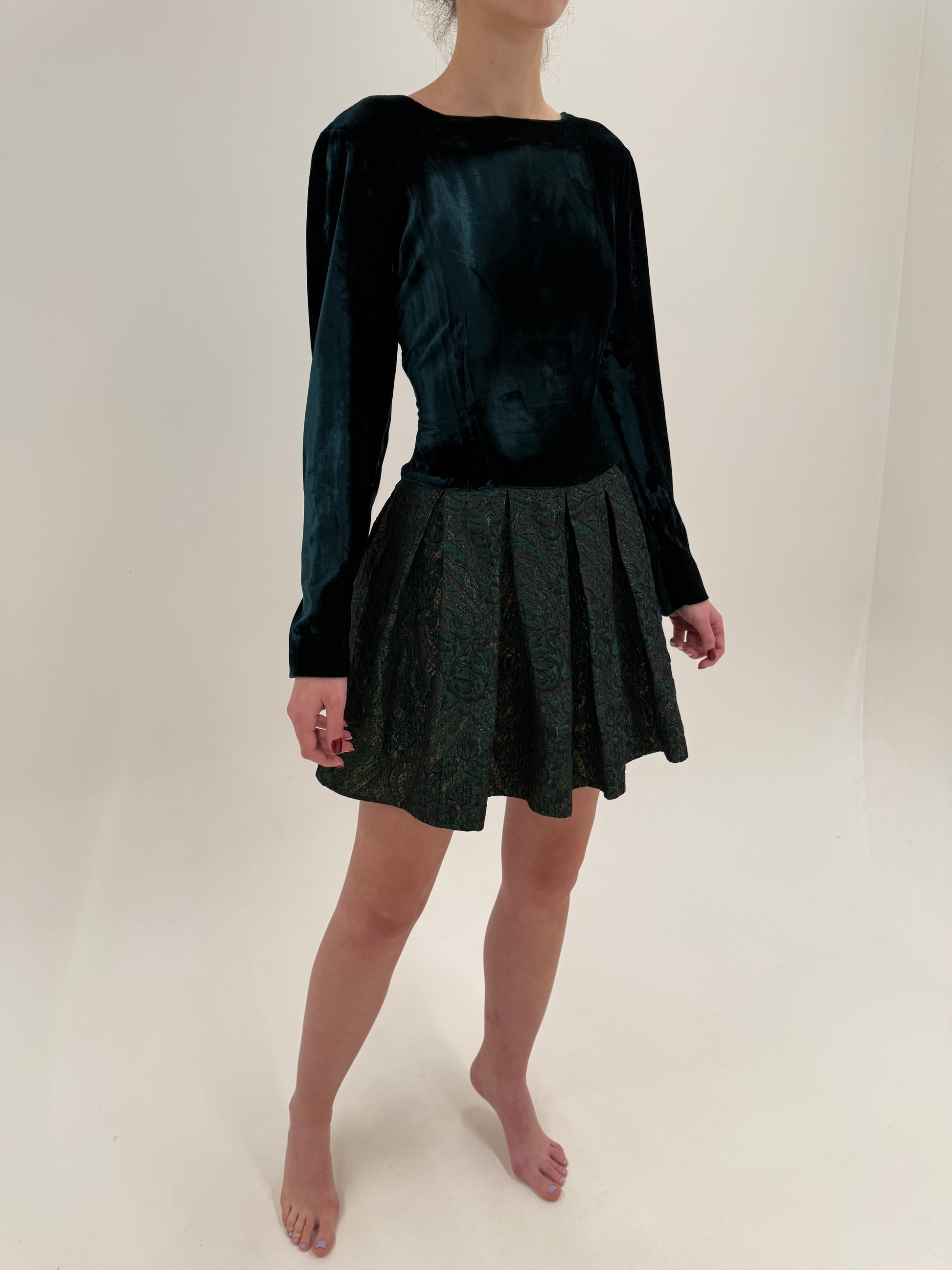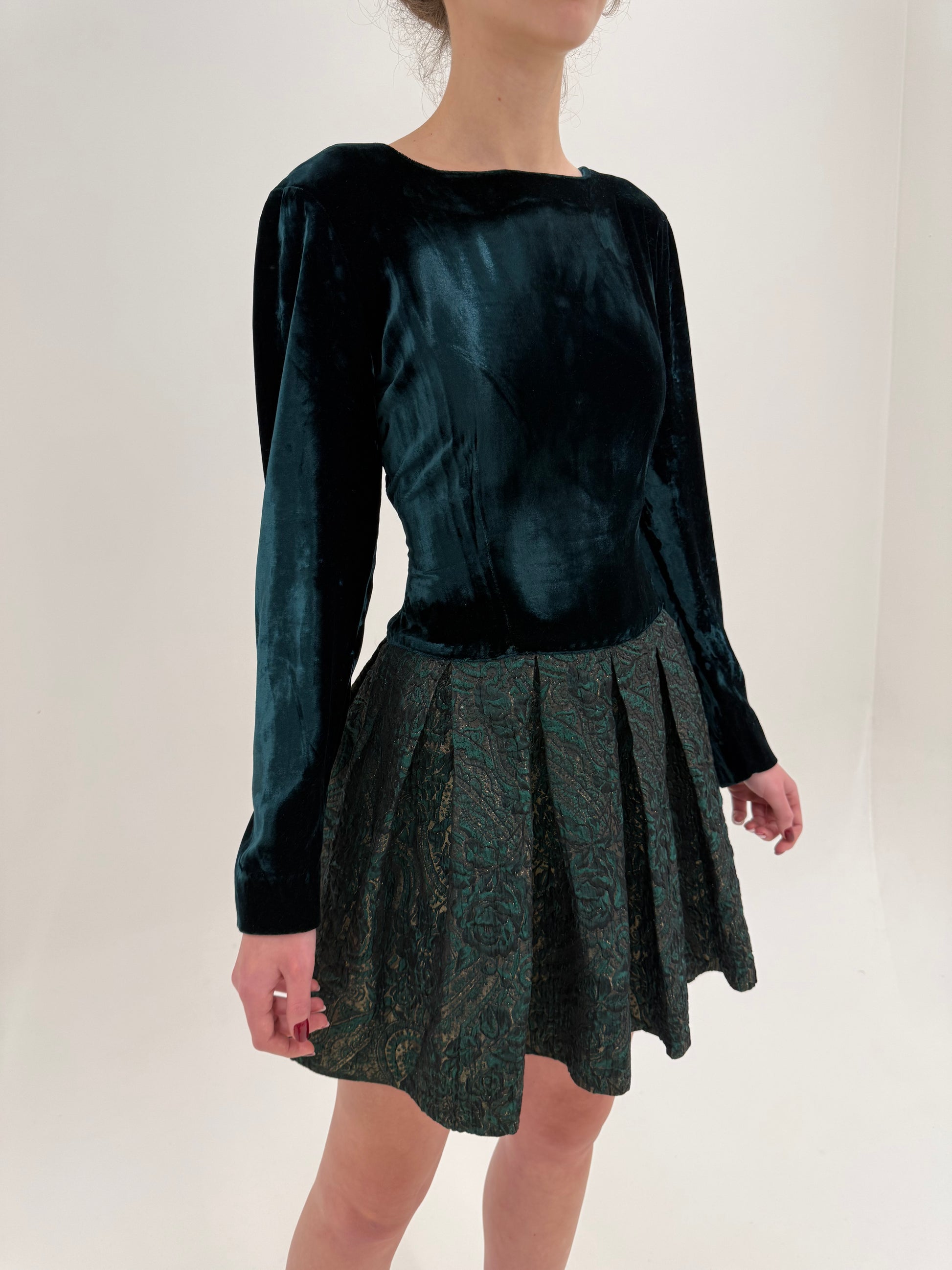 Rochie Max Mara de cocktail din catifea și brocart dark green