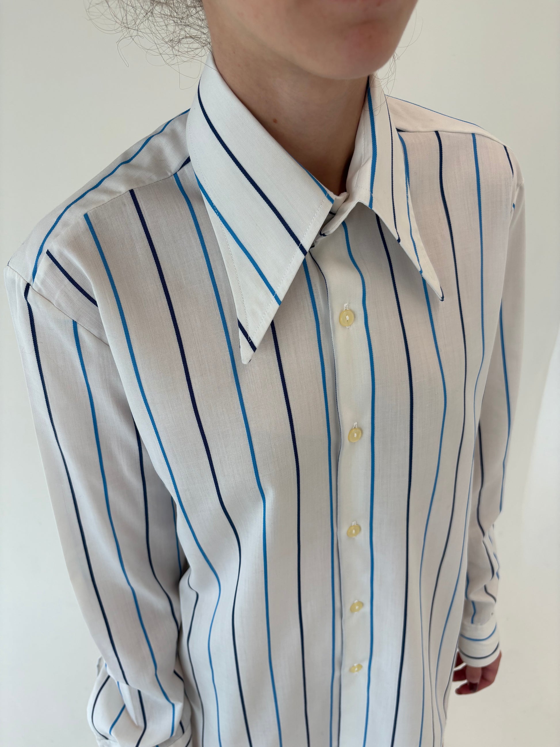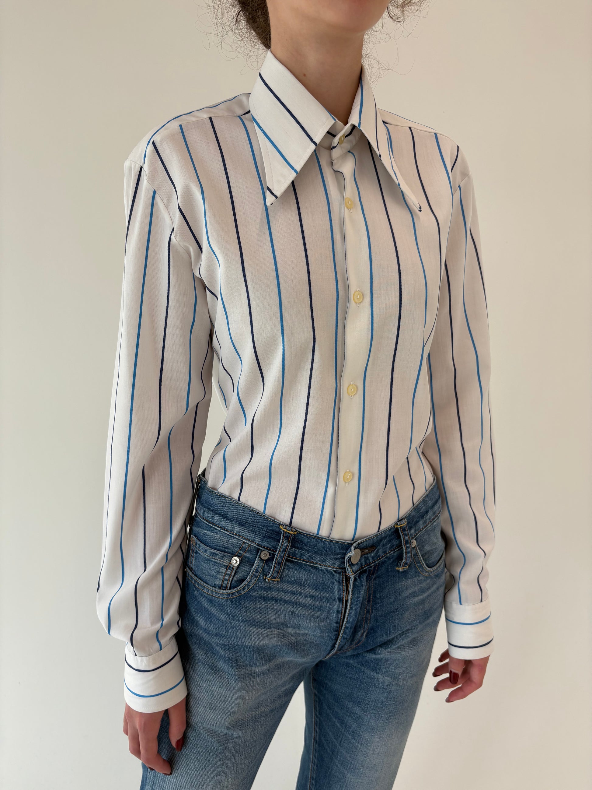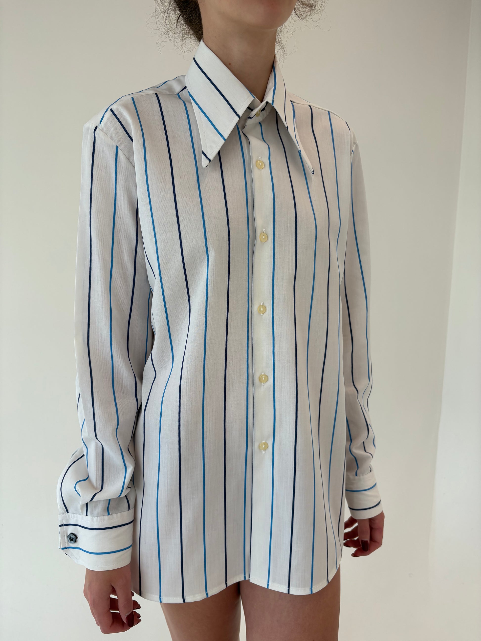 Cămașa vintage din poplin de bumbac cu butoni incluși și dungi verticale