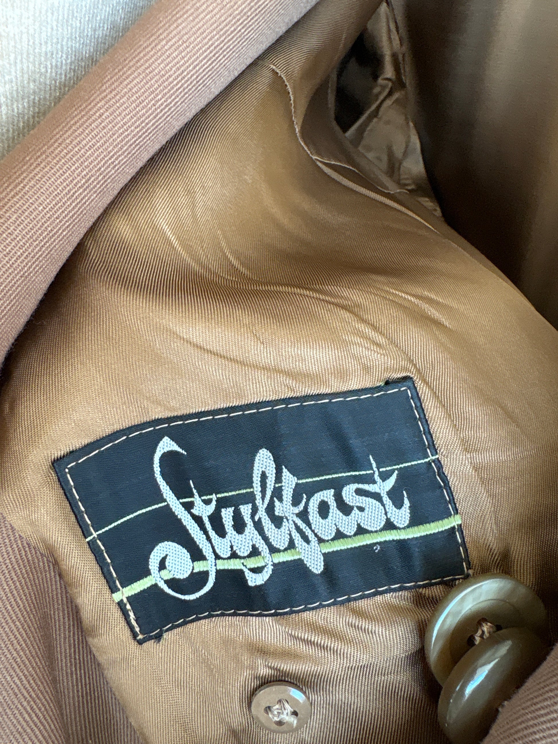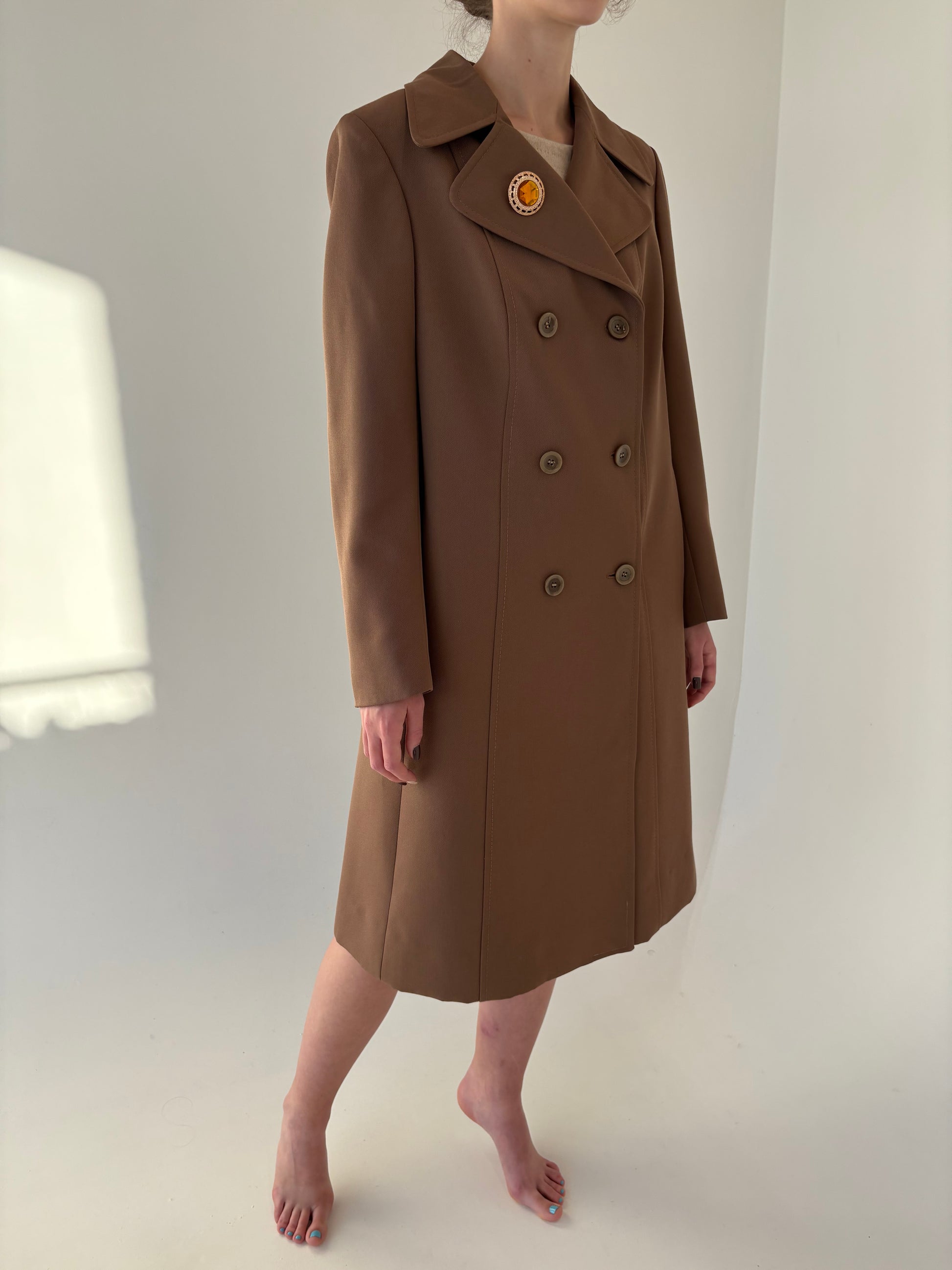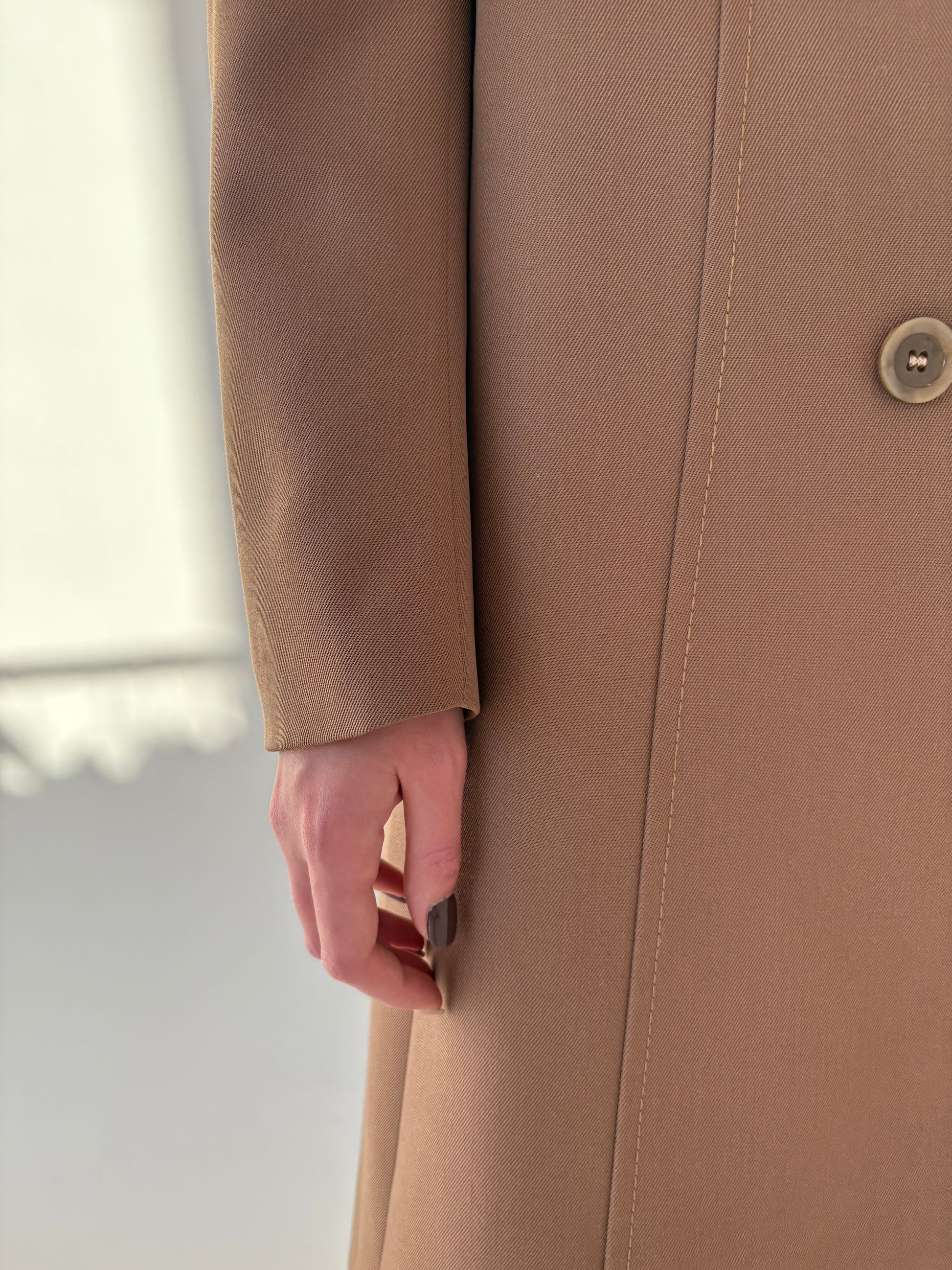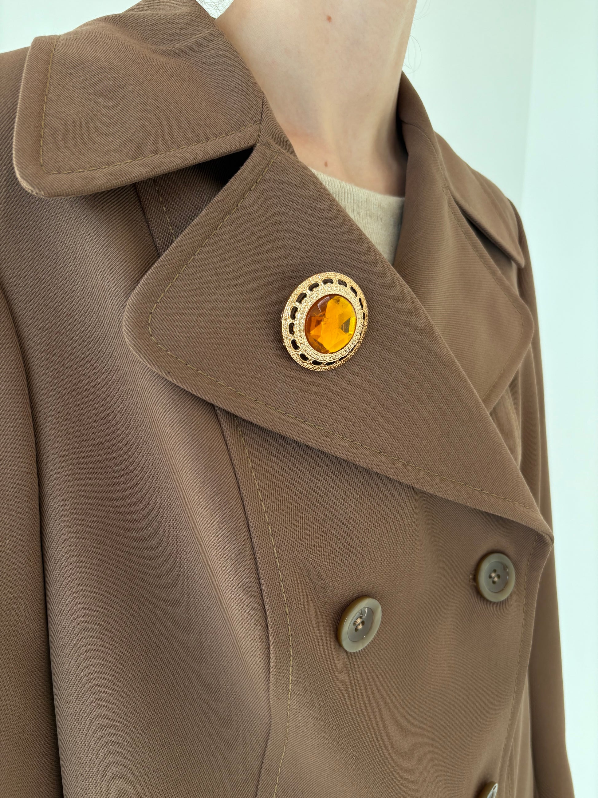 Palton vintage camel din stofă structurată de lana cu închidere dublă