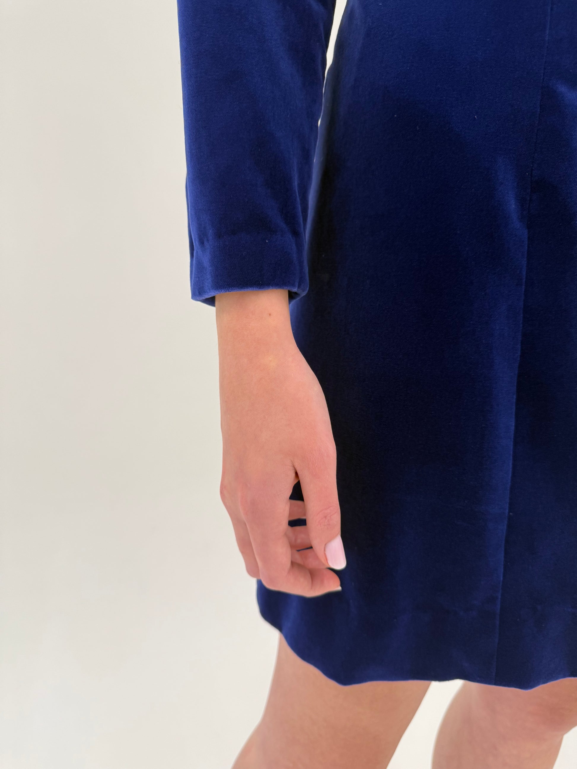 Rochie old vintage anii 60 albastru cerneală din catifea excepțională