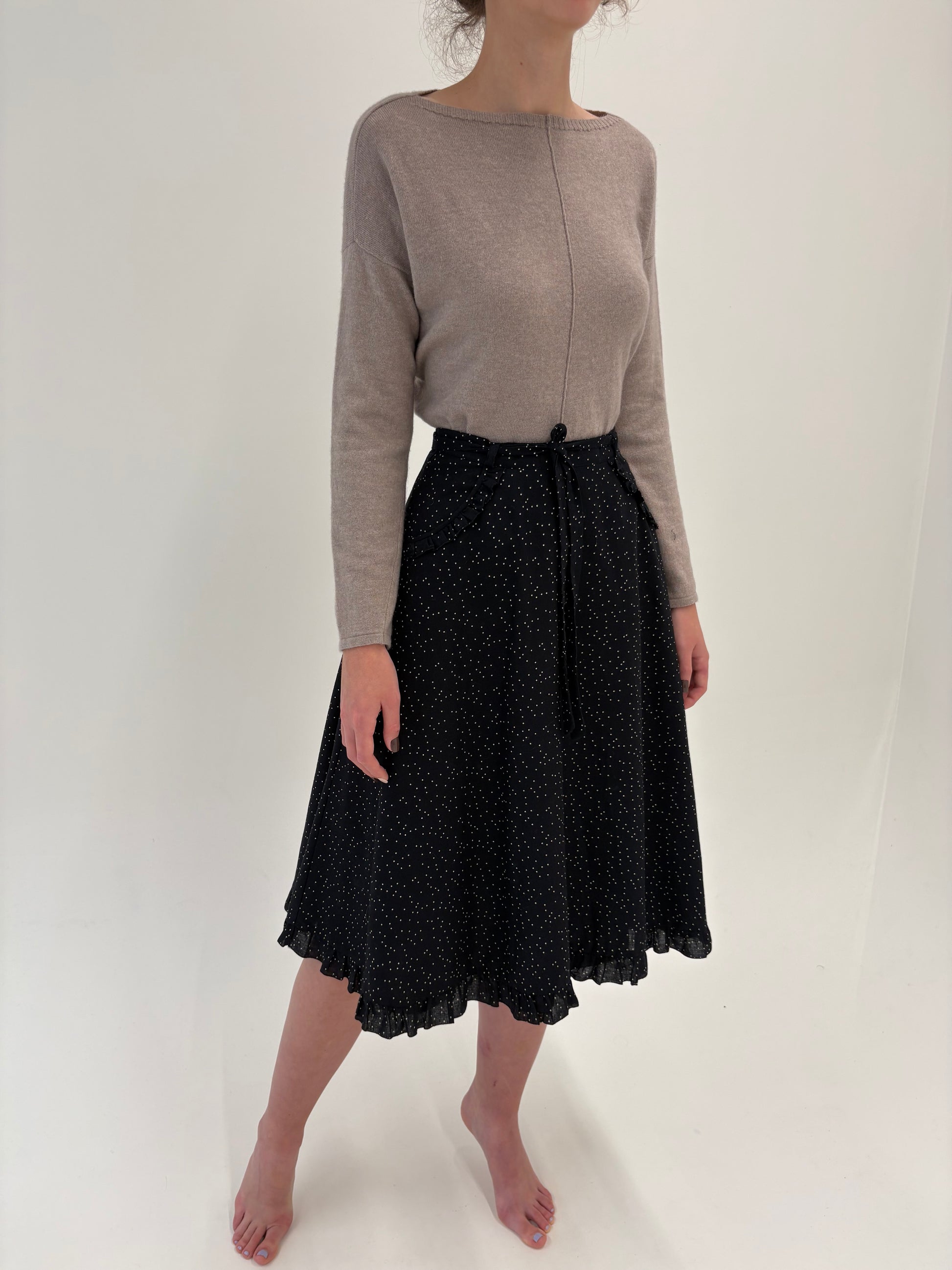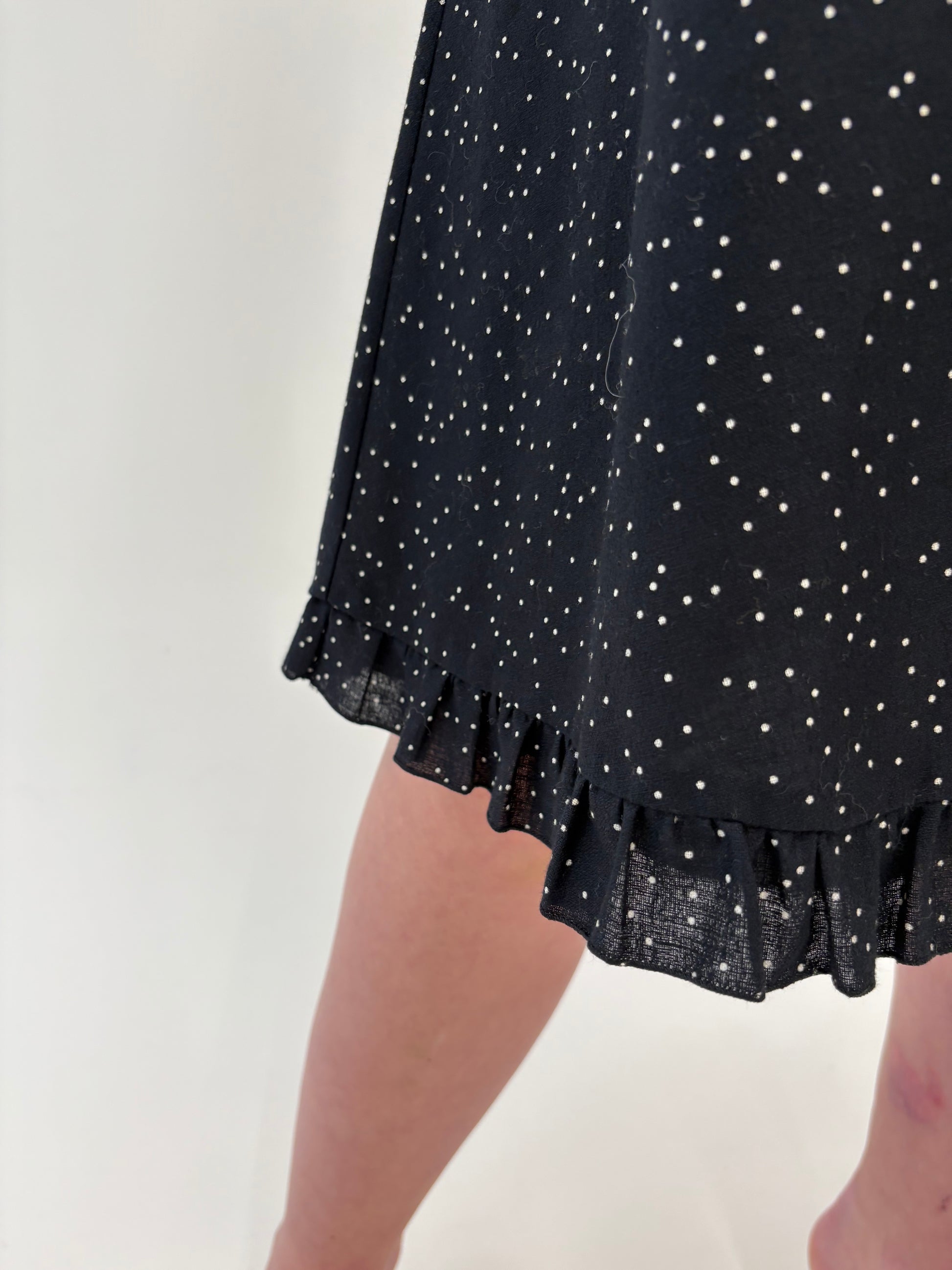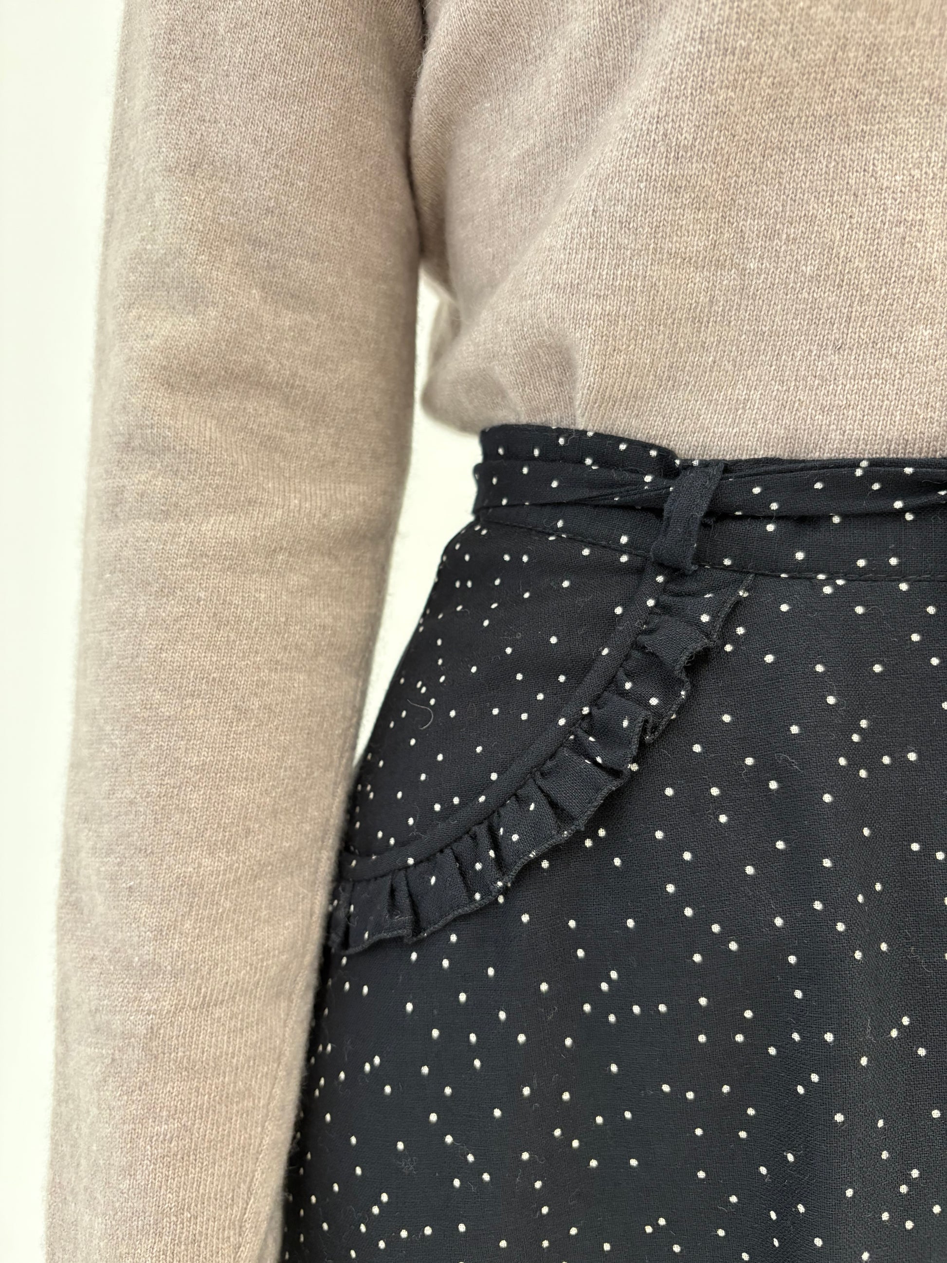 Fustă vintage neagră cu buline albe din stofita de la zi la seară