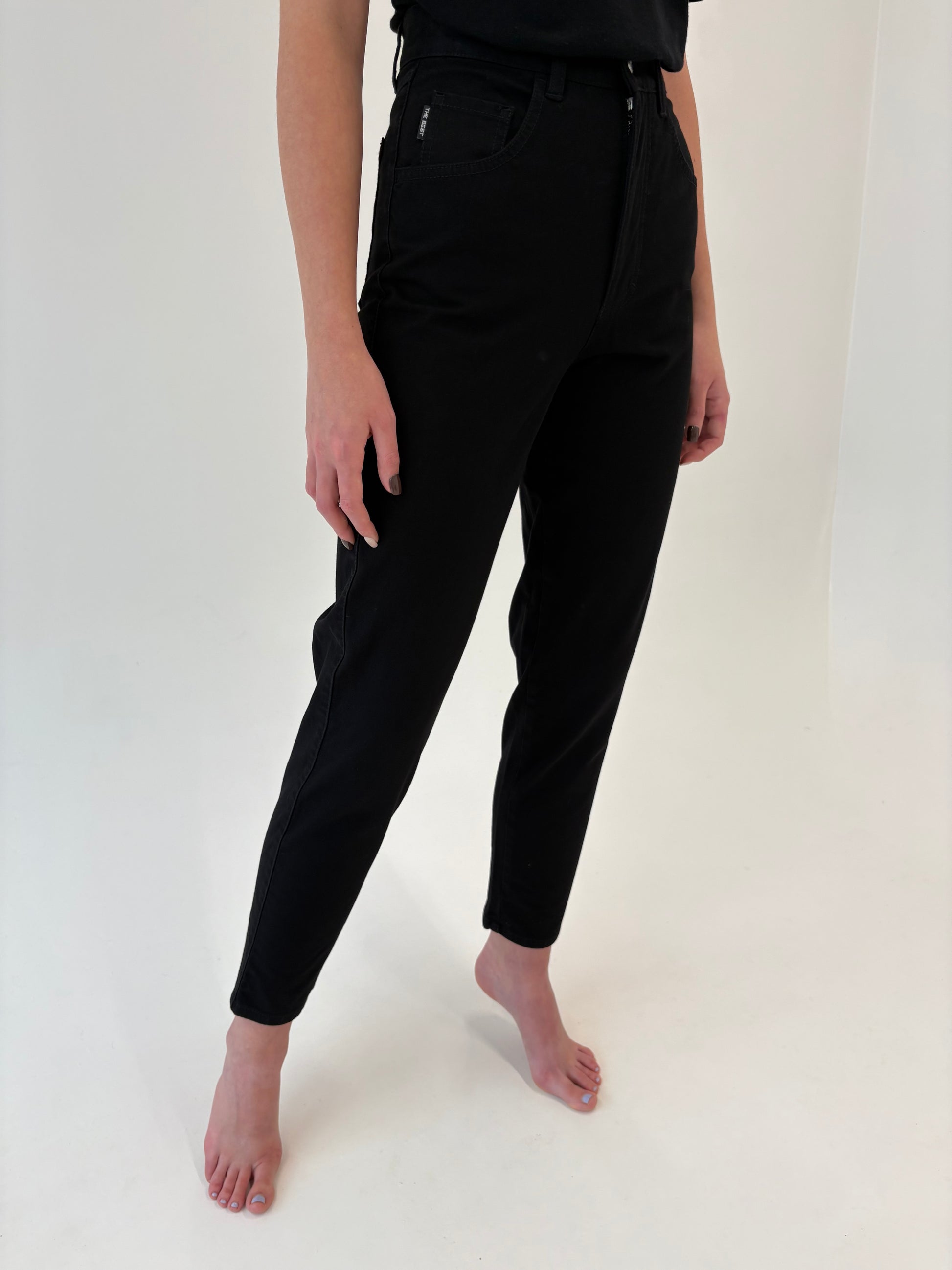 Jeans negri ultra confort modelatori din bumbac și lycra cu talie ultra înaltă
