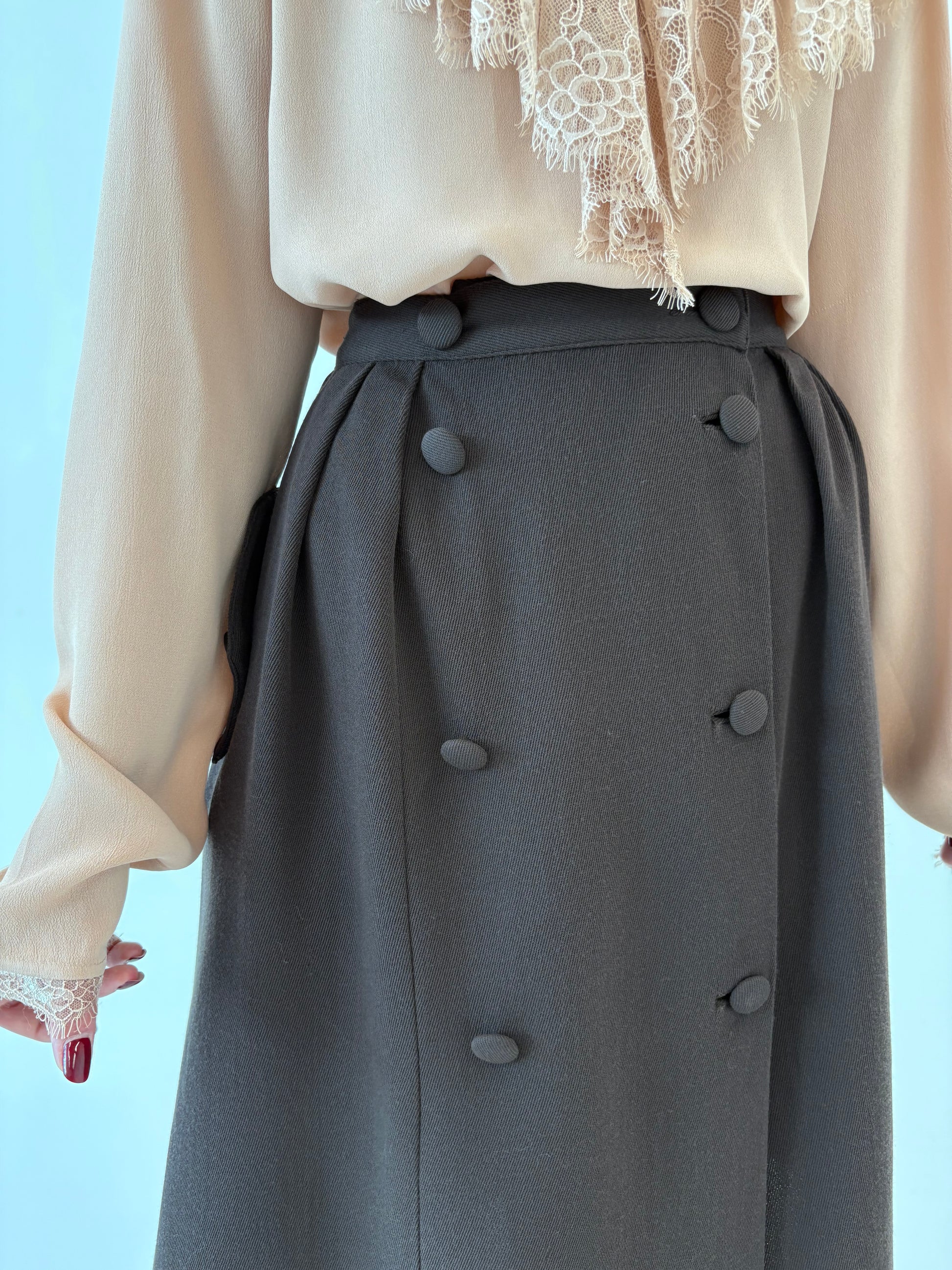 Fustă chocolate brown vintage italian cu buzunare din stofă extrafina de lana