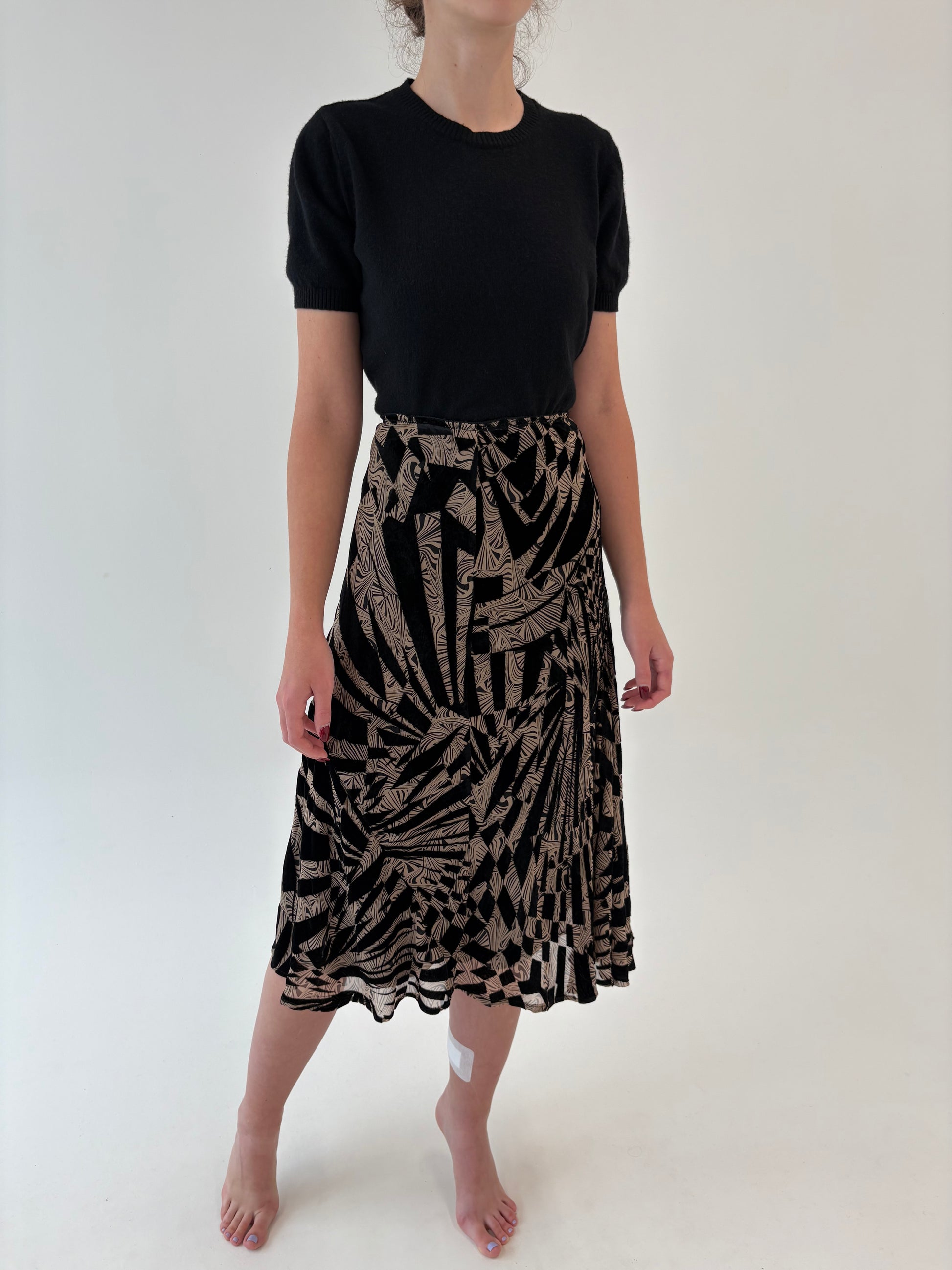 Fustă italiană în bie din mix de mătase naturală cu inserții de catifea
