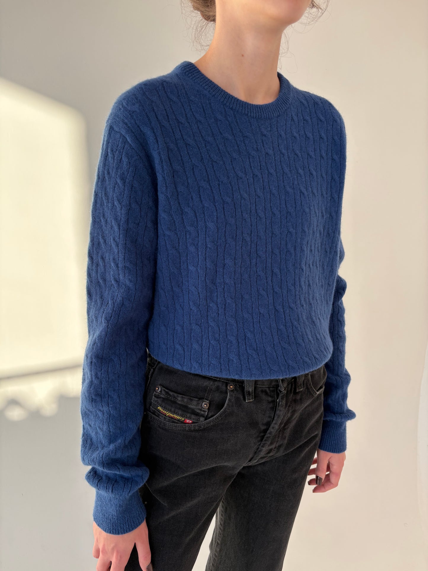 Albastru cerneală superb, lana extrafina de gramaj mare și cașmir