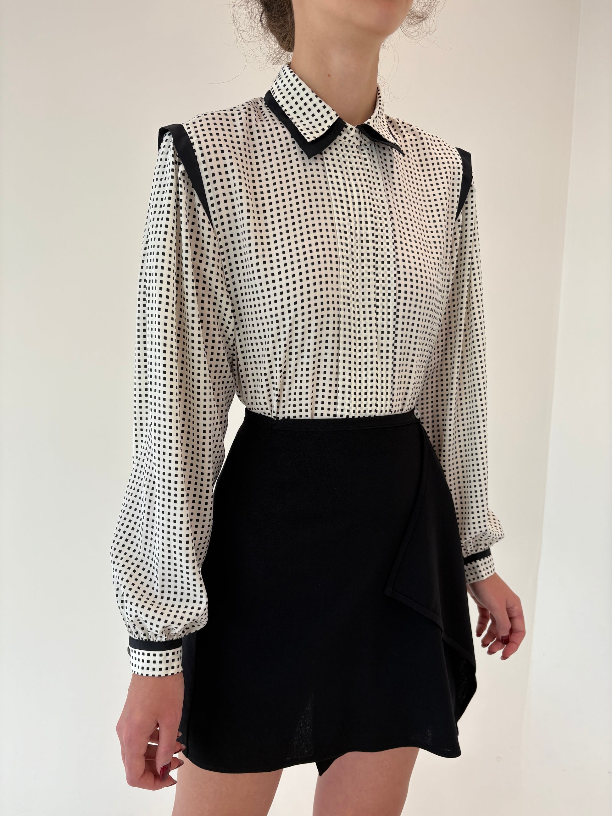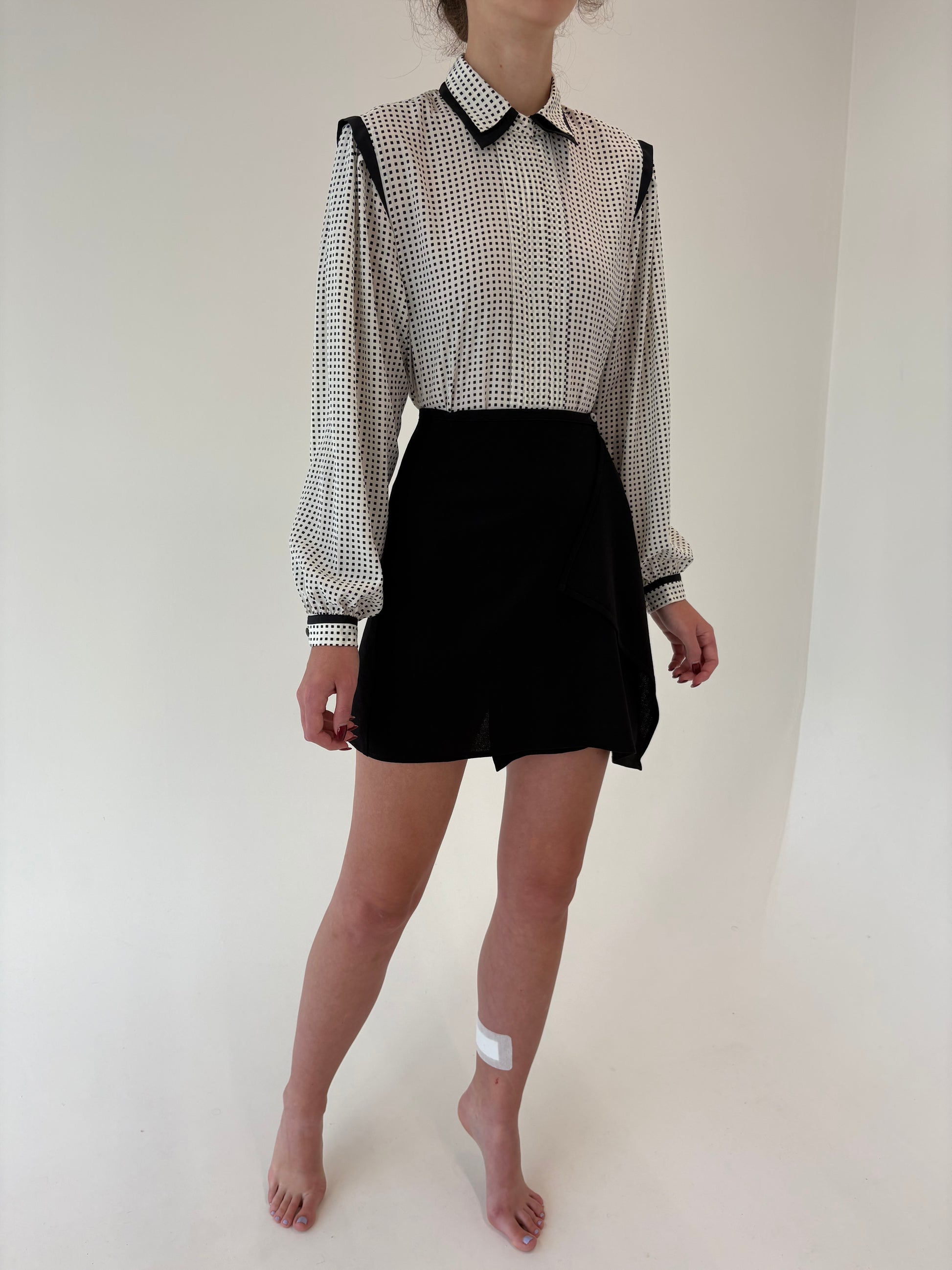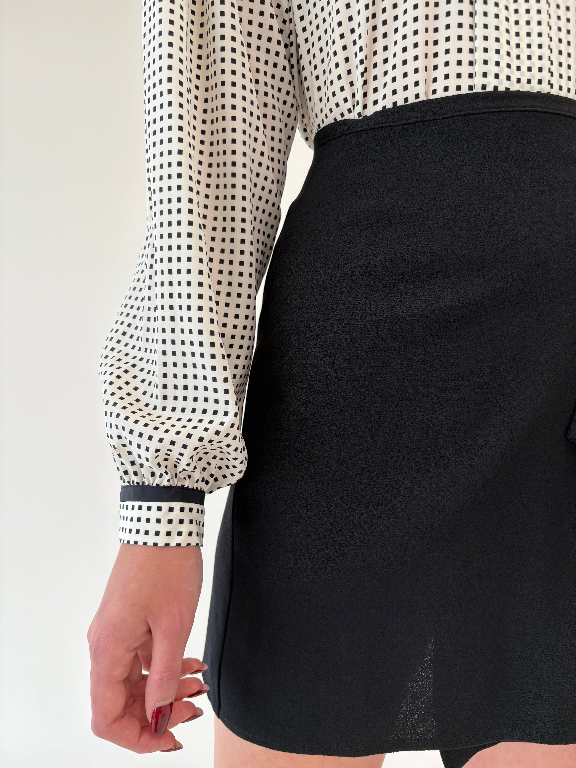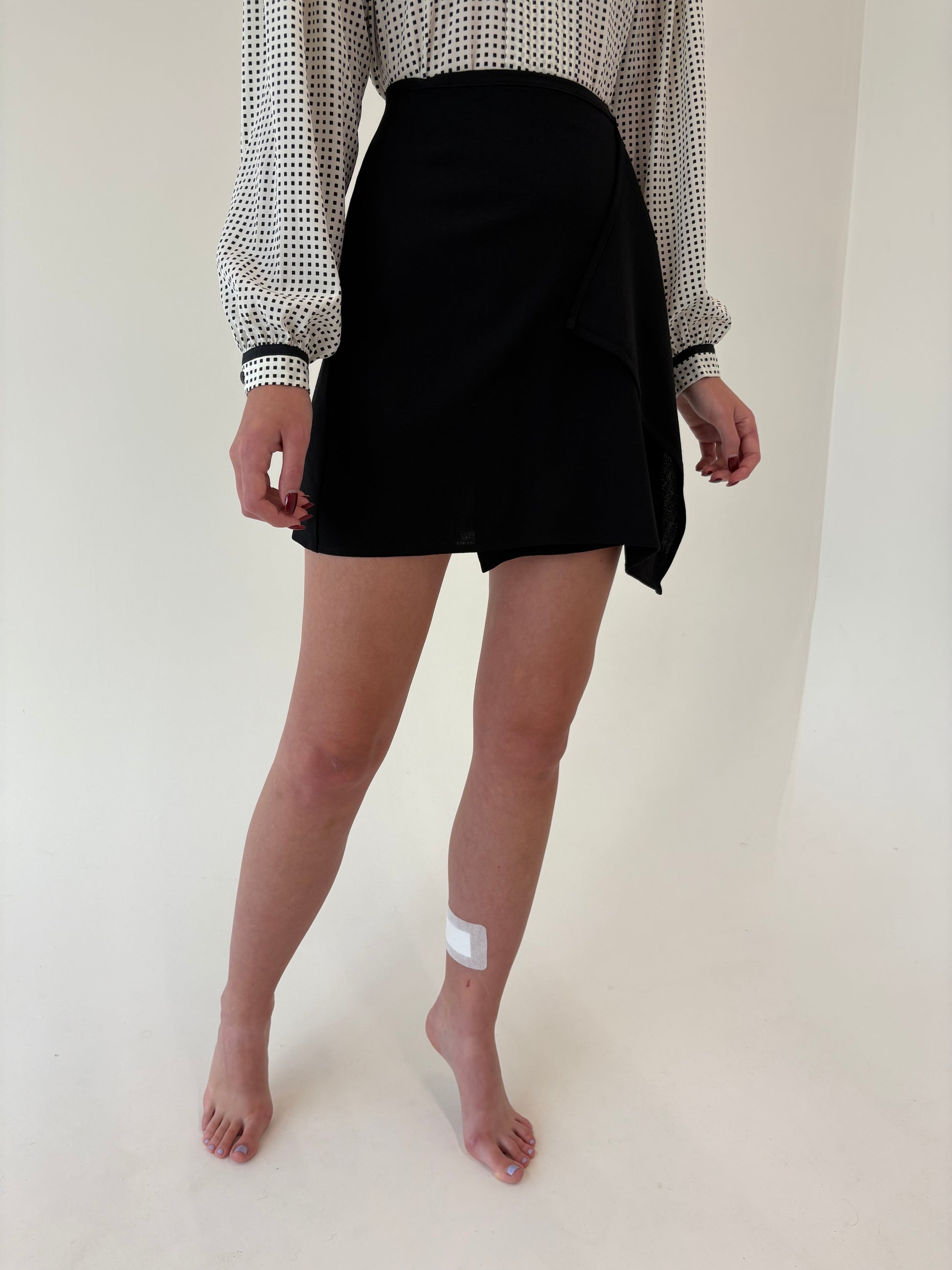 Fustă neagră mini petecuta din lana pura extrafina certificată