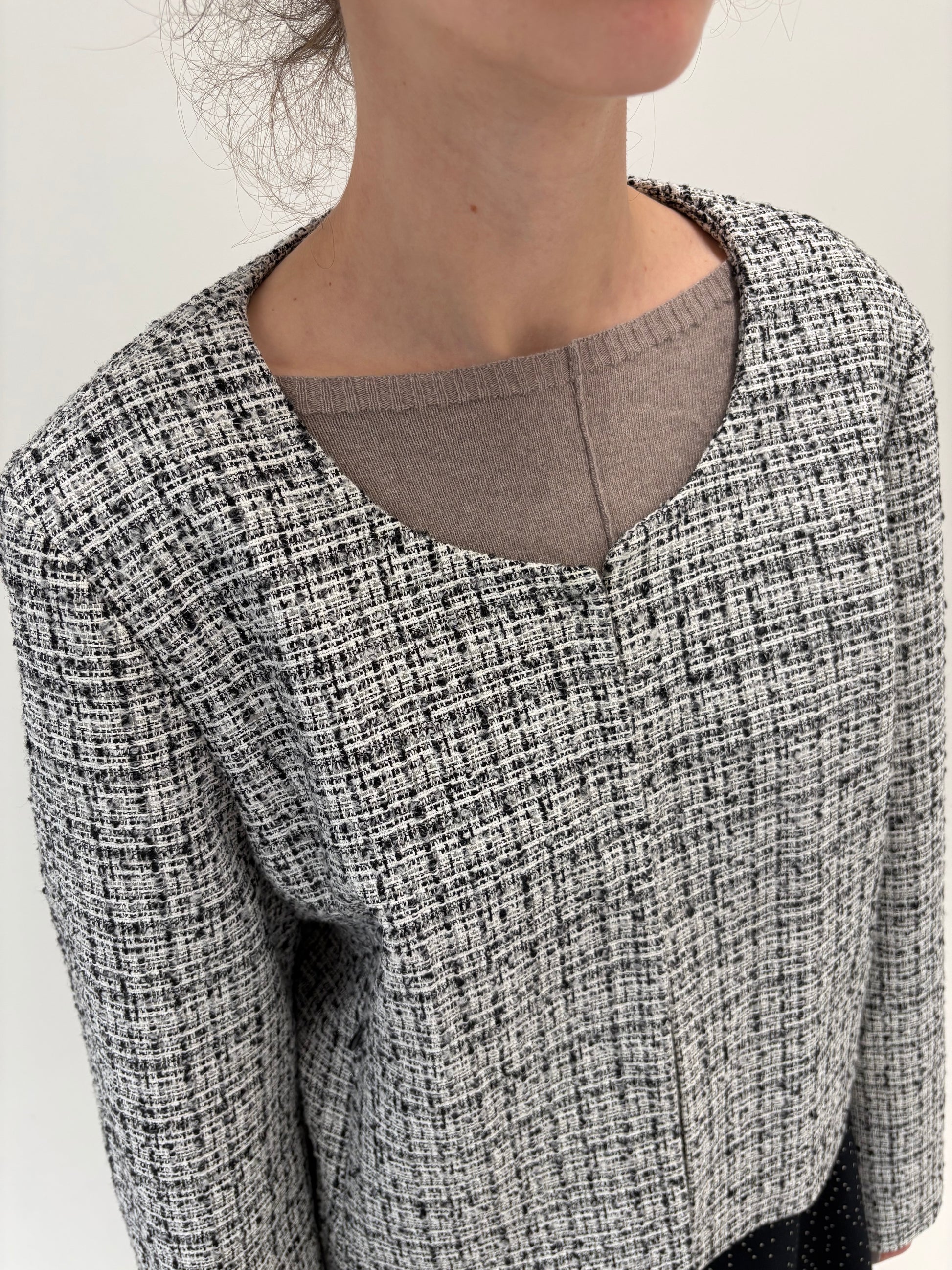 Sacou de brand premium italian în stil Chanel din tweed în croi minimalist